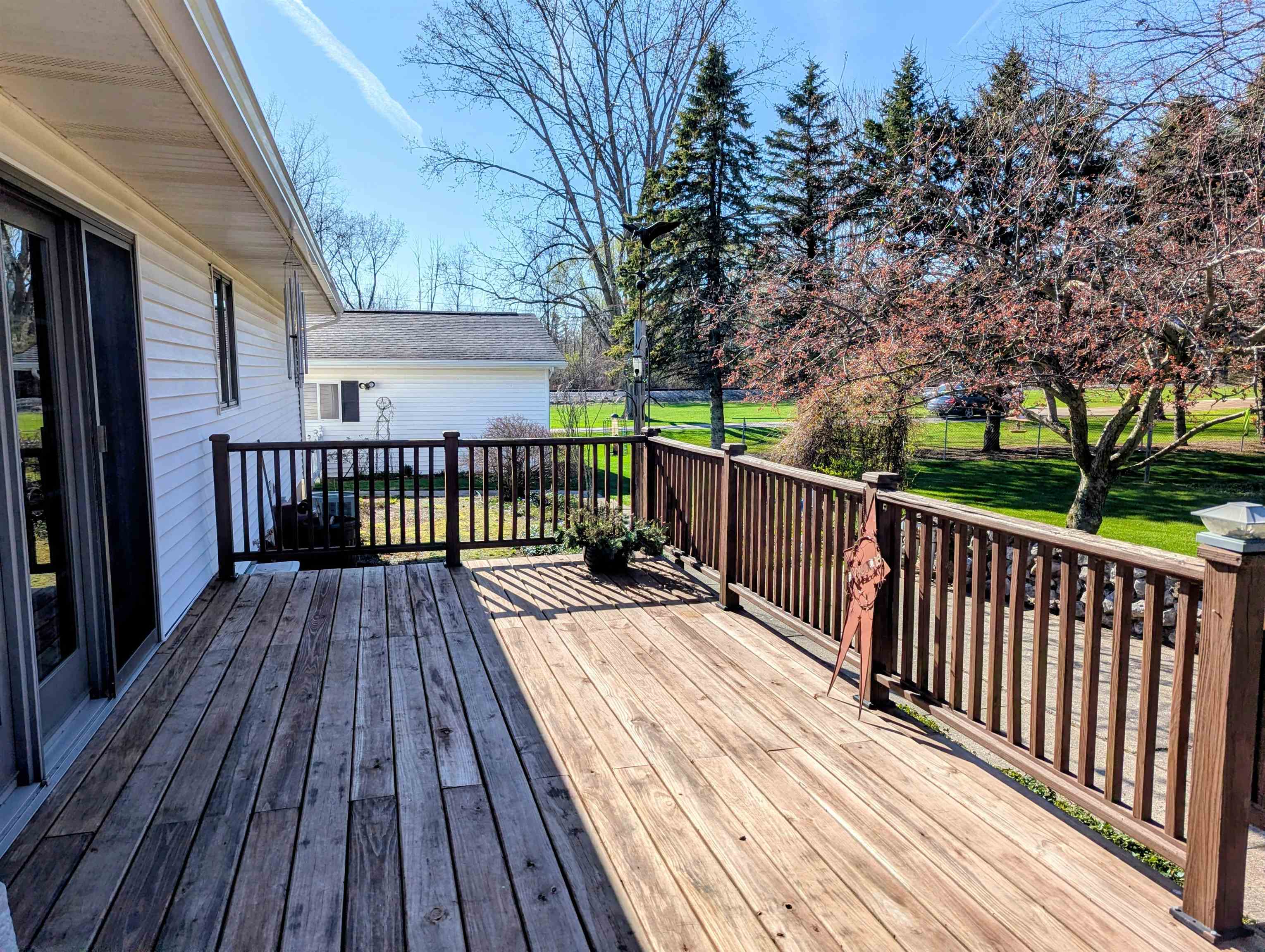 Welcome to 107 North Street. This 3 bedroom, 3 bath home has been lovingly maintained and is move-in ready. It sits on a deep 1.48-acre lot. The spacious floorplan features two comfortable living areas perfect for family time and entertaining, plus a full basement offering great storage or finished potential. The primary bedroom has an attached full bath. There is genuine hardwood flooring through much of the house. The family room has new luxury vinyl plank flooring. Outside, enjoy a fenced backyard and nicely landscaped grounds with abundant perennials that provide season-long color and beauty. Relax on the expansive decks on both the front and back of the house. A detached 1-car garage and a 12 x 20 storage building (with power) add practical exterior storage for tools, toys, projects and hobbies. There is also a Generac generator in event of power outages. Conveniently located with easy access to M-13 and local amenities. A beautiful, well-cared-for home with charm and character that’s ready to welcome its next owners! Call for your showing today.