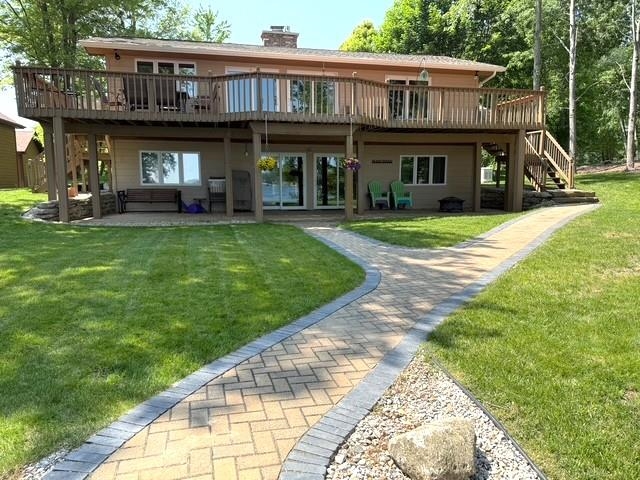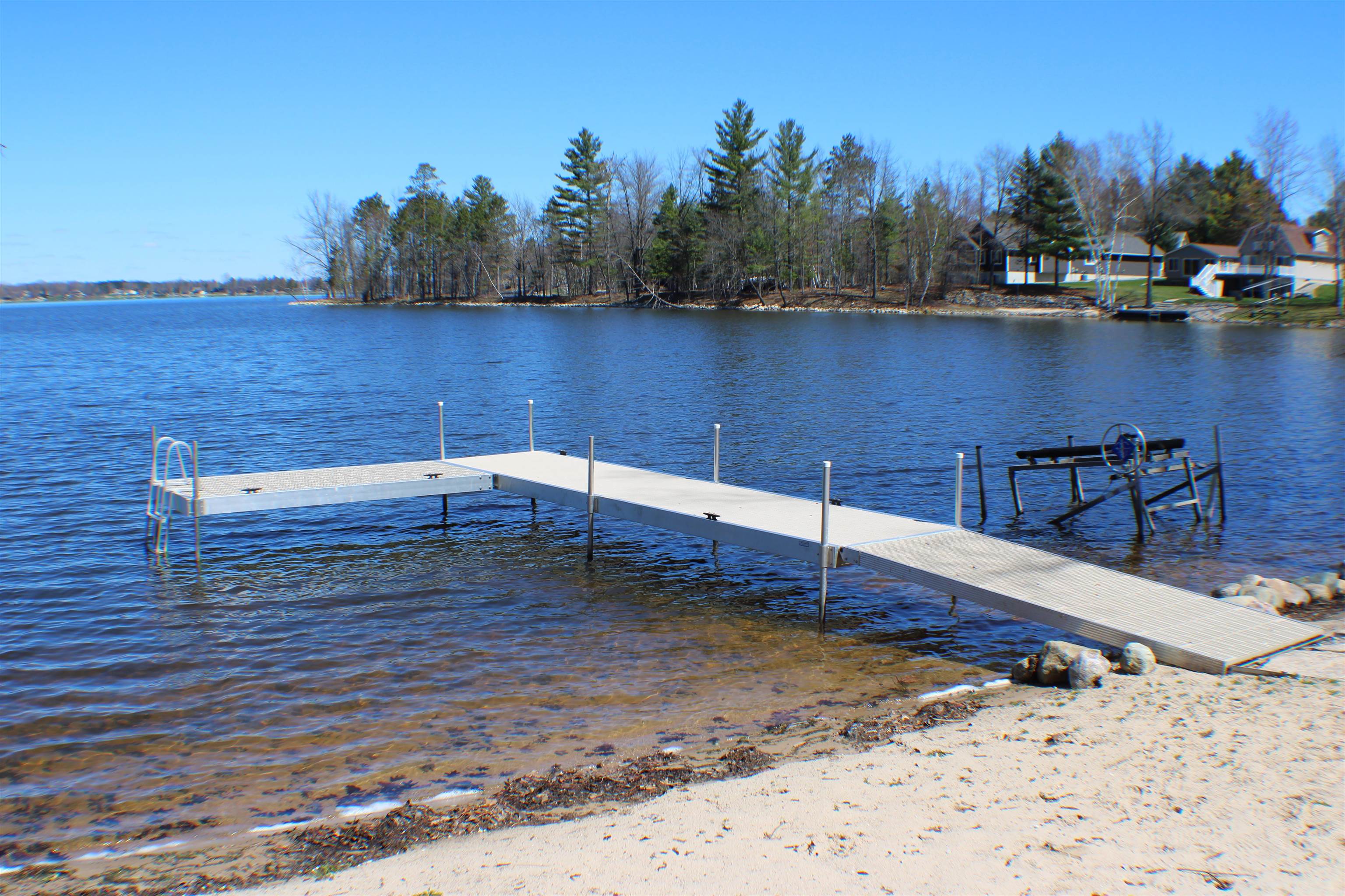 Have you been searching for that Special Waterfront home, Look No Further Than Here!! Step inside this Incredible near 2700sqft 4bdrm/3bth home & Experience Nothing short of Lakefront Excellence!! Located in Beautiful Sugar Springs “Northern Michigan’s Best Kept Secret” This entire property has been meticulously gone through from literally Top to Bottom & has been maintained with a Pride of Ownership that Must Be Seen to Truly be Appreciated. New Addition & list of Upgrades to it, too long to list but we will expand on the Highlights. Walk through the front door into the large welcoming foyer & right away you are greeted with an Outstanding view of All Sports Lake Lancer. Step beyond the foyer right into the Completely New Custom Kitchen w/new cupboards, large island all topped w/Beautiful Quartz countertop, tile backsplash, recessed lighting, hanging fixtures over Island & all topped off w/new Stainless-Steel Appliances. You’ll appreciate the open floor plan main level offers w/panoramic views everywhere you look, spacious Living room w/floor to ceiling whitewashed brick NG/ Fireplace for those chilly days & a convenient 1/2bath. New main level Primary Suite w/Incredible Tile Shower w/glass doors & large built-in bench, ceramic floors, new vanity & lighting, & topped off w/walk-in closet. Enjoy private door-wall leading out through 1 of 5 New Pella insulated door-walls installed in 2022 onto the Expansive 48×14 deck overlooking Lake & professionally maintained yard w/newer landscaping leading down to new retaining wall by way of large stone stairs to soft sandy beach area spanning across whole waterfront, w/new L-Shaped roll-in Aluminum dock, make your way back to the house via new brick paver walkway & patio area leading to sizeable concrete patio under main deck. Step into lower-level area, through those new Pella Door-walls into a wonderful family room complete w/2nd gas fireplace, 3 additional bedrooms on this level w/2 offering water views. 4th bedroom sits beyond a wonderful bonus room set up for family activities, possible craft room or office, another Completely redone bath w/tiled walk-in shower & vanity. Large laundry/utility room holds New Washer/Dryer, utility sink for convenience, (2) New Furnaces, water softener (leased) New ng hot water heater, even a special storage area under front porch. New Roof on both Home & Expansive 3 Car Garage. New Central Air. I cannot Express Enough the Lengthy List of Upgrades to this Remarkable home. You have a new 24k Generac Generator, Cedar Siding that will last a lifetime if maintained, Generous landscaping throughout the property just add to this Picture-Perfect Opportunity!! Sugar Springs Offers 2 All Sports Lakes totaling 1000acres of Water Fun & Great Fishing with more than a dozen Beach Club areas. 18hole Championship Golf Course, Indoor Pool/Exercise Facility & The Hearth Restaurant. 3500ft Natural Grass Airstrip. This Property Will Not Last Long so Call Us Soon for Your Closer Look Today!