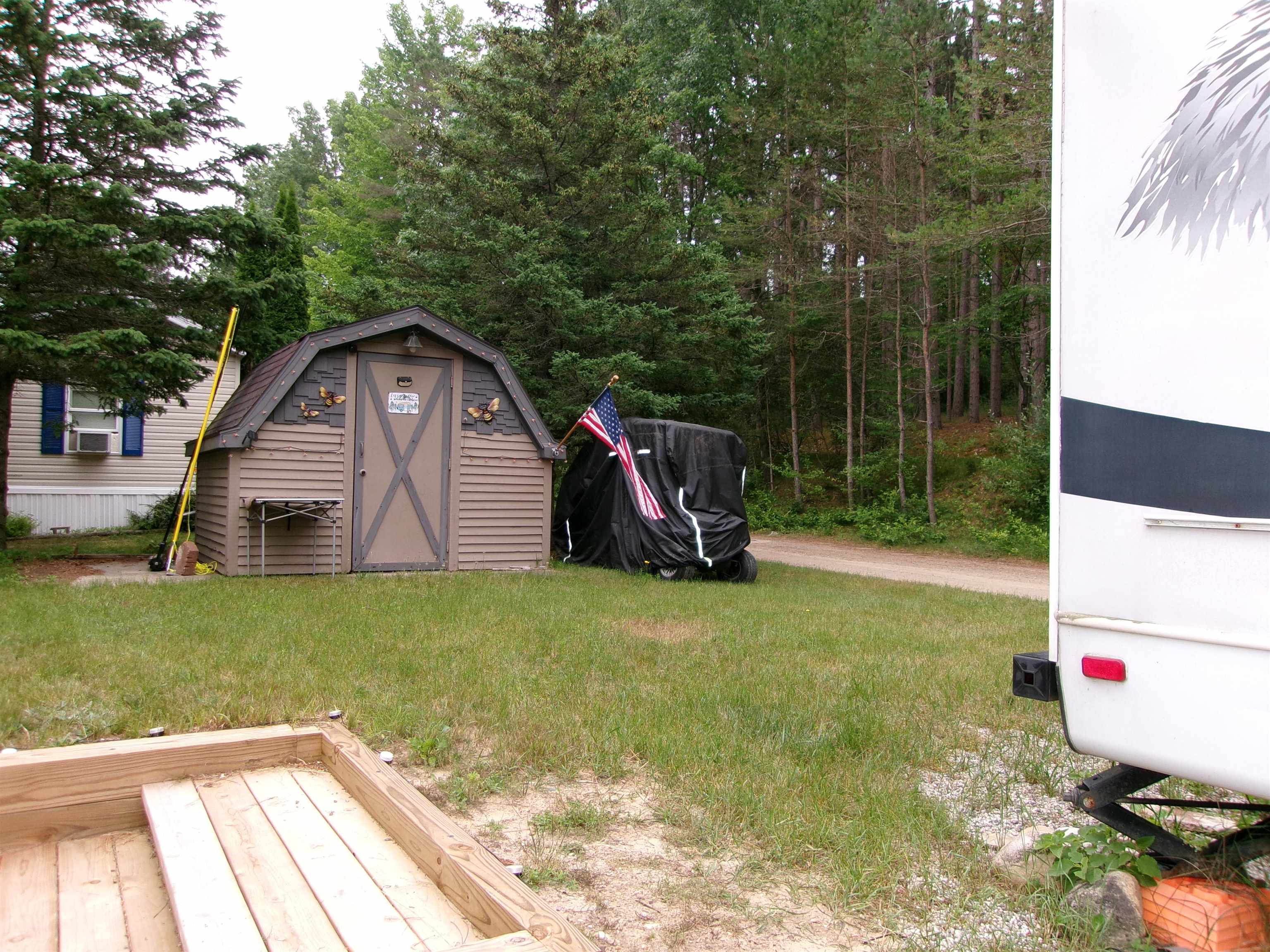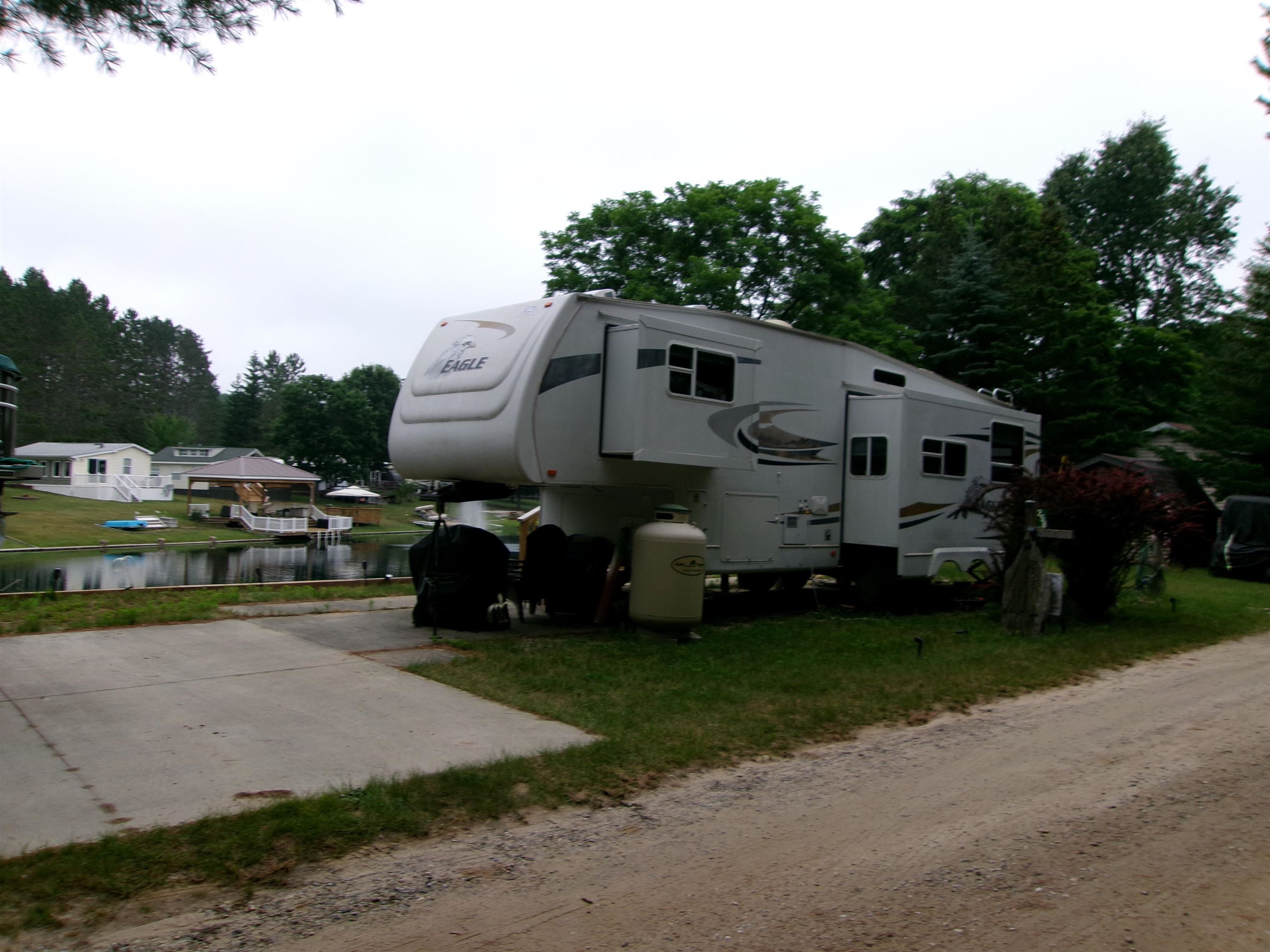 Price Reduced!! This is the very best spot on Loon Landing at Sandy Shores Resort! 100 FT on the water with new dock, seawall retaining wall and a small deck. Huge concrete parking pad and a very nicely refurbished 2011 Eagle RV. Very clean! Large storage shed and landscaped fire pit and a picnic table area. This Condo Association is very well maintained and offers many hosted events and a great big beach on Grass Lake! Mini Golf, Basketball and a really great playground! Located just off M-115 not far from Clare.Clare County has Trails,20 Lakes in 20 Minutes, Golfing, Skiing and you may ride your quads and side X side on the shoulder of County roads with proper permit Come relax and enjoy all the good times at this seasonal resort!
