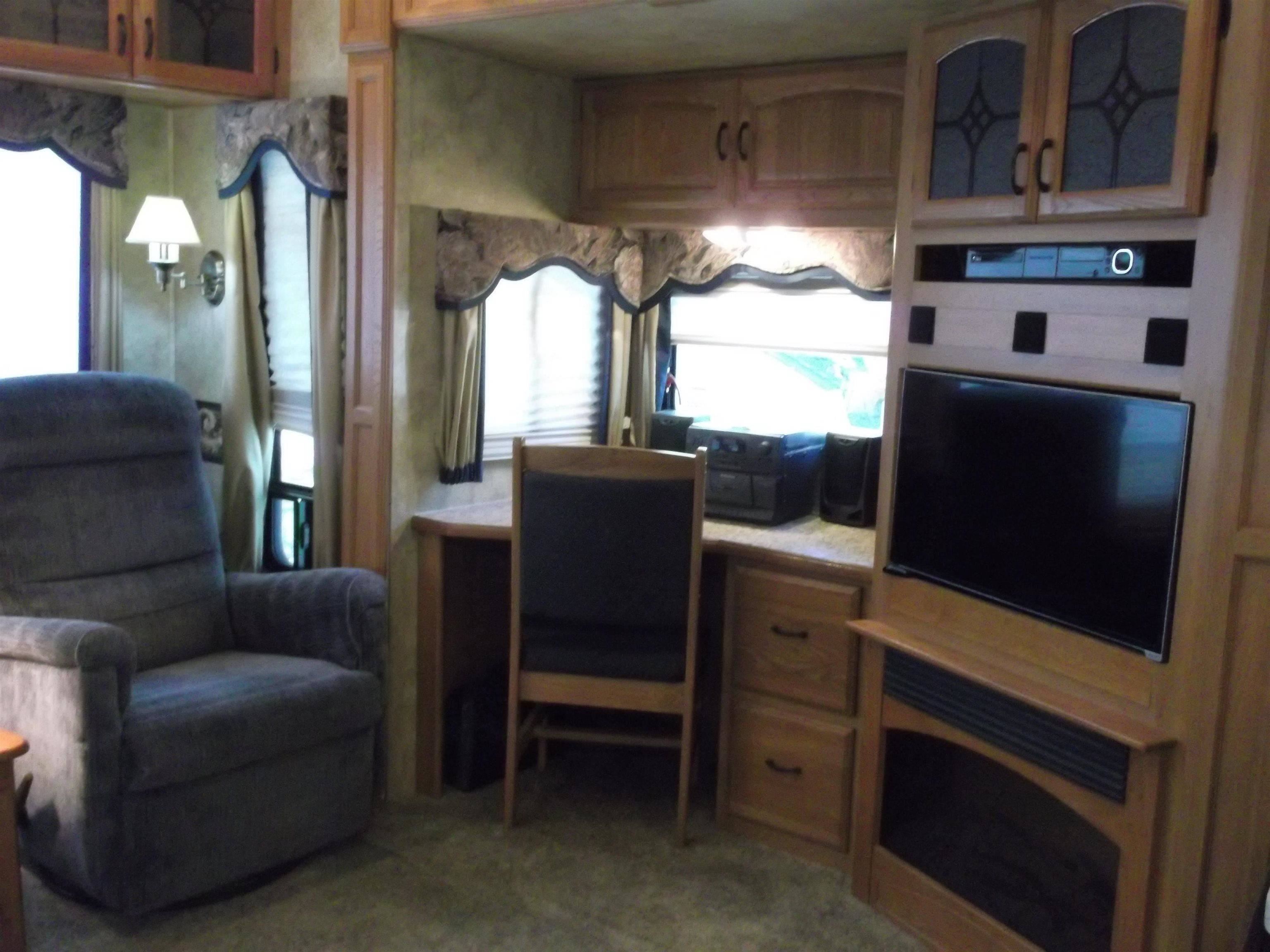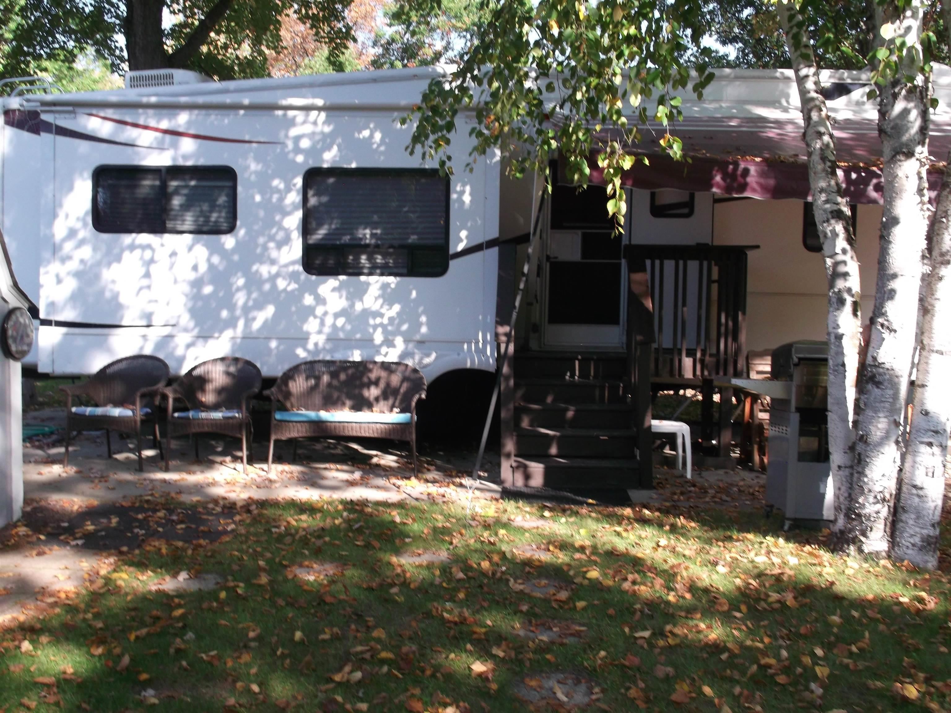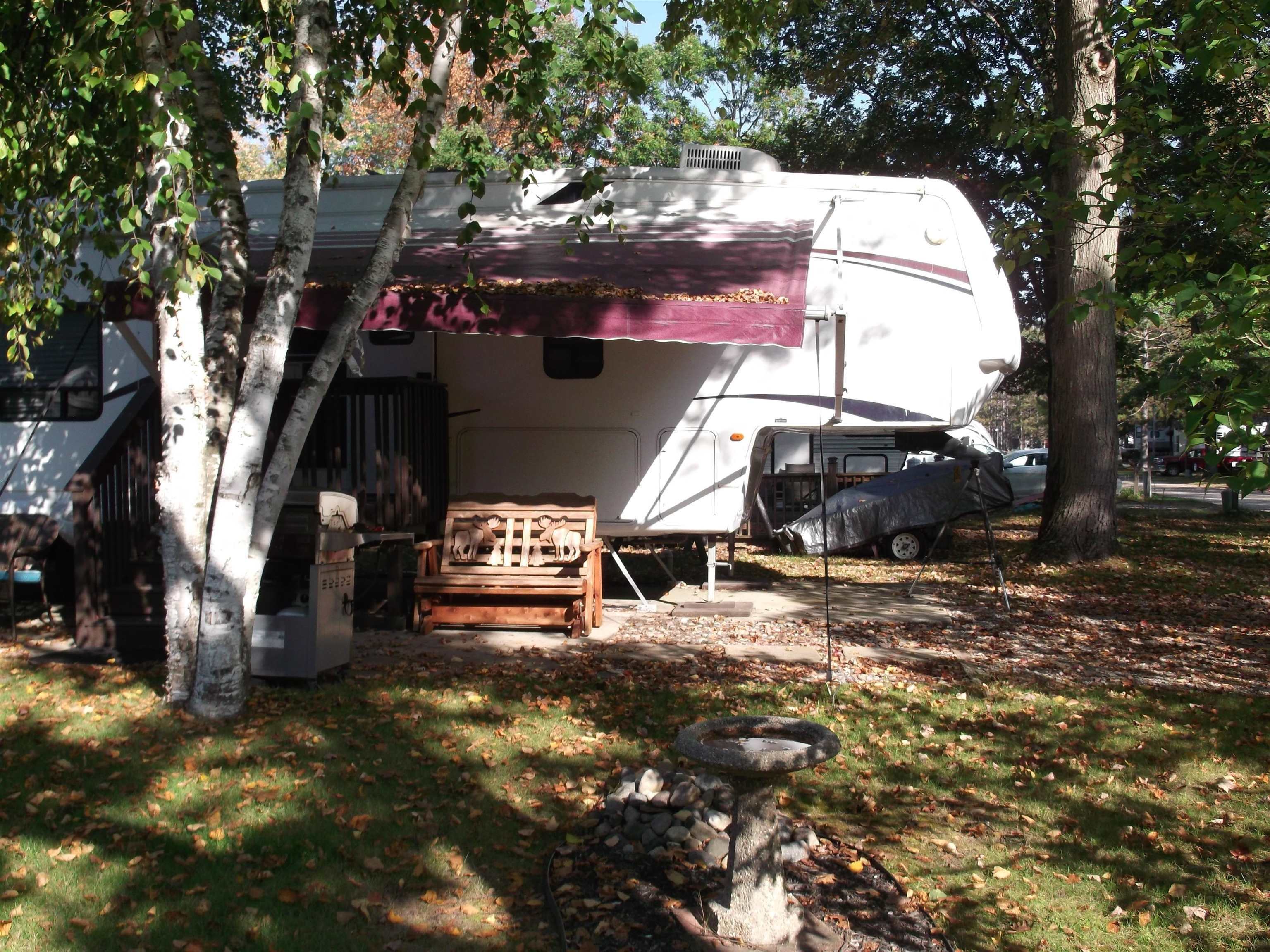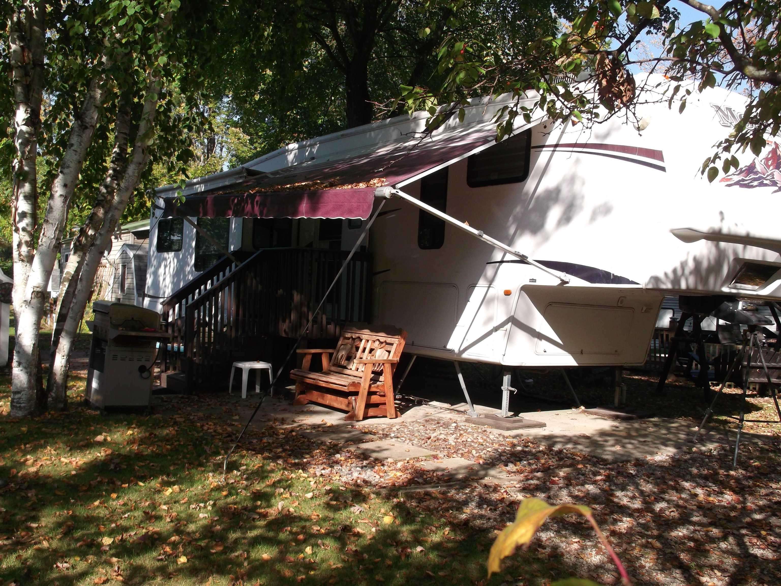 Beautiful maintained 5th wheel with 3 slide outs for more spacious living. Has air conditioner, electric fireplace, TV in living room and bedroom, also king size bed in bedroom. Tons of storage through out inside of camper and outside with nice storage shed. Has beautiful beach for swimming or sunning yourself, with great play area for kids to enjoy, putter golf, tennis courts, basketball, clubhouse and pavillion. Many all sports lakes in the area, trails to bike, hike, 4-wheeling, and quads, many things to enjoy or just R&R by the camp fire, plus wicker chairs and 2 others. Re-coated roof, generator and fully furnished ready for your enjoyment