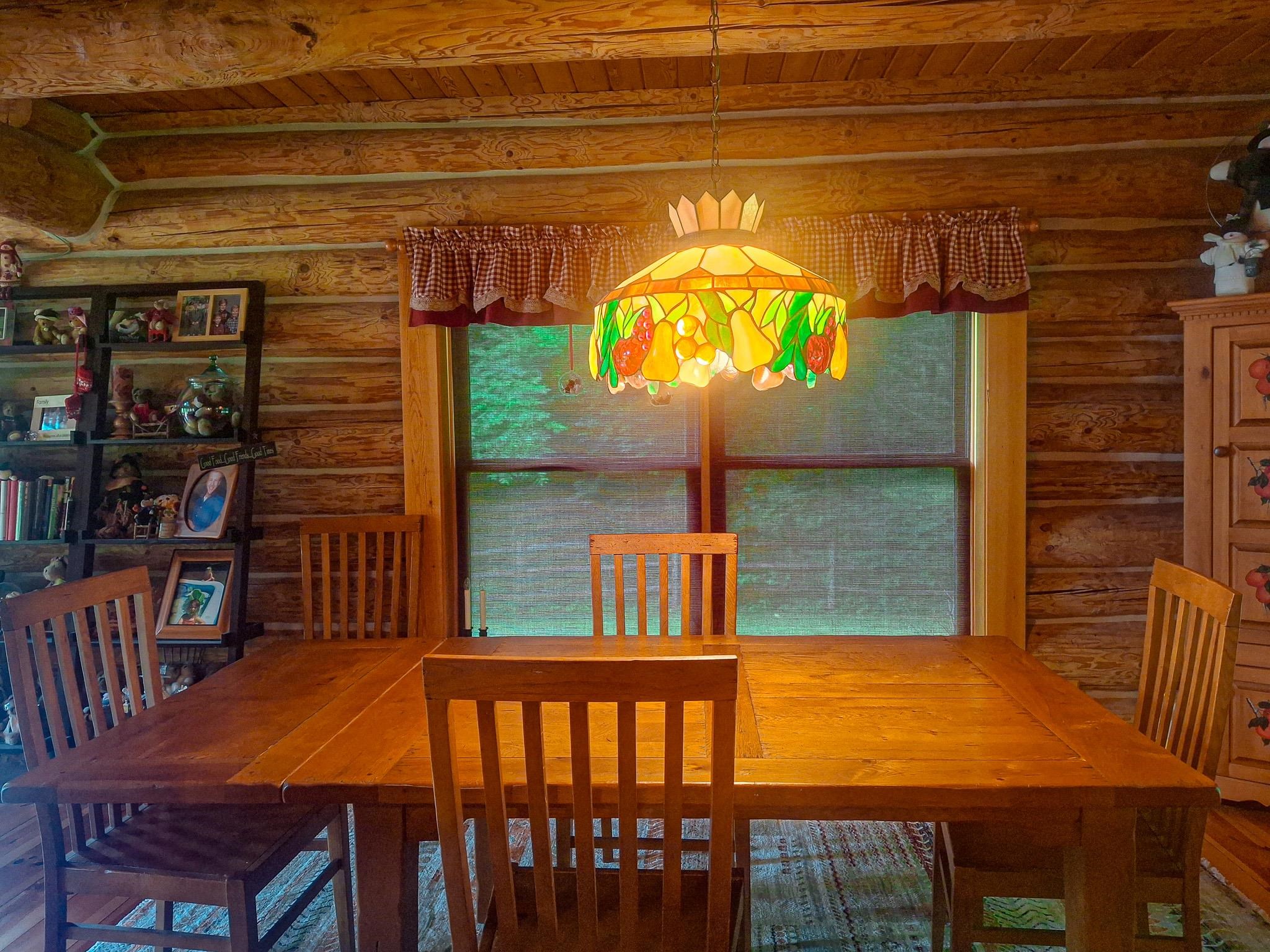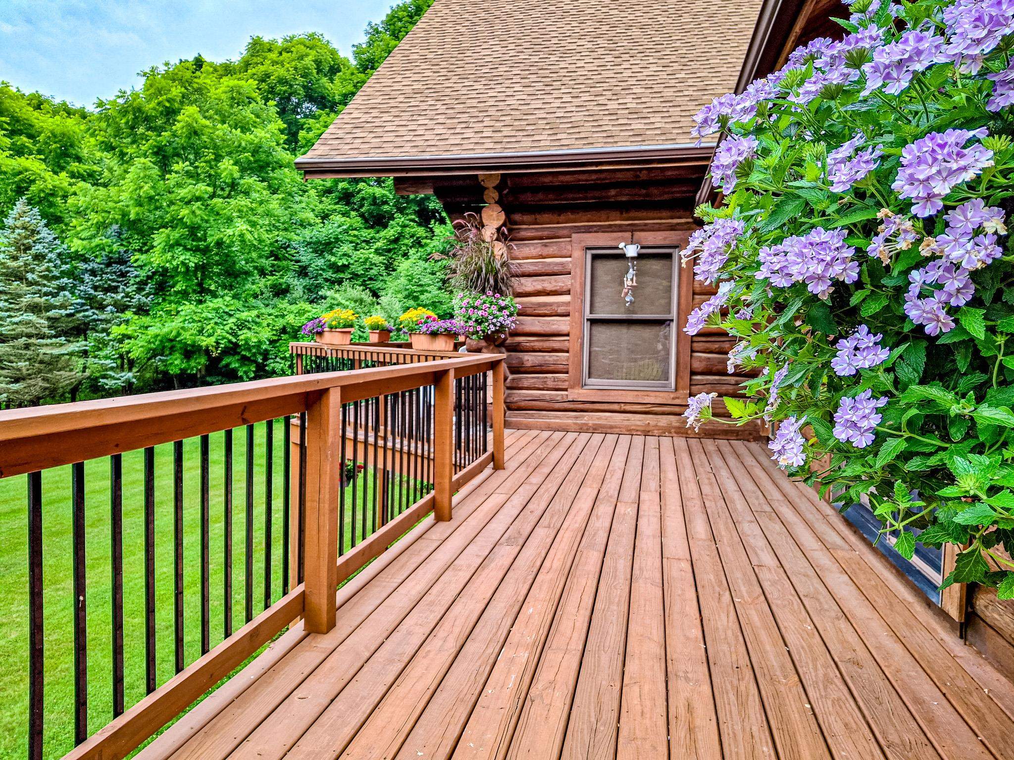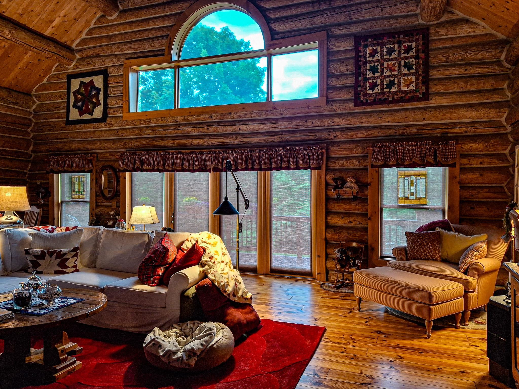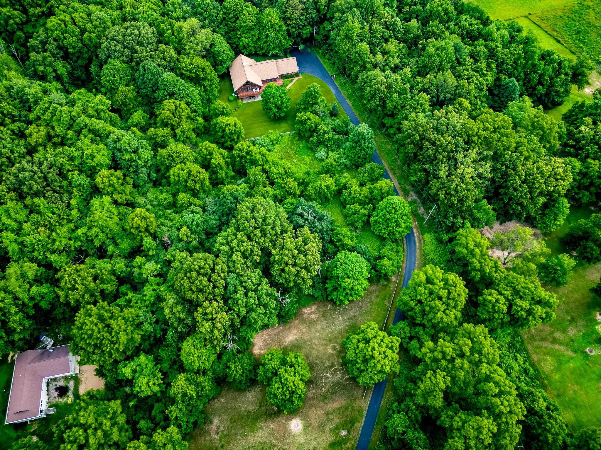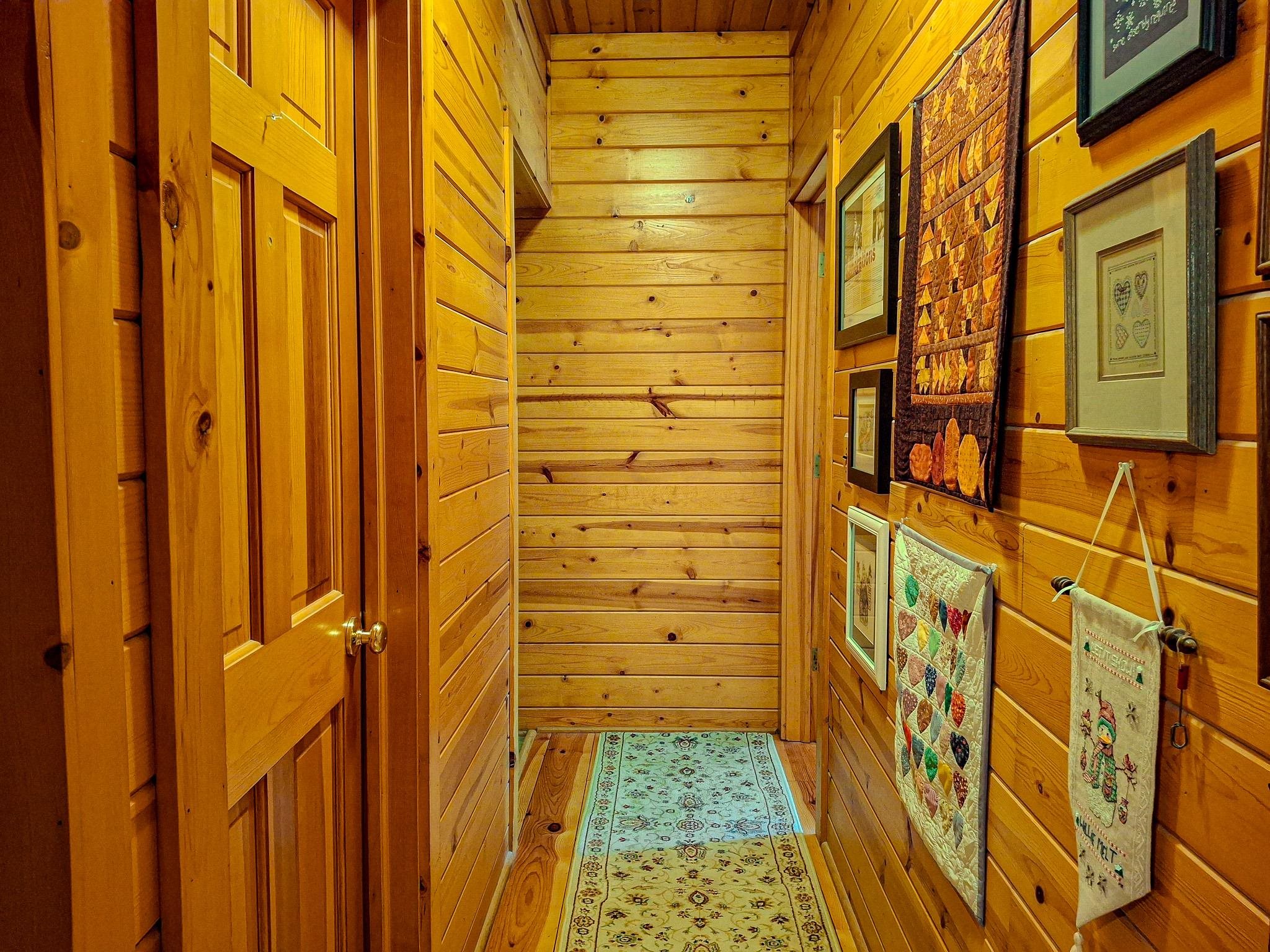 Step into a life less ordinary with this breathtaking custom-built solid log home—where rustic elegance meets serene seclusion, just a short stroll from Timber Ridge Ski Resort and only minutes from the expressway. Tucked at the end of a winding 750-foot paved drive and surrounded by whispering woods, this enchanting retreat offers over 3,500 square feet of warmth, wonder, and timeless charm. The heart of the home beats in the stunning main floor, where imported wide plank heart pine flooring from France glows beneath vaulted ceilings. An executive kitchen is made for gathering, featuring rich granite counters, a 10-foot island, double ovens, gas stove, and stainless steel appliances—all opening to a great room anchored by a massive stone fireplace. Wake each morning in the peaceful main floor primary suite, complete with a full bath, double sinks, and French doors that open to the deck facing the sun-kissed southern landscape. Overlooking it all is a charming 401-square-foot loft, offering views of the northern half of the property—an ideal space for reading, relaxing, or letting your imagination roam. Two additional bedrooms rest quietly on the walk-out lower level, where each has its own sliding doors to the patio and the peaceful outdoors. Downstairs, you’ll also find a second living space with a gas fireplace, a wet bar perfect for entertaining, and a generously sized utility room with abundant storage. Lovingly maintained and thoughtfully upgraded, all major systems have been replaced within the past 13 years, making this home as worry-free as it is welcoming. Comfort is year-round with central heating and air, main floor laundry, underground sprinklers, and thoughtful touches like a hot tub-ready patio and a water spigot for easy outdoor care. Outside, the magic continues with a two-story log barn equipped with 200-amp electric and a frost-free water system—perfect for hobbies, storage, or dreaming big. Here, you won’t see a neighbor—just deer, birdsong, and endless sky. Whether you’re entertaining under the stars, sipping coffee on the porch, or seeking solace in the trees, this is more than a home—it’s a story waiting to be lived.
