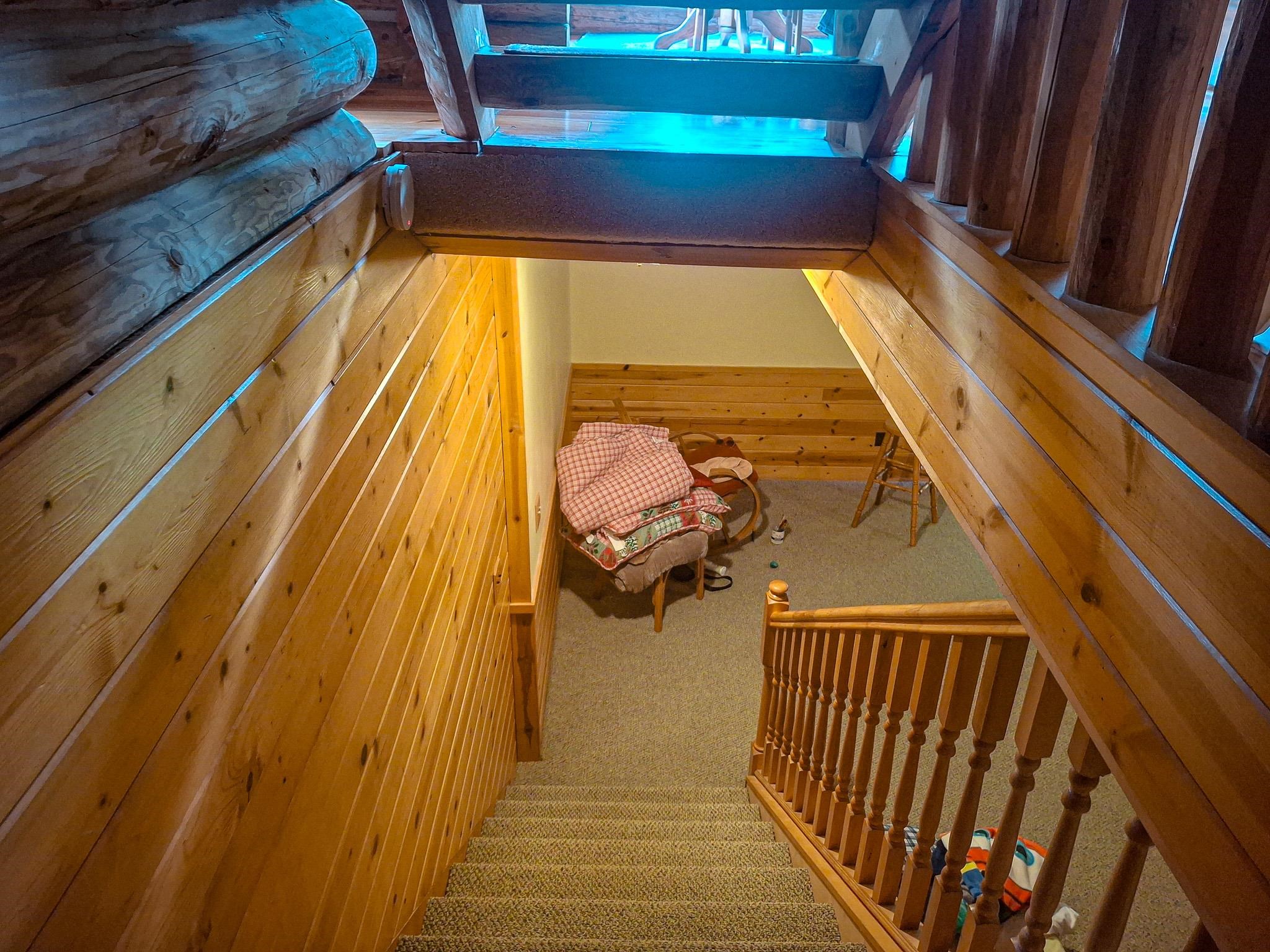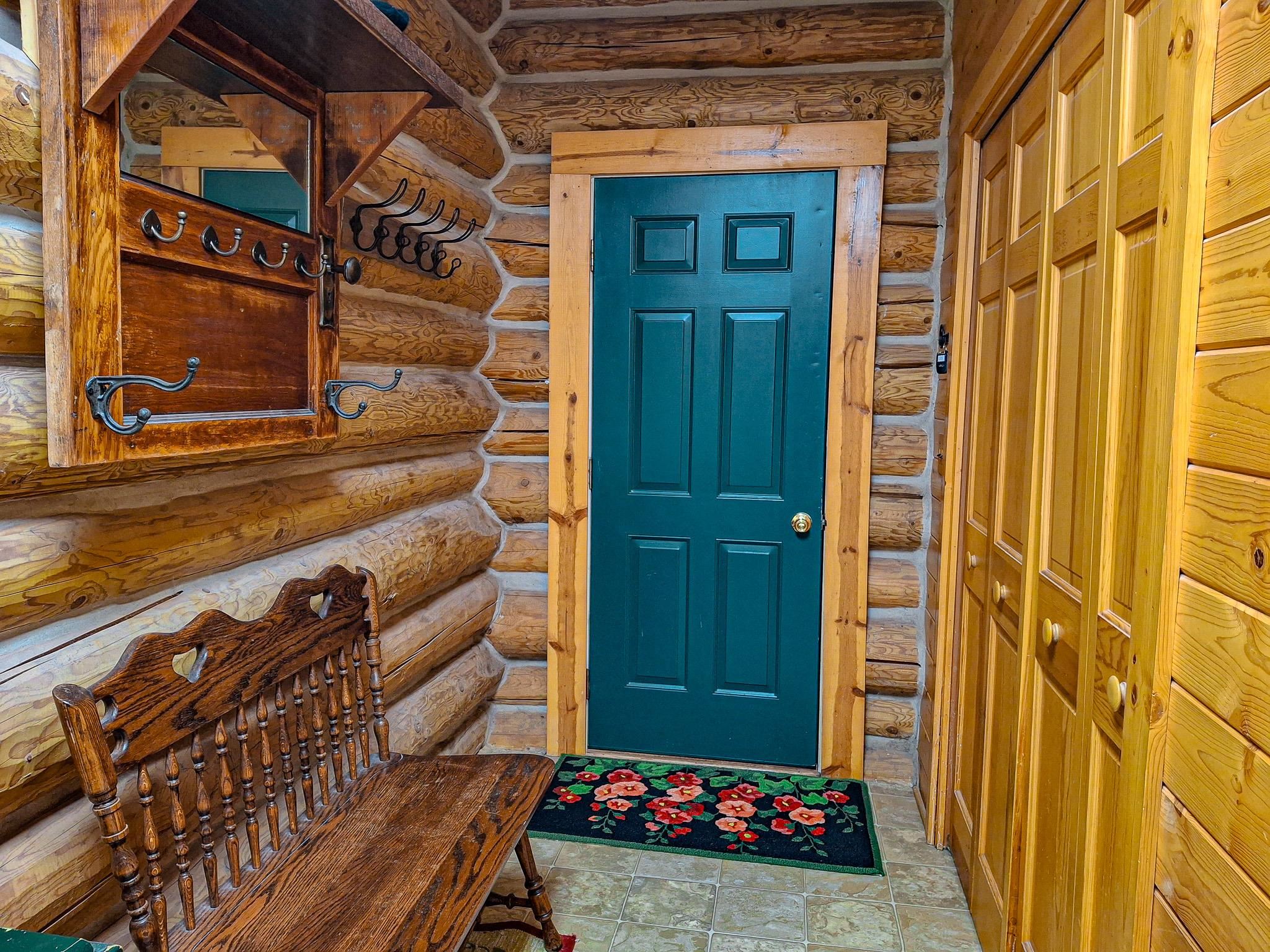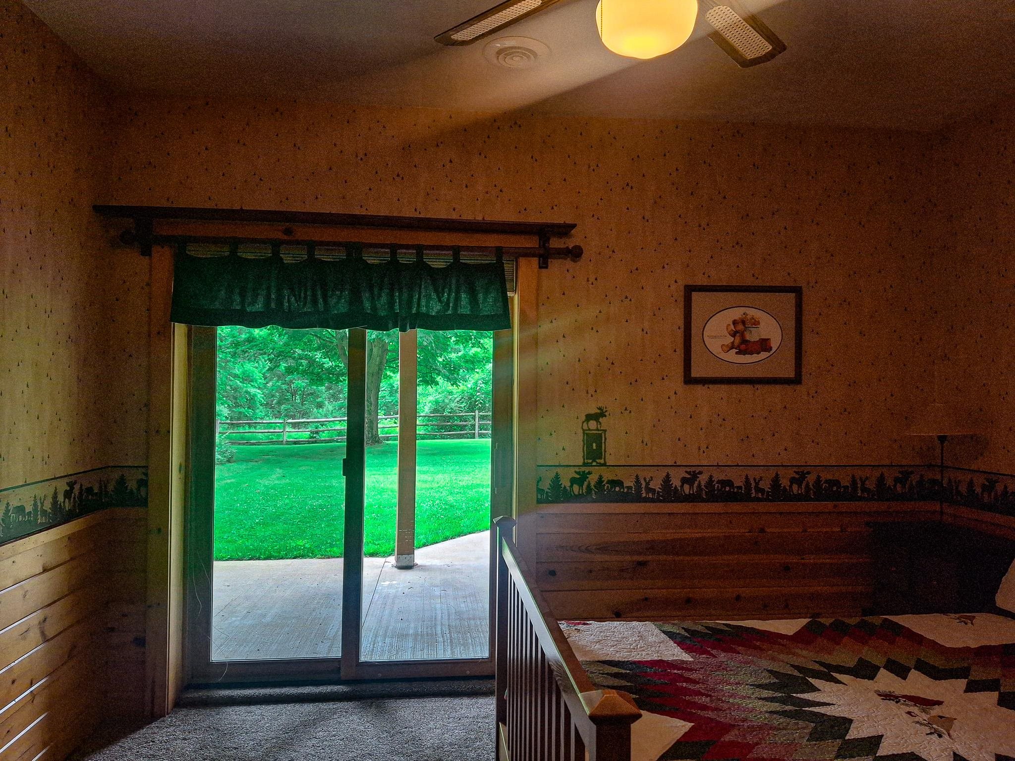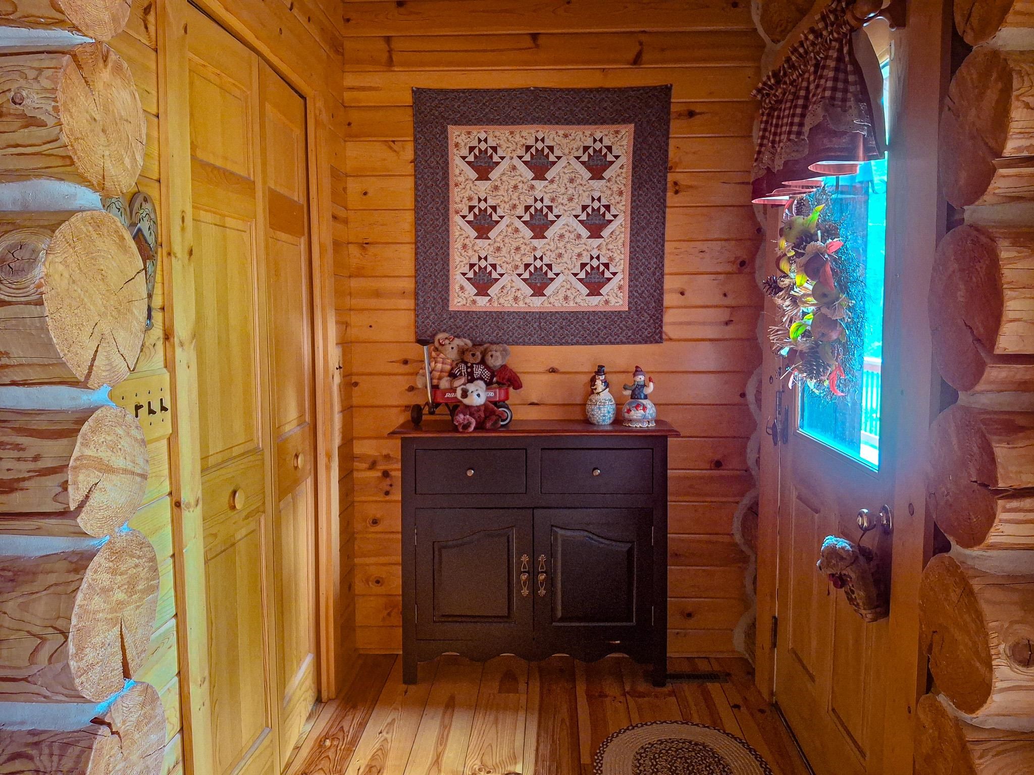 Step into a life less ordinary with this breathtaking custom-built solid log home—where rustic elegance meets serene seclusion, just a short stroll from Timber Ridge Ski Resort and only minutes from the expressway. Tucked at the end of a winding 750-foot paved drive and surrounded by whispering woods, this enchanting retreat offers over 3,500 square feet of warmth, wonder, and timeless charm. The heart of the home beats in the stunning main floor, where imported wide plank heart pine flooring from France glows beneath vaulted ceilings. An executive kitchen is made for gathering, featuring rich granite counters, a 10-foot island, double ovens, gas stove, and stainless steel appliances—all opening to a great room anchored by a massive stone fireplace. Wake each morning in the peaceful main floor primary suite, complete with a full bath, double sinks, and French doors that open to the deck facing the sun-kissed southern landscape. Overlooking it all is a charming 401-square-foot loft, offering views of the northern half of the property—an ideal space for reading, relaxing, or letting your imagination roam. Two additional bedrooms rest quietly on the walk-out lower level, where each has its own sliding doors to the patio and the peaceful outdoors. Downstairs, you’ll also find a second living space with a gas fireplace, a wet bar perfect for entertaining, and a generously sized utility room with abundant storage. Lovingly maintained and thoughtfully upgraded, all major systems have been replaced within the past 13 years, making this home as worry-free as it is welcoming. Comfort is year-round with central heating and air, main floor laundry, underground sprinklers, and thoughtful touches like a hot tub-ready patio and a water spigot for easy outdoor care. Outside, the magic continues with a two-story log barn equipped with 200-amp electric and a frost-free water system—perfect for hobbies, storage, or dreaming big. Here, you won’t see a neighbor—just deer, birdsong, and endless sky. Whether you’re entertaining under the stars, sipping coffee on the porch, or seeking solace in the trees, this is more than a home—it’s a story waiting to be lived.