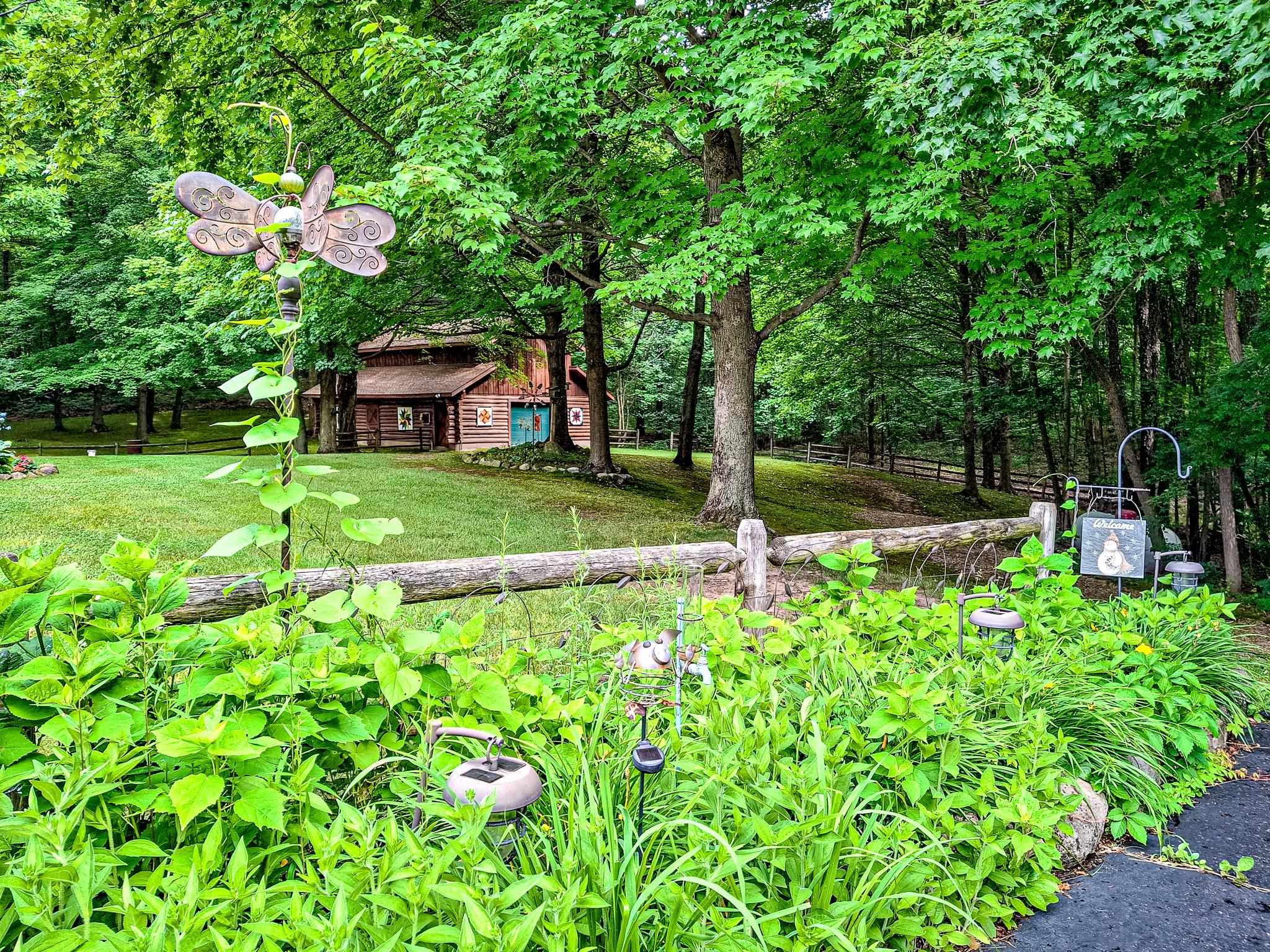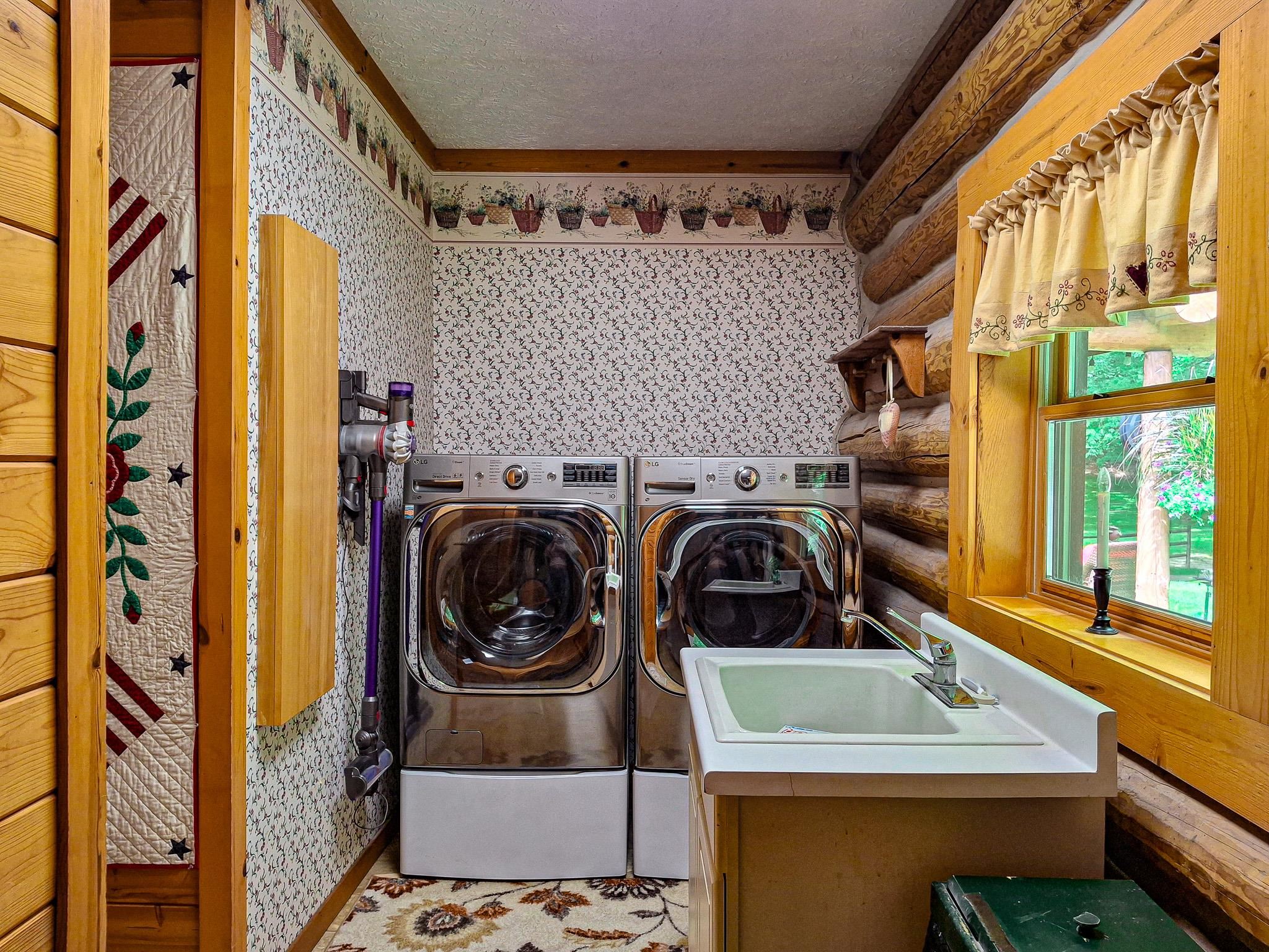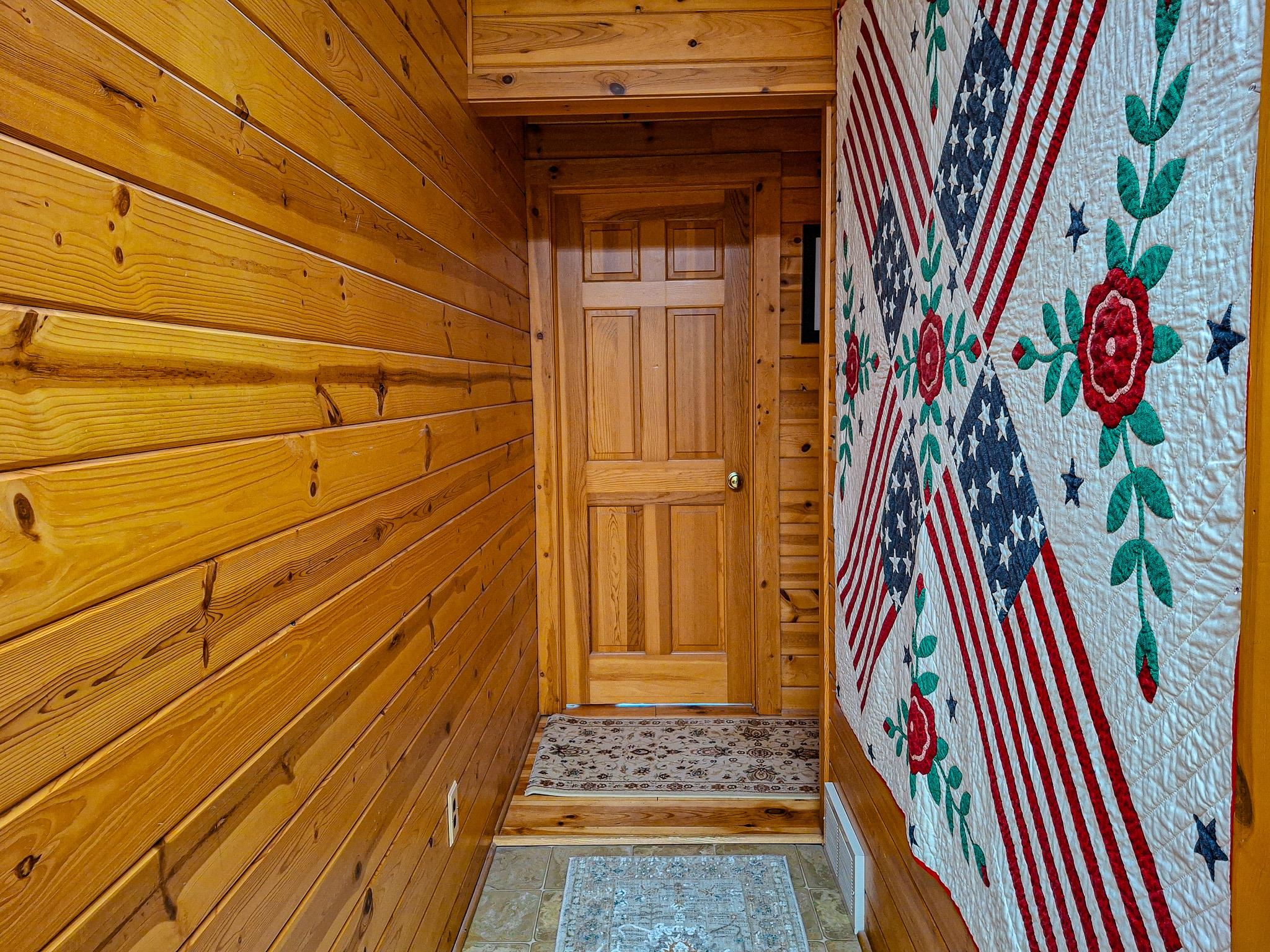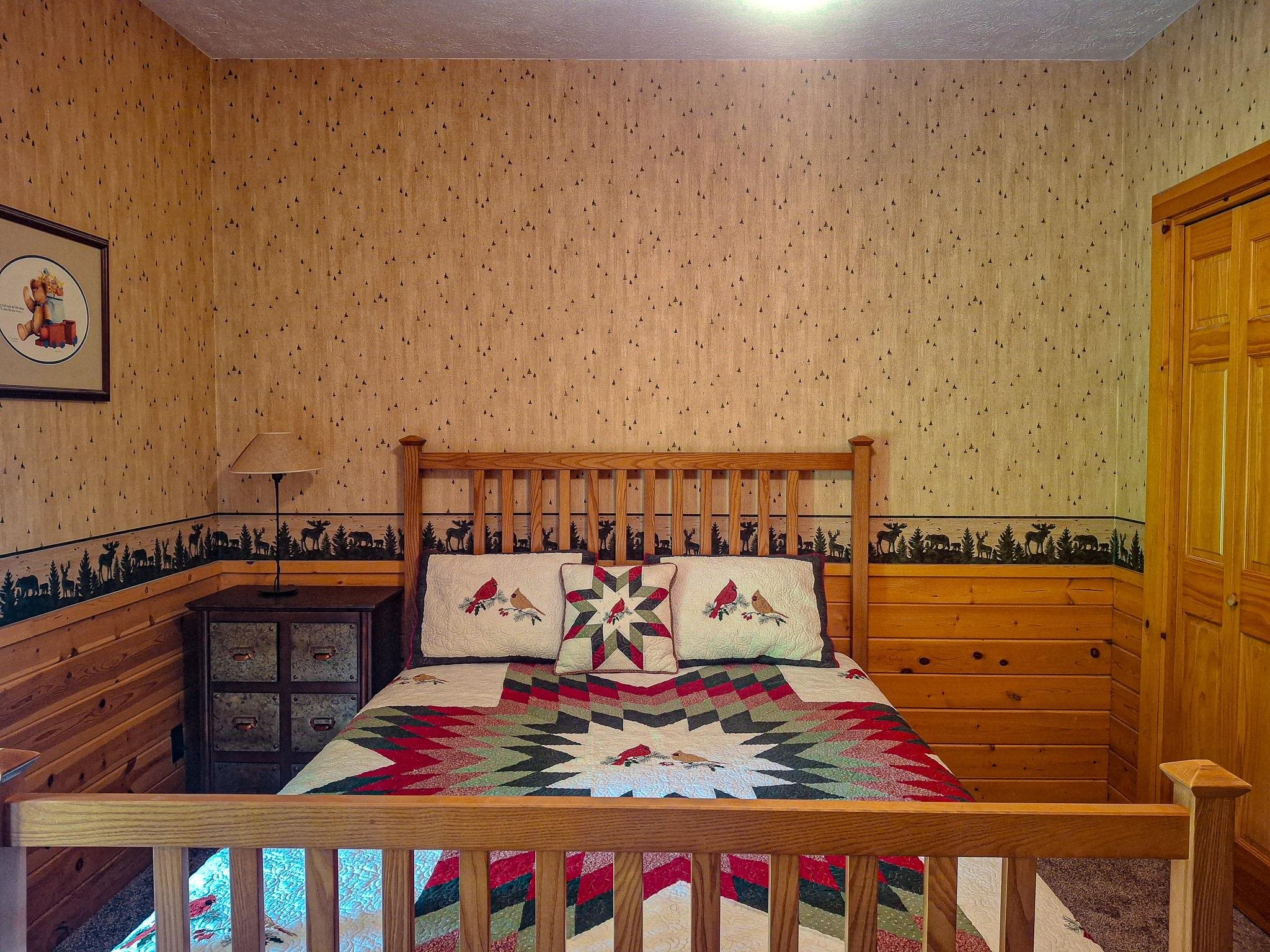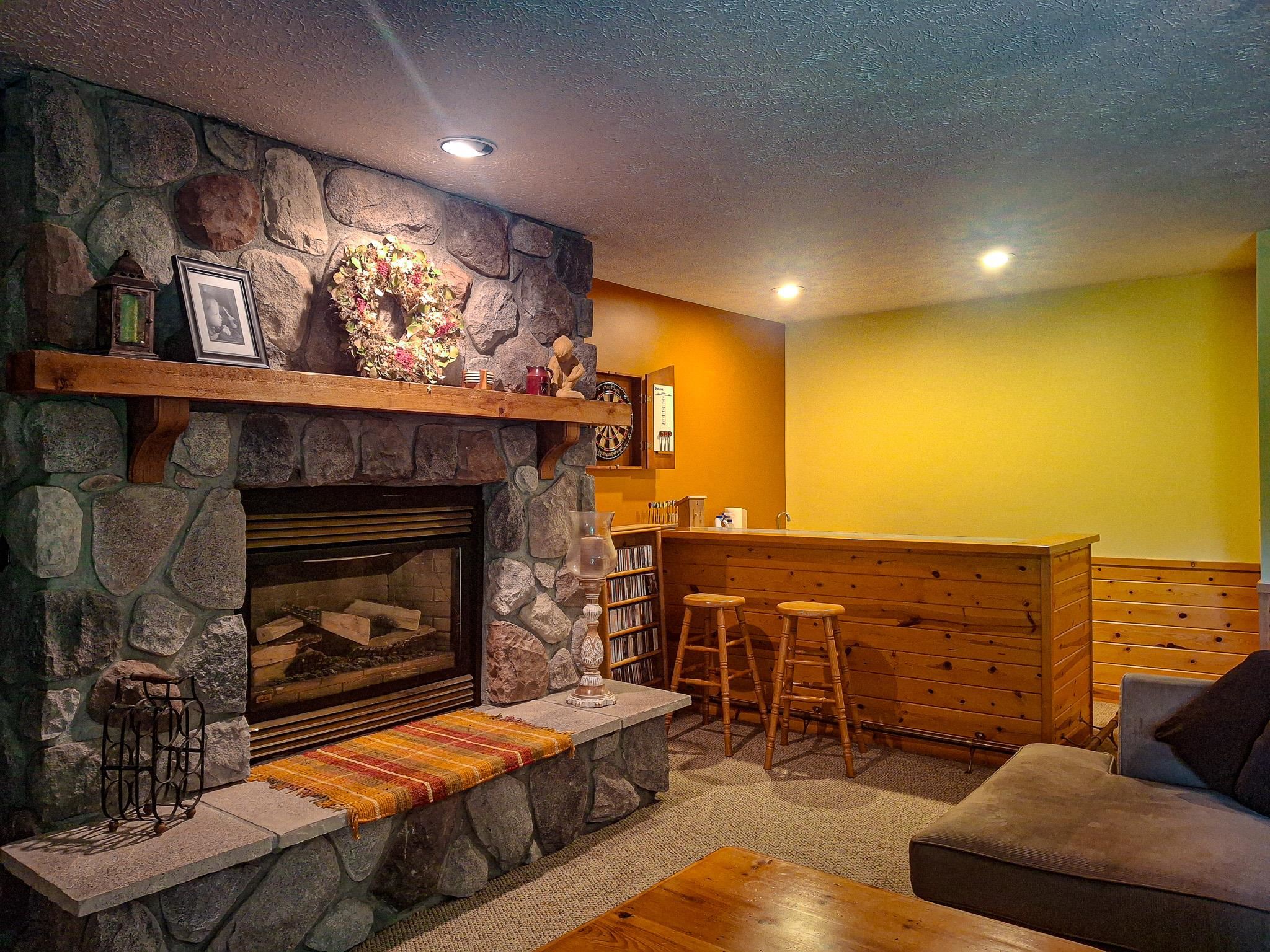 Step into a life less ordinary with this breathtaking custom-built solid log home—where rustic elegance meets serene seclusion, just a short stroll from Timber Ridge Ski Resort and only minutes from the expressway. Tucked at the end of a winding 750-foot paved drive and surrounded by whispering woods, this enchanting retreat offers over 3,500 square feet of warmth, wonder, and timeless charm. The heart of the home beats in the stunning main floor, where imported wide plank heart pine flooring from France glows beneath vaulted ceilings. An executive kitchen is made for gathering, featuring rich granite counters, a 10-foot island, double ovens, gas stove, and stainless steel appliances—all opening to a great room anchored by a massive stone fireplace. Wake each morning in the peaceful main floor primary suite, complete with a full bath, double sinks, and French doors that open to the deck facing the sun-kissed southern landscape. Overlooking it all is a charming 401-square-foot loft, offering views of the northern half of the property—an ideal space for reading, relaxing, or letting your imagination roam. Two additional bedrooms rest quietly on the walk-out lower level, where each has its own sliding doors to the patio and the peaceful outdoors. Downstairs, you’ll also find a second living space with a gas fireplace, a wet bar perfect for entertaining, and a generously sized utility room with abundant storage. Lovingly maintained and thoughtfully upgraded, all major systems have been replaced within the past 13 years, making this home as worry-free as it is welcoming. Comfort is year-round with central heating and air, main floor laundry, underground sprinklers, and thoughtful touches like a hot tub-ready patio and a water spigot for easy outdoor care. Outside, the magic continues with a two-story log barn equipped with 200-amp electric and a frost-free water system—perfect for hobbies, storage, or dreaming big. Here, you won’t see a neighbor—just deer, birdsong, and endless sky. Whether you’re entertaining under the stars, sipping coffee on the porch, or seeking solace in the trees, this is more than a home—it’s a story waiting to be lived.