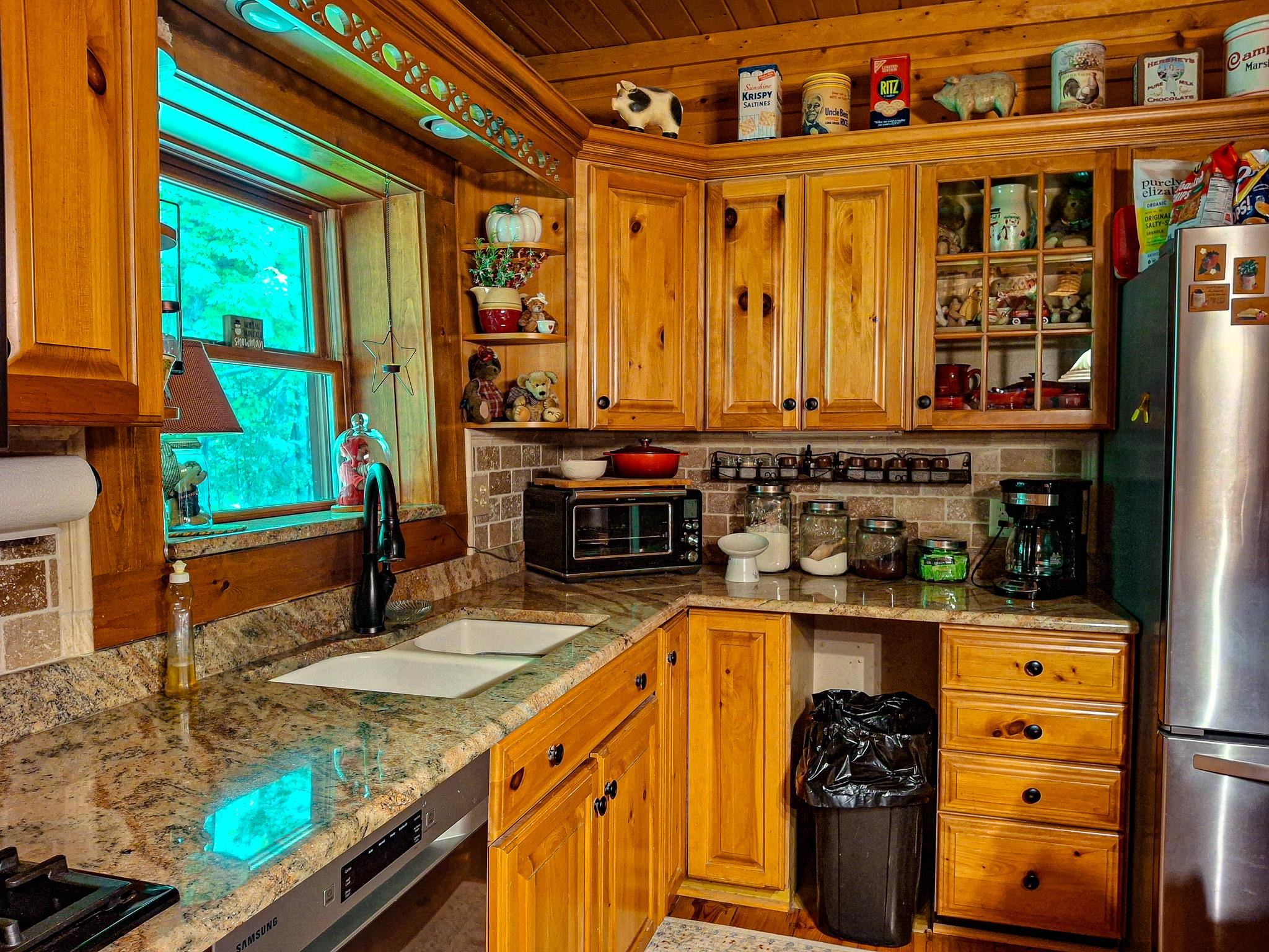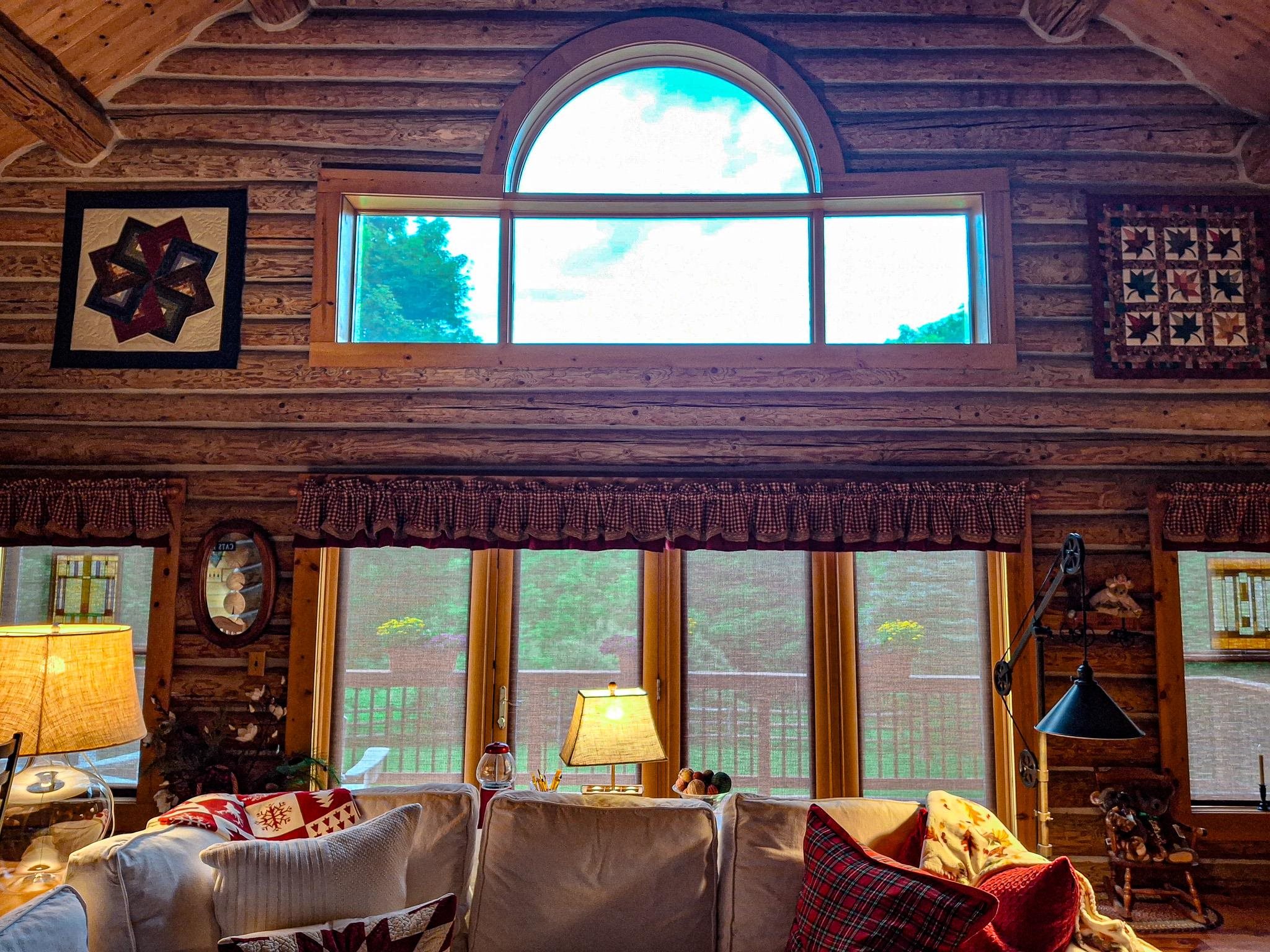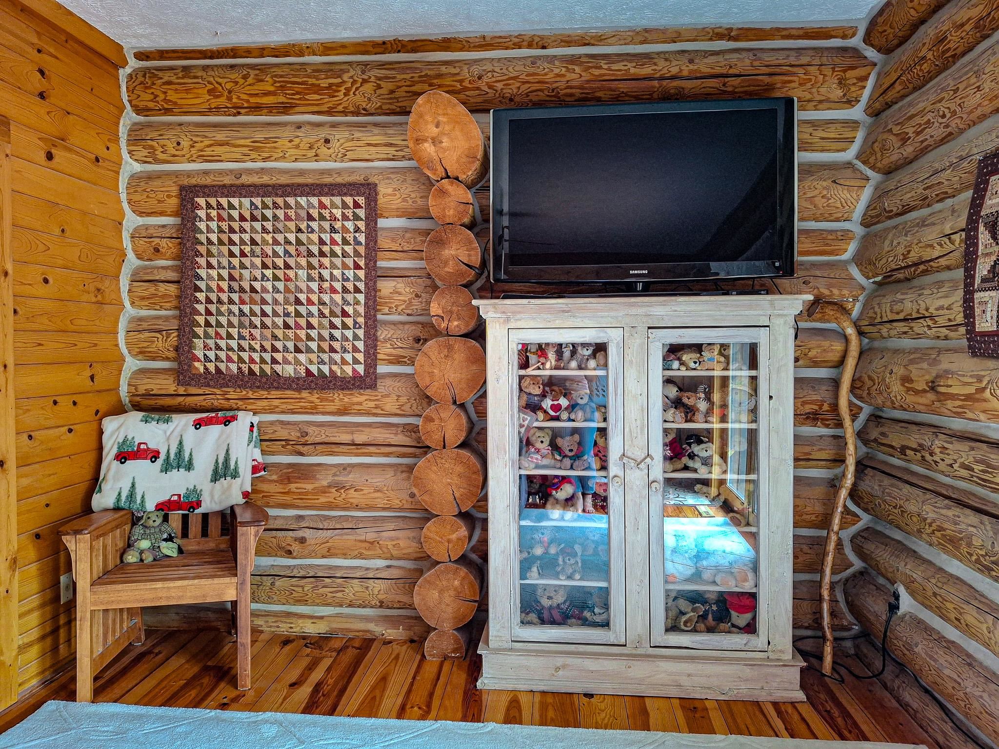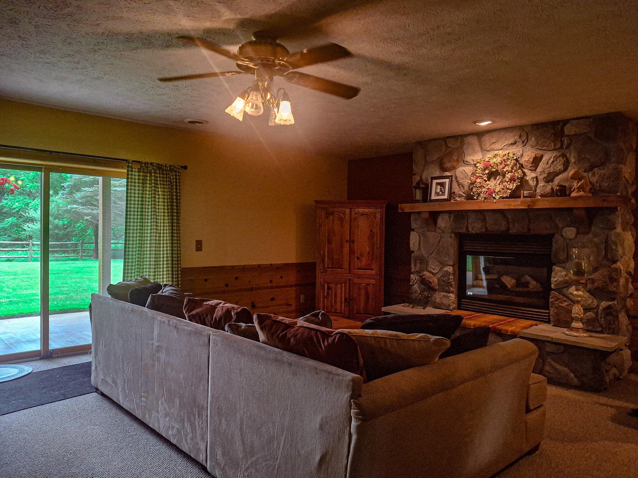 Step into a life less ordinary with this breathtaking custom-built solid log home—where rustic elegance meets serene seclusion, just a short stroll from Timber Ridge Ski Resort and only minutes from the expressway. Tucked at the end of a winding 750-foot paved drive and surrounded by whispering woods, this enchanting retreat offers over 3,500 square feet of warmth, wonder, and timeless charm. The heart of the home beats in the stunning main floor, where imported wide plank heart pine flooring from France glows beneath vaulted ceilings. An executive kitchen is made for gathering, featuring rich granite counters, a 10-foot island, double ovens, gas stove, and stainless steel appliances—all opening to a great room anchored by a massive stone fireplace. Wake each morning in the peaceful main floor primary suite, complete with a full bath, double sinks, and French doors that open to the deck facing the sun-kissed southern landscape. Overlooking it all is a charming 401-square-foot loft, offering views of the northern half of the property—an ideal space for reading, relaxing, or letting your imagination roam. Two additional bedrooms rest quietly on the walk-out lower level, where each has its own sliding doors to the patio and the peaceful outdoors. Downstairs, you’ll also find a second living space with a gas fireplace, a wet bar perfect for entertaining, and a generously sized utility room with abundant storage. Lovingly maintained and thoughtfully upgraded, all major systems have been replaced within the past 13 years, making this home as worry-free as it is welcoming. Comfort is year-round with central heating and air, main floor laundry, underground sprinklers, and thoughtful touches like a hot tub-ready patio and a water spigot for easy outdoor care. Outside, the magic continues with a two-story log barn equipped with 200-amp electric and a frost-free water system—perfect for hobbies, storage, or dreaming big. Here, you won’t see a neighbor—just deer, birdsong, and endless sky. Whether you’re entertaining under the stars, sipping coffee on the porch, or seeking solace in the trees, this is more than a home—it’s a story waiting to be lived.