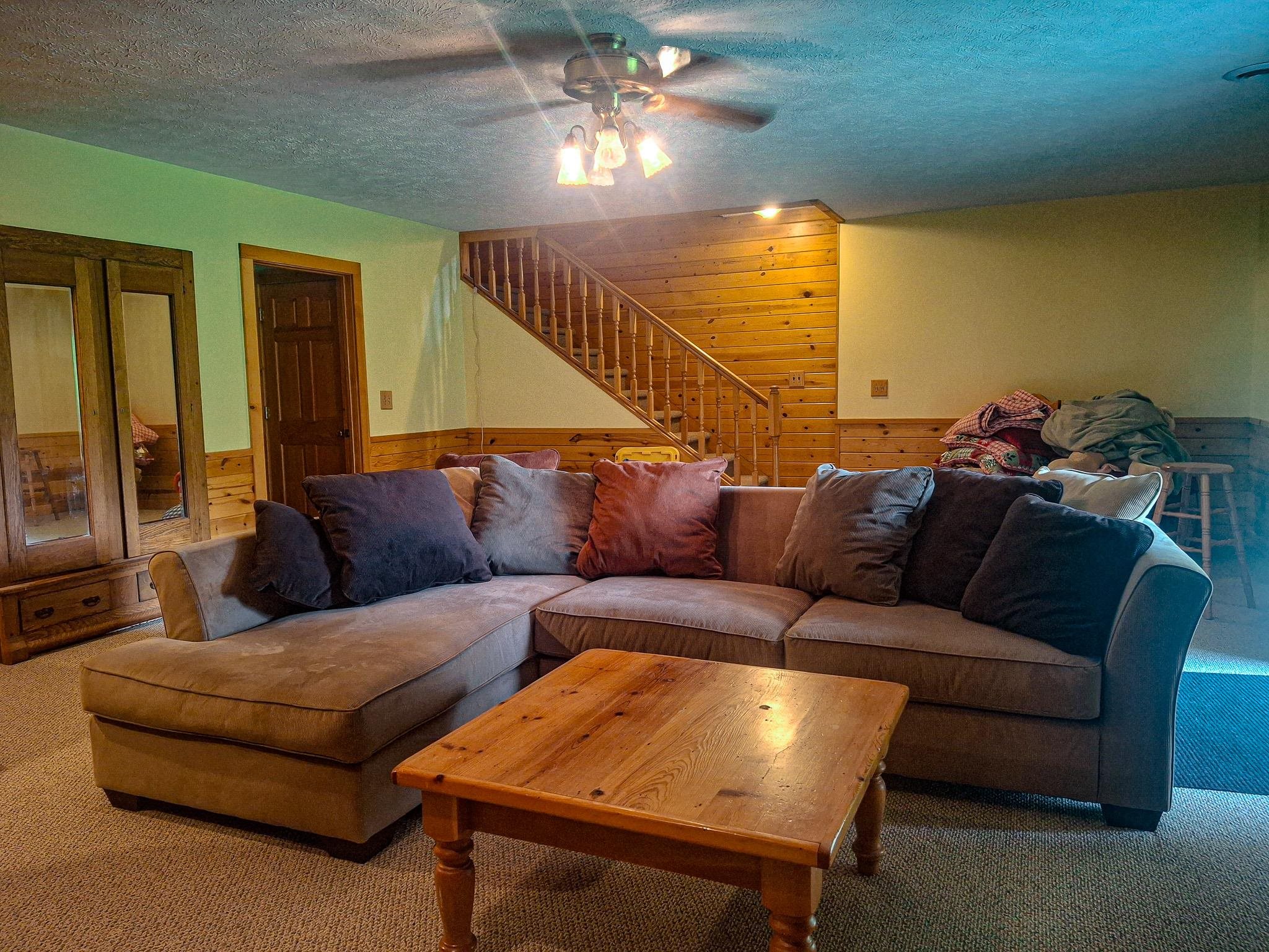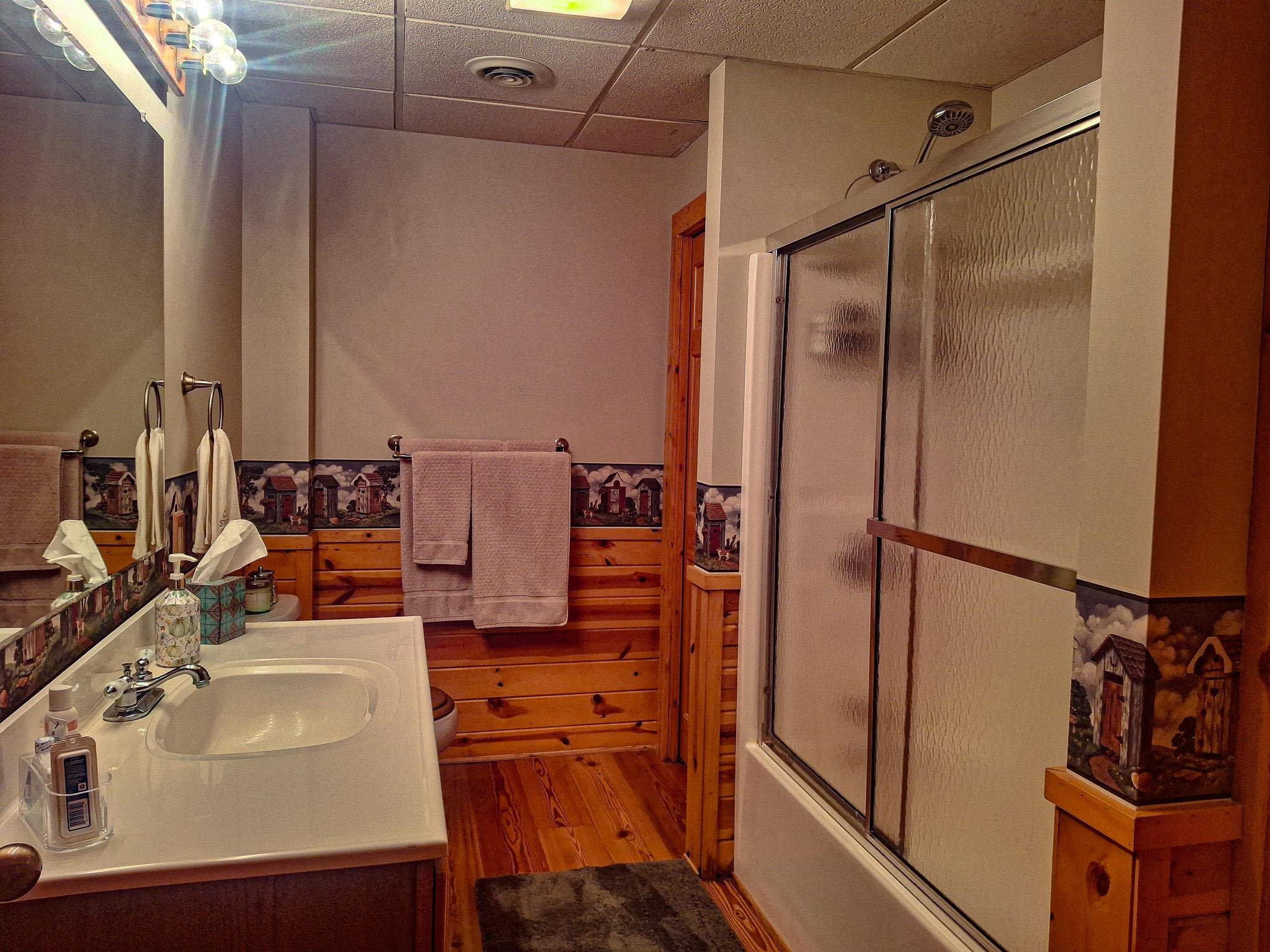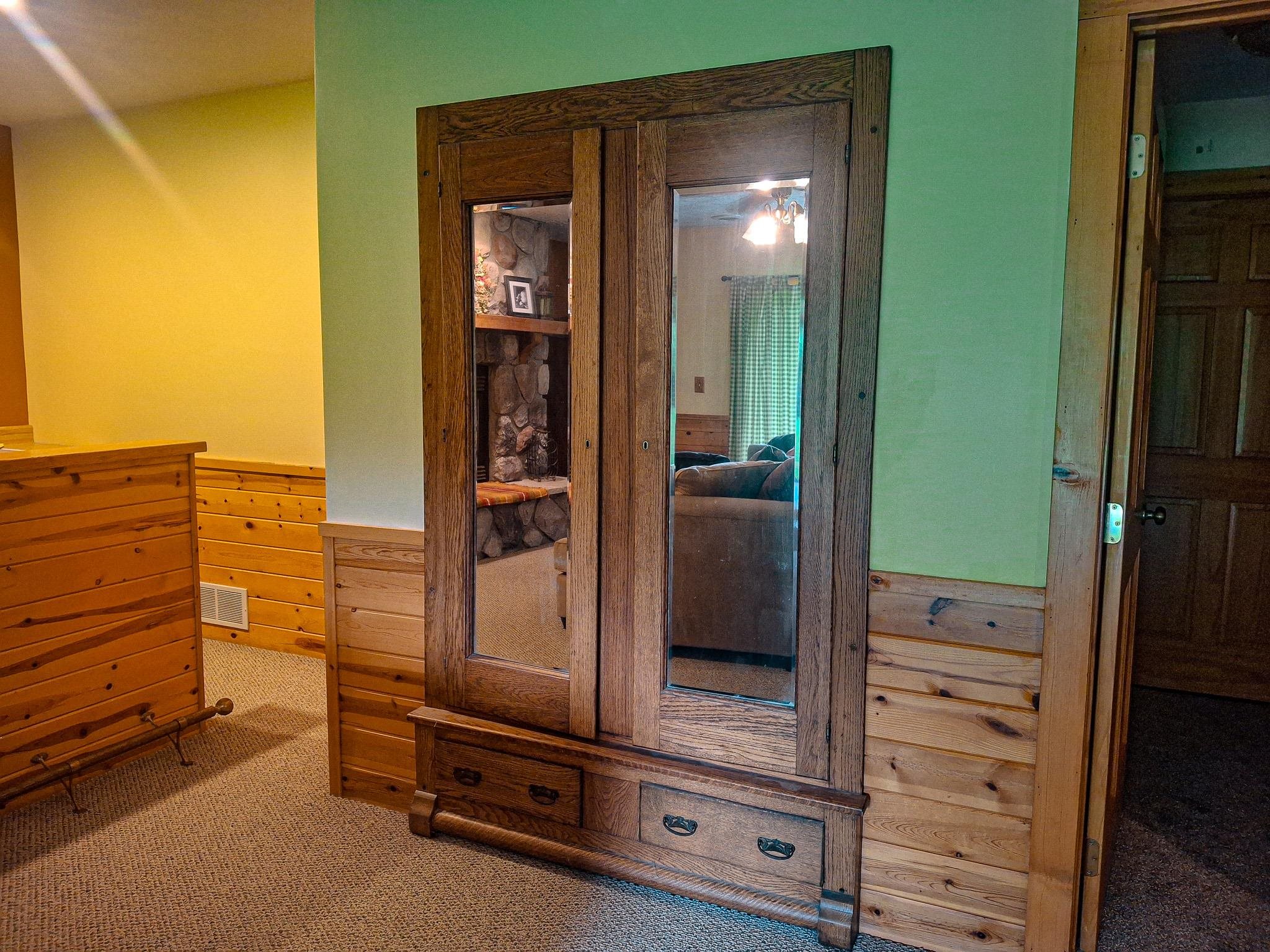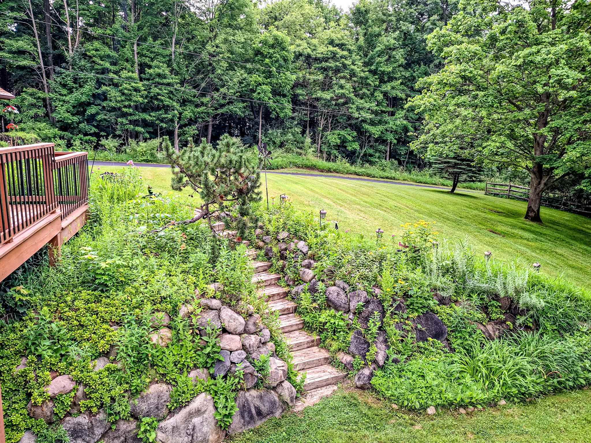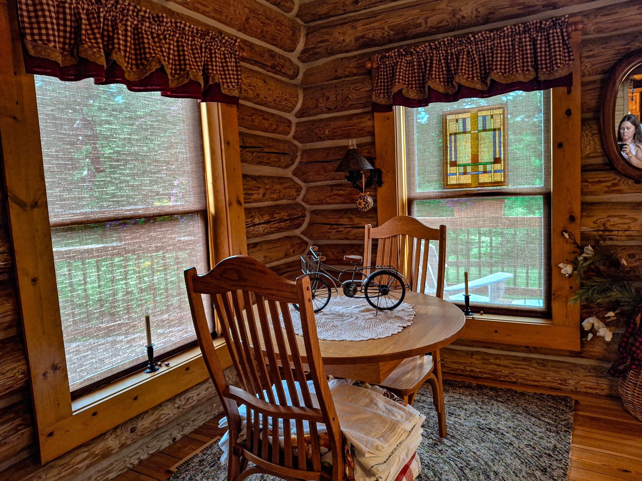 Step into a life less ordinary with this breathtaking custom-built solid log home—where rustic elegance meets serene seclusion, just a short stroll from Timber Ridge Ski Resort and only minutes from the expressway. Tucked at the end of a winding 750-foot paved drive and surrounded by whispering woods, this enchanting retreat offers over 3,500 square feet of warmth, wonder, and timeless charm. The heart of the home beats in the stunning main floor, where imported wide plank heart pine flooring from France glows beneath vaulted ceilings. An executive kitchen is made for gathering, featuring rich granite counters, a 10-foot island, double ovens, gas stove, and stainless steel appliances—all opening to a great room anchored by a massive stone fireplace. Wake each morning in the peaceful main floor primary suite, complete with a full bath, double sinks, and French doors that open to the deck facing the sun-kissed southern landscape. Overlooking it all is a charming 401-square-foot loft, offering views of the northern half of the property—an ideal space for reading, relaxing, or letting your imagination roam. Two additional bedrooms rest quietly on the walk-out lower level, where each has its own sliding doors to the patio and the peaceful outdoors. Downstairs, you’ll also find a second living space with a gas fireplace, a wet bar perfect for entertaining, and a generously sized utility room with abundant storage. Lovingly maintained and thoughtfully upgraded, all major systems have been replaced within the past 13 years, making this home as worry-free as it is welcoming. Comfort is year-round with central heating and air, main floor laundry, underground sprinklers, and thoughtful touches like a hot tub-ready patio and a water spigot for easy outdoor care. Outside, the magic continues with a two-story log barn equipped with 200-amp electric and a frost-free water system—perfect for hobbies, storage, or dreaming big. Here, you won’t see a neighbor—just deer, birdsong, and endless sky. Whether you’re entertaining under the stars, sipping coffee on the porch, or seeking solace in the trees, this is more than a home—it’s a story waiting to be lived.