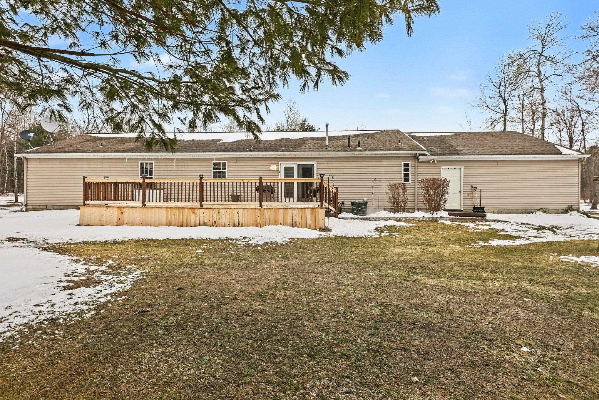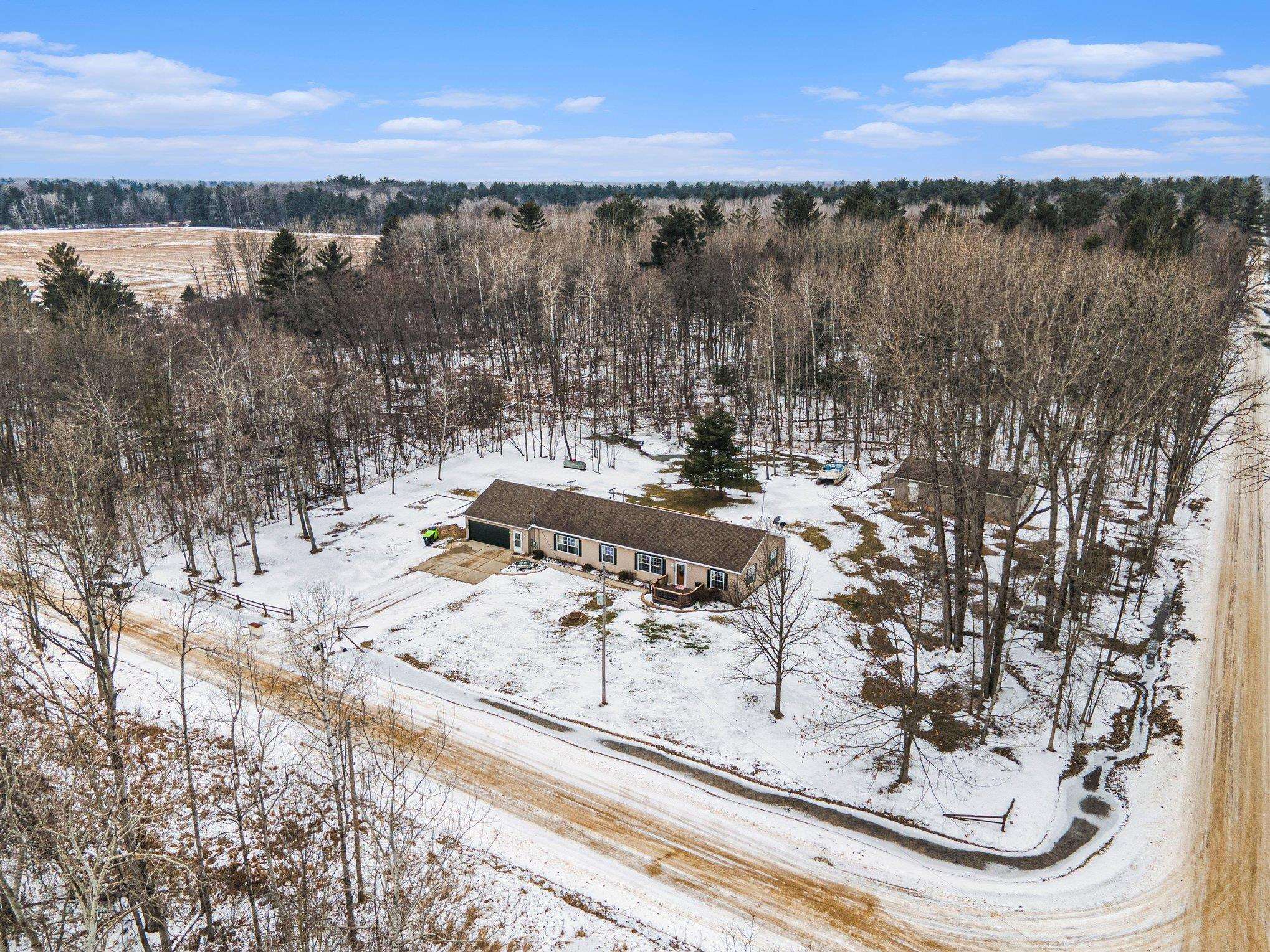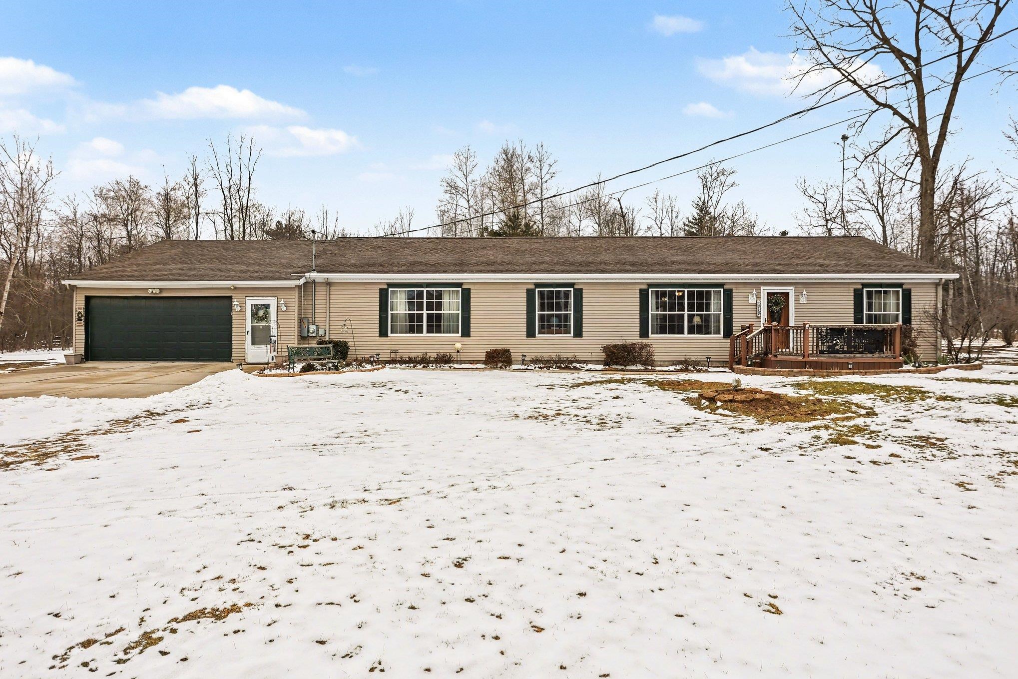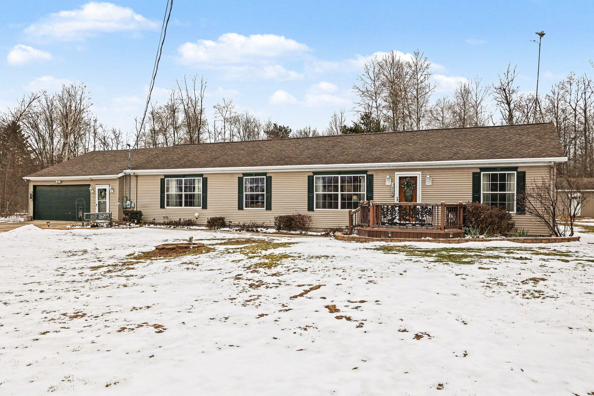 Spacious Ranch on 1.18 Acres with Att Garage & Pole Barn! This well-maintained 4-bedroom, 2 full bath manufactured ranch offers over 1,740 sq ft of comfortable living space set on a beautiful 1.18-acre lot. Enjoy a large open living room overlooking the front yard and a spacious dining room perfect for gatherings. The highlight of the home is the expansive kitchen, featuring a center island, recessed lighting, tile backsplash, and a breakfast nook. The primary suite offers a true retreat with a huge walk-in closet and a full bath complete with a soaking tub, separate shower, and ample storage. The updated hall bathroom adds to the home’s appeal. Step outside to a newer back deck overlooking the backyard and surrounding woods, plus a composite front deck for low-maintenance curb appeal. Additional features include central air, vinyl siding, vinyl windows, gutters, and a new well (2020). The property also boasts an attached garage, detached pole barn offering plenty of space for vehicles, storage, and hobbies. Enjoy country-style living with room to spread out while still having all the conveniences you need!
