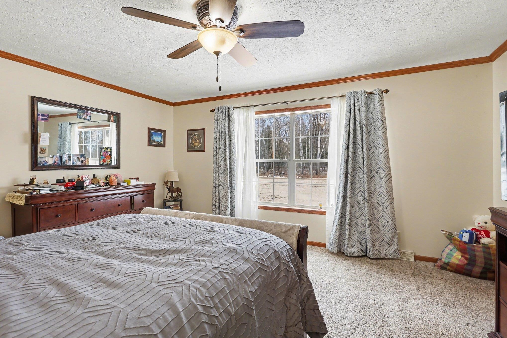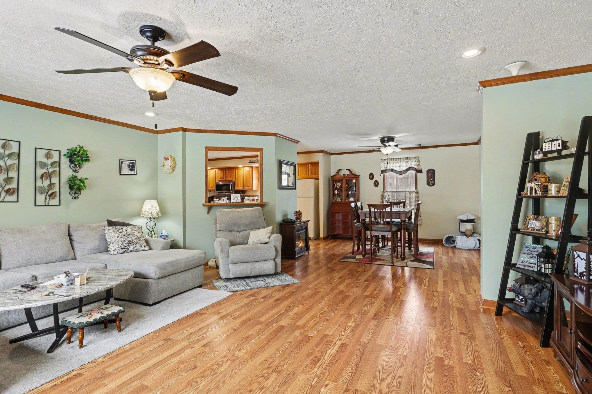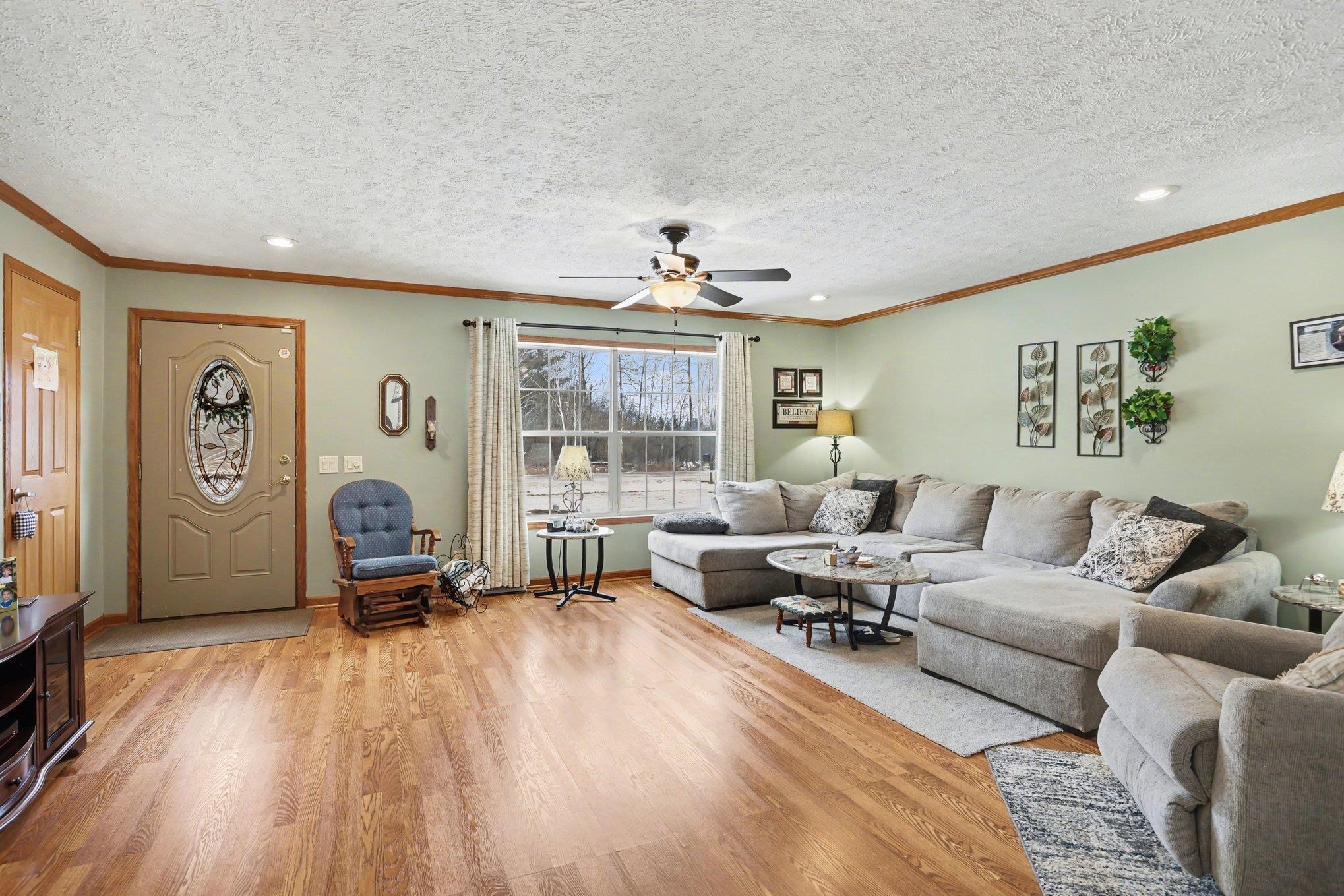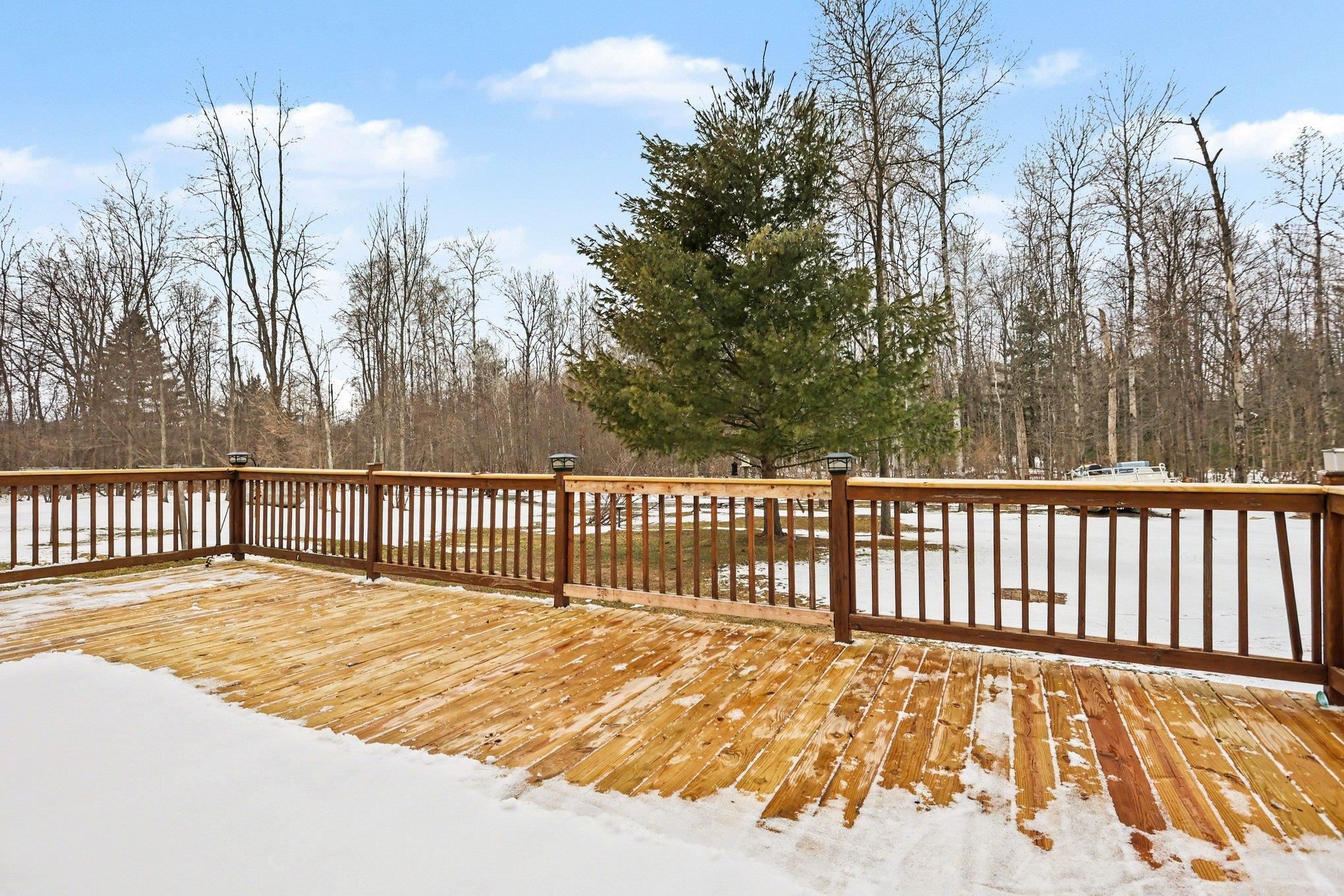 Spacious Ranch on 1.18 Acres with Att Garage & Pole Barn! This well-maintained 4-bedroom, 2 full bath manufactured ranch offers over 1,740 sq ft of comfortable living space set on a beautiful 1.18-acre lot. Enjoy a large open living room overlooking the front yard and a spacious dining room perfect for gatherings. The highlight of the home is the expansive kitchen, featuring a center island, recessed lighting, tile backsplash, and a breakfast nook. The primary suite offers a true retreat with a huge walk-in closet and a full bath complete with a soaking tub, separate shower, and ample storage. The updated hall bathroom adds to the home’s appeal. Step outside to a newer back deck overlooking the backyard and surrounding woods, plus a composite front deck for low-maintenance curb appeal. Additional features include central air, vinyl siding, vinyl windows, gutters, and a new well (2020). The property also boasts an attached garage, detached pole barn offering plenty of space for vehicles, storage, and hobbies. Enjoy country-style living with room to spread out while still having all the conveniences you need!