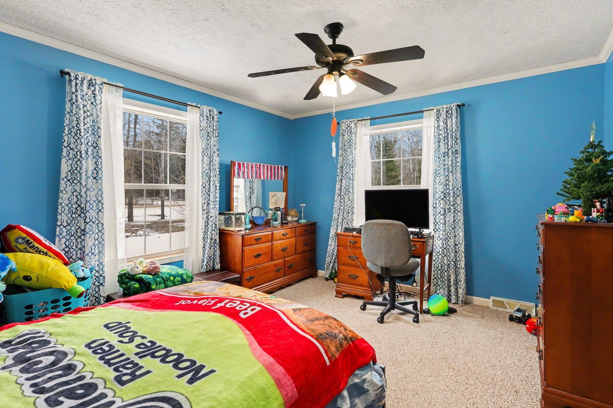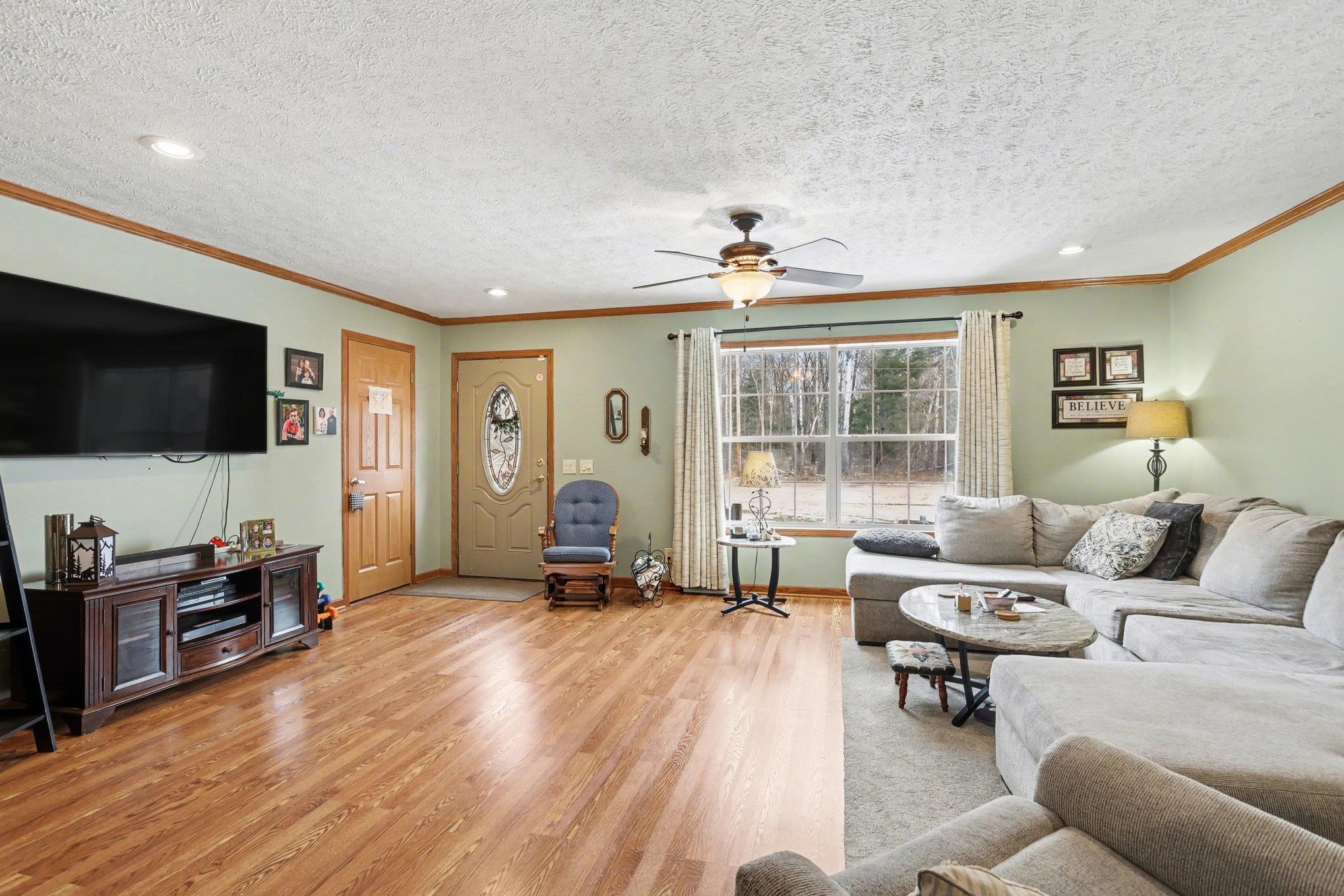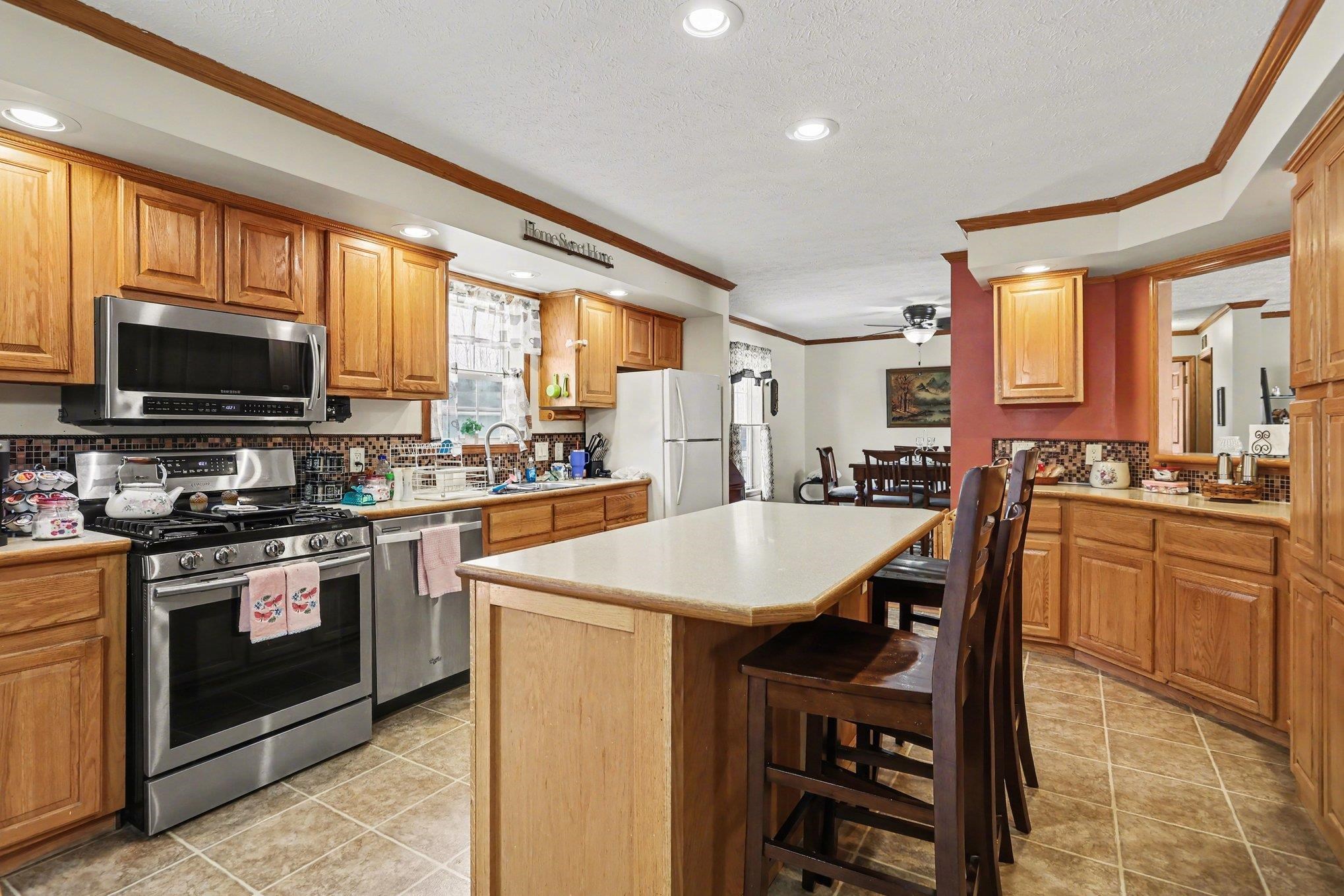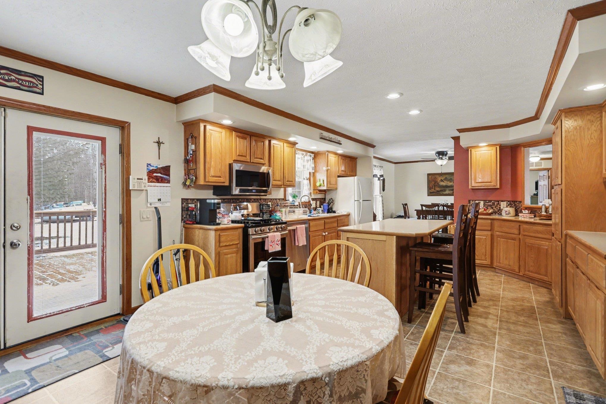 Spacious Ranch on 1.18 Acres with Att Garage & Pole Barn! This well-maintained 4-bedroom, 2 full bath manufactured ranch offers over 1,740 sq ft of comfortable living space set on a beautiful 1.18-acre lot. Enjoy a large open living room overlooking the front yard and a spacious dining room perfect for gatherings. The highlight of the home is the expansive kitchen, featuring a center island, recessed lighting, tile backsplash, and a breakfast nook. The primary suite offers a true retreat with a huge walk-in closet and a full bath complete with a soaking tub, separate shower, and ample storage. The updated hall bathroom adds to the home’s appeal. Step outside to a newer back deck overlooking the backyard and surrounding woods, plus a composite front deck for low-maintenance curb appeal. Additional features include central air, vinyl siding, vinyl windows, gutters, and a new well (2020). The property also boasts an attached garage, detached pole barn offering plenty of space for vehicles, storage, and hobbies. Enjoy country-style living with room to spread out while still having all the conveniences you need!