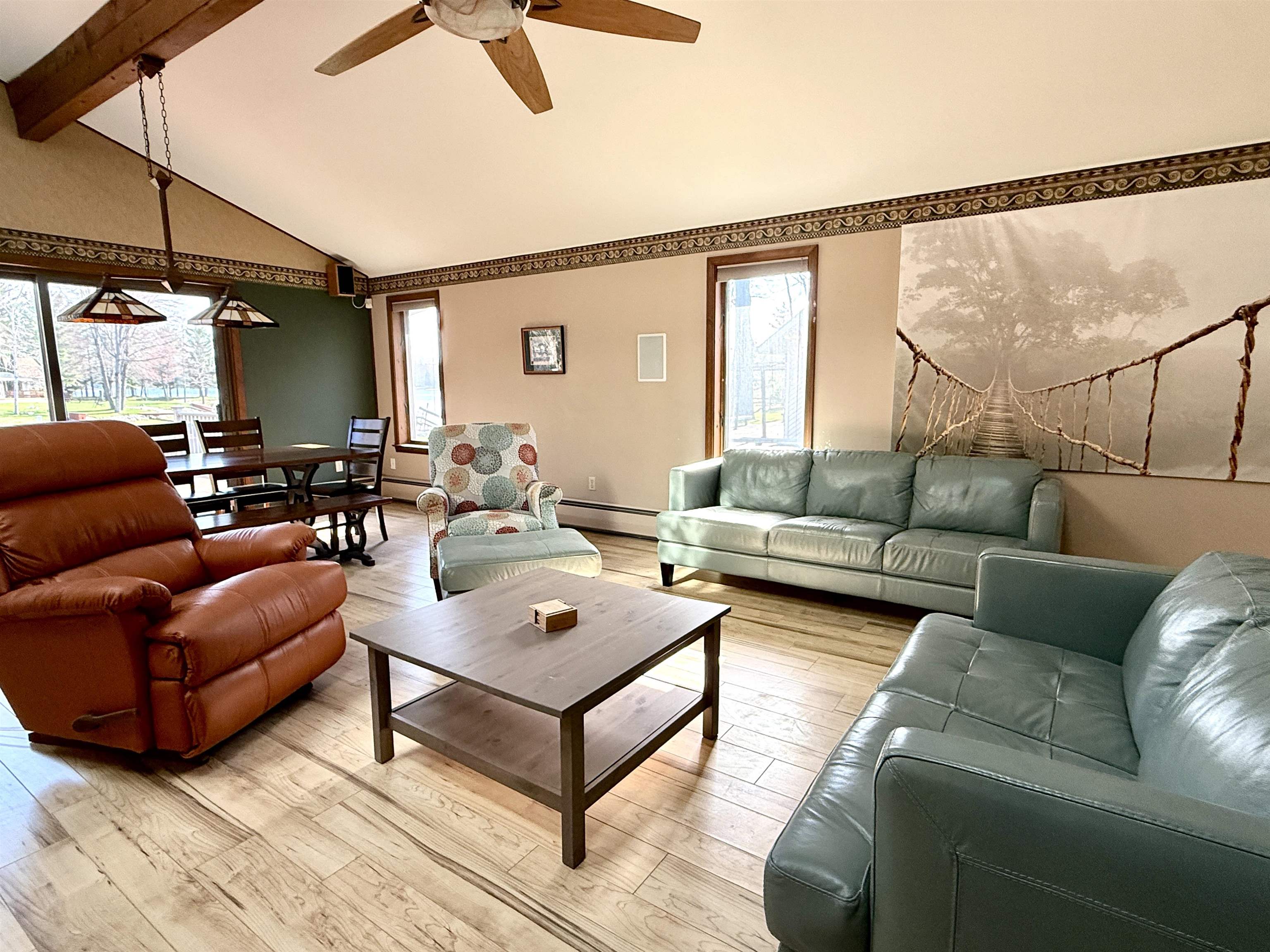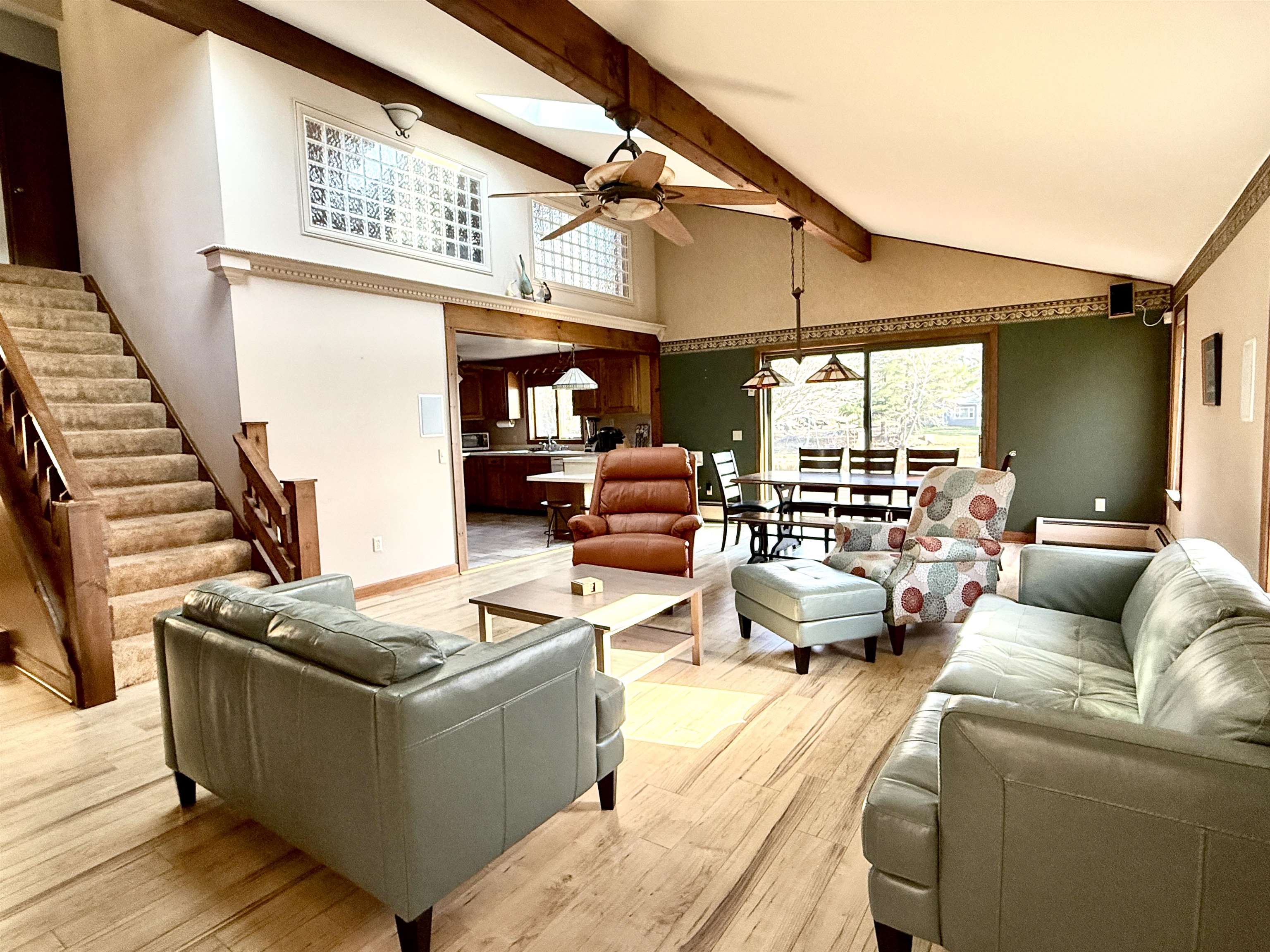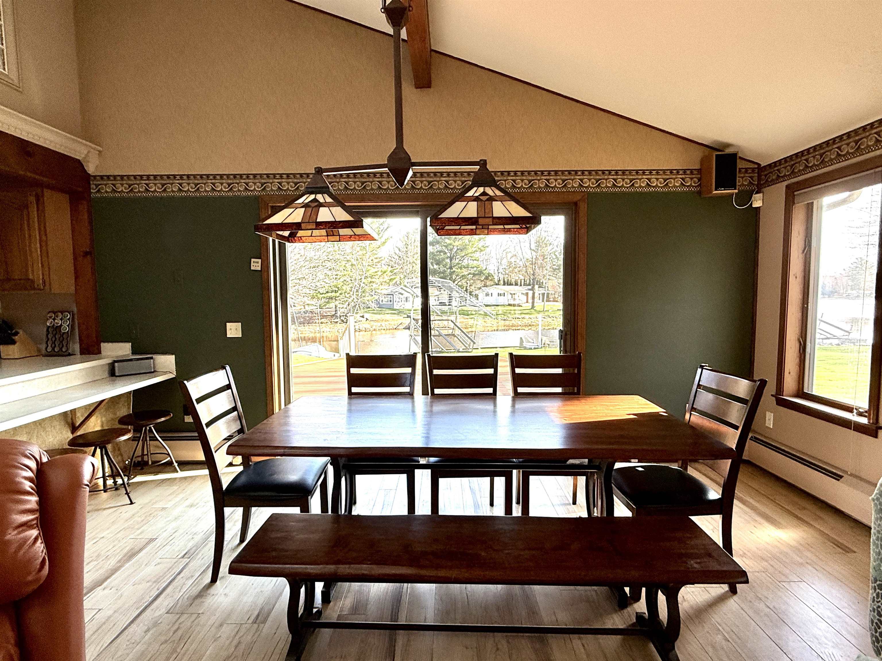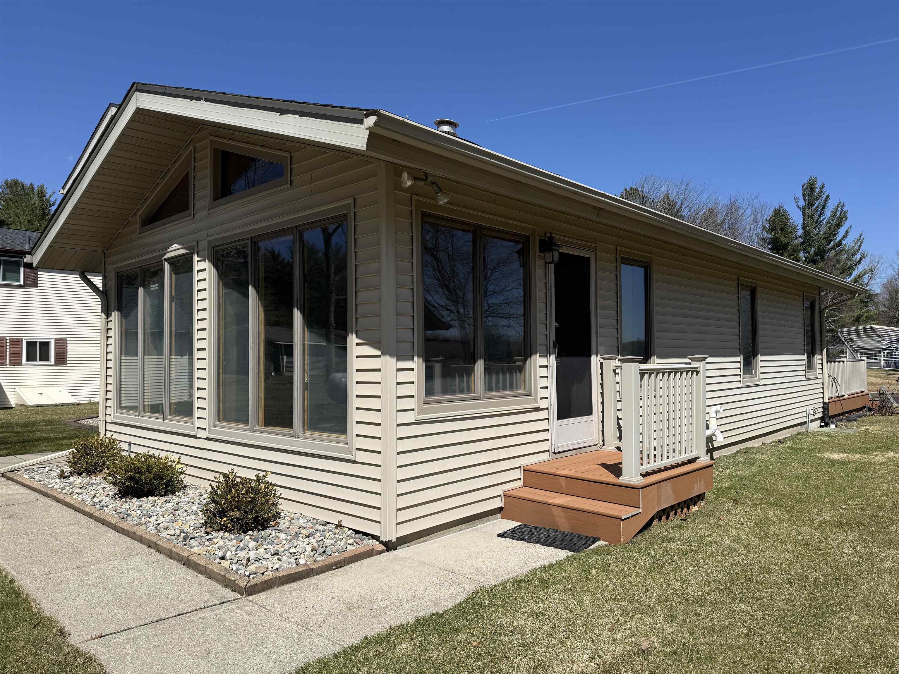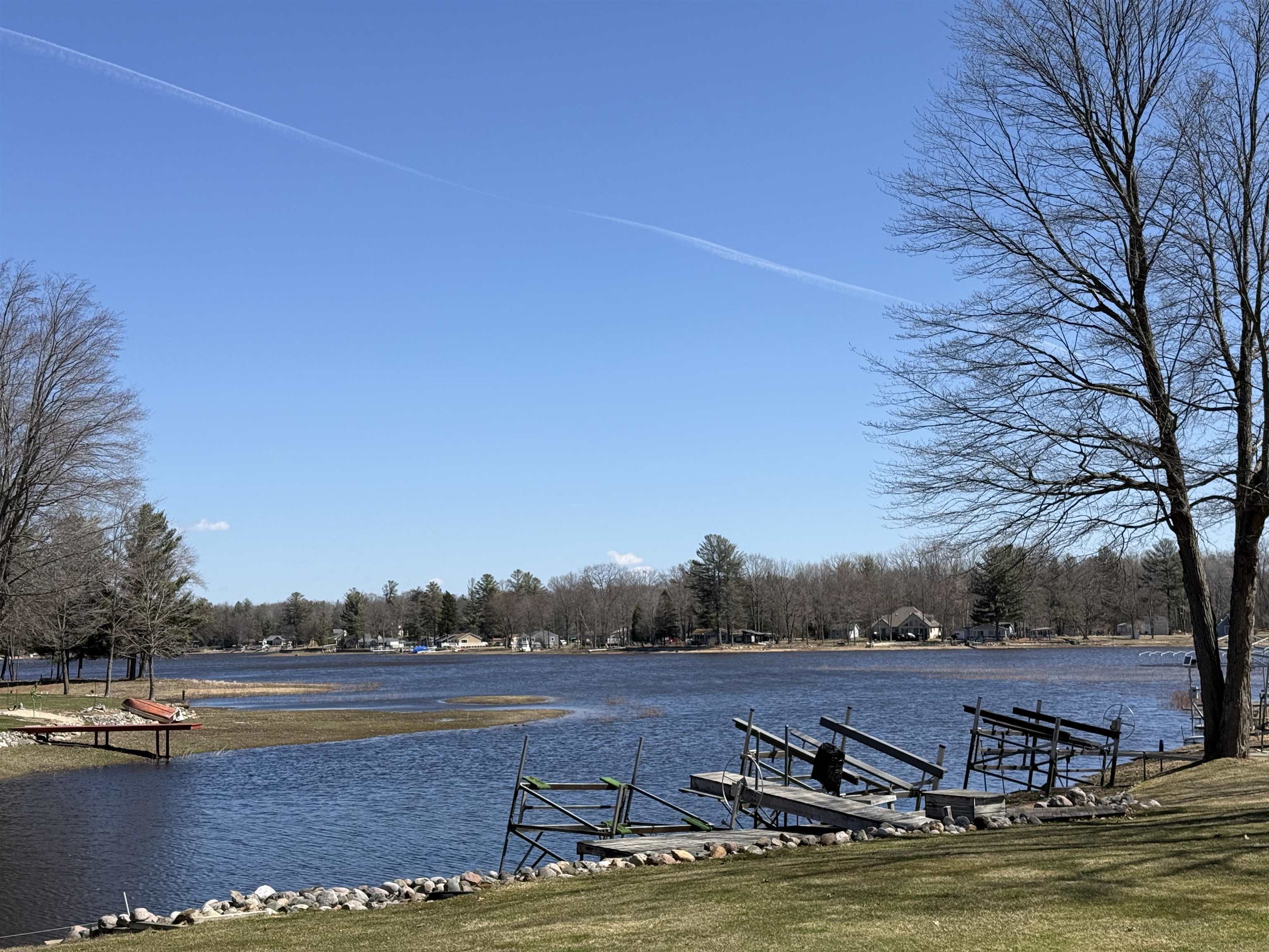 Wonderful Secord Lake Waterfront Home offers 4 bedrooms and 2 full baths, blending modern architectural style with a bright, open floor plan. The spacious great room features a soaring cathedral ceiling and a striking stone fireplace. The kitchen has ample cabinetry with a peninsula bar for casual meals. The dining area is family-sized, with a patio door leading to the maintenance-free composite deck, perfect for entertaining. A beautiful sunroom lined with expansive windows overlooks the backyard, creating a relaxing space to unwind year-round. The primary bedroom includes an attached bath and a private balcony with beautiful lake views. Situated on a large lot along a wide canal, just three homes from the main lake. Enjoy the sand-bottom walk-in shoreline with sparkling clean water, ideal for swimming. This is a peaceful location that still provides quick access to the main lake, offering the best of waterfront living!. Recent updates include a new roof, furnace, new skylights, a 5″ well, and a new stove, providing added peace of mind. Additional features include a sprinkler system and a generous 3-car garage. This home can come fully furnished with the right offer. Don’t hesitate on this spacious waterfront retreat with both privacy and prime lake access. Lake levels are currently lower due to dam construction/updates, but there’s plenty of water for swimming, fishing, and kayaking. Pontoon boats are out cruising the main lake and channels. See the FLTF website for all information regarding the dam assessment. Dam completion expected in 2026. www.four-lakes-taskforce-mi.com.