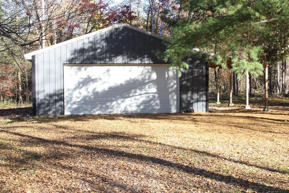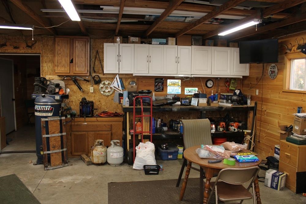 Peaceful setting with the Cranberry Creek running through the property. This 3 bedroom 1 full bath home is situated on 7.59 acres with approximately 1,100 feet of the Cranberry Creek winding through the property. There are two bridges over the creek so you can get your side by side across it. The home features an open living space with a large deck to enjoy watching the wildlife and overlooking the creek. There is an insert in the living room fireplace to help during the cold winter days. There is a large walk in shower in the bathroom, over sized laundry room for extra storage, central air for the warmer days of summer and newer flooring in the kitchen and living room. The 2 car detached garage has concrete floor, electricity, door openers, propane heat, work shop and lean to. The 24×24 pole barn out back has electricity, concrete floor, door opener, pellet stove and a lean to. There are two large sheds for even more storage, one has electricity. All this on a paved road with a concrete driveway. Seller is offering immediate occupancy at closing.