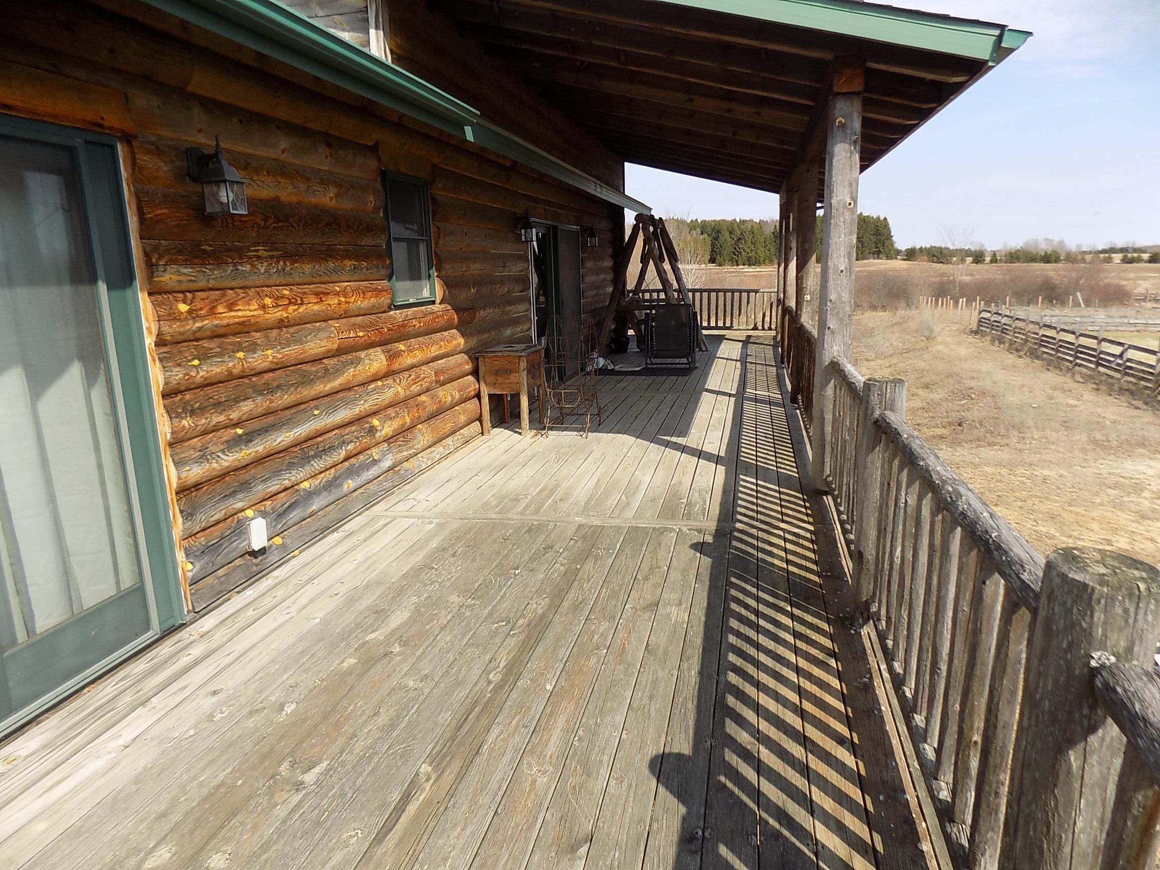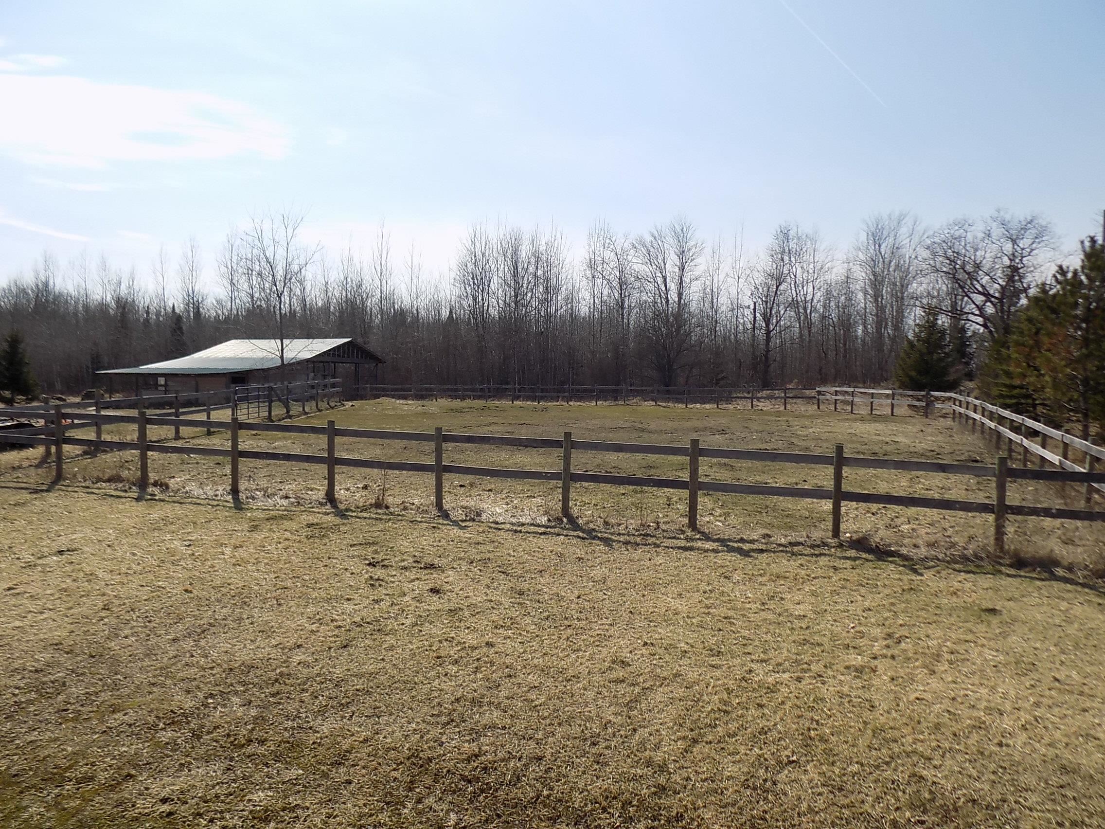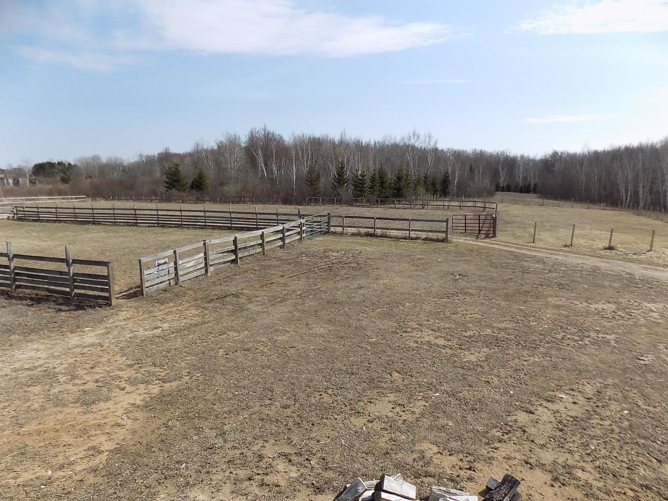 Riding arena! Do I have your attention? Check out this 1500+ sqft Full log home that sits on 6+/- acres. Knotty pine throughout the home. Full length deck that overlooks the back yard that has an 80×200 riding arena, 60×90 side training paddock. Out the side of the house is an approx 40×60 polebarn with an ‘L’ shaped paddock towards the road. The detached 30×44 heated garage was used as a body shop repair, complete w/ a paint booth bay. Several areas around the property is already fenced off and ready for your animals!