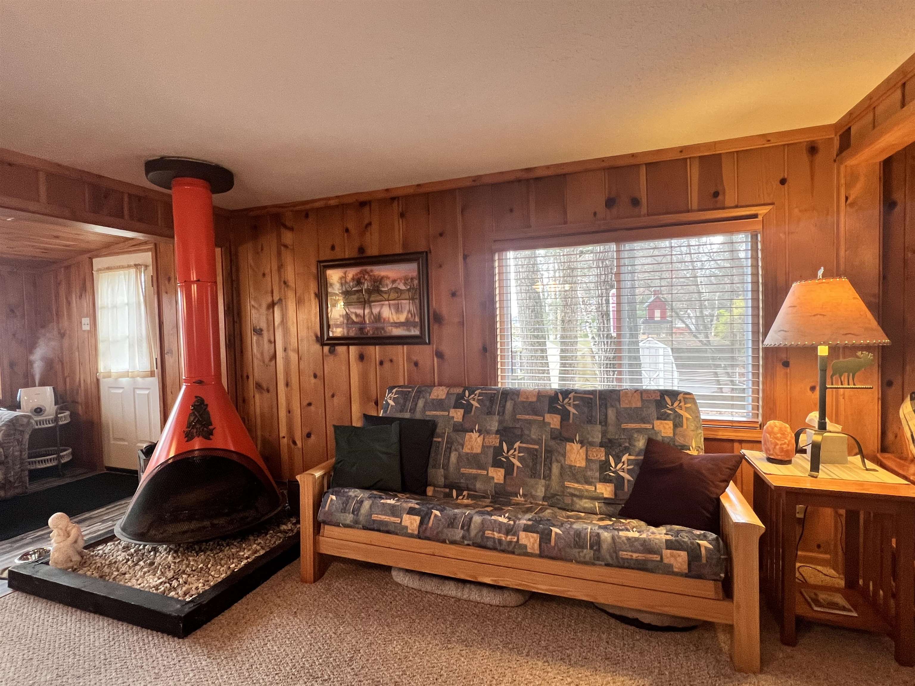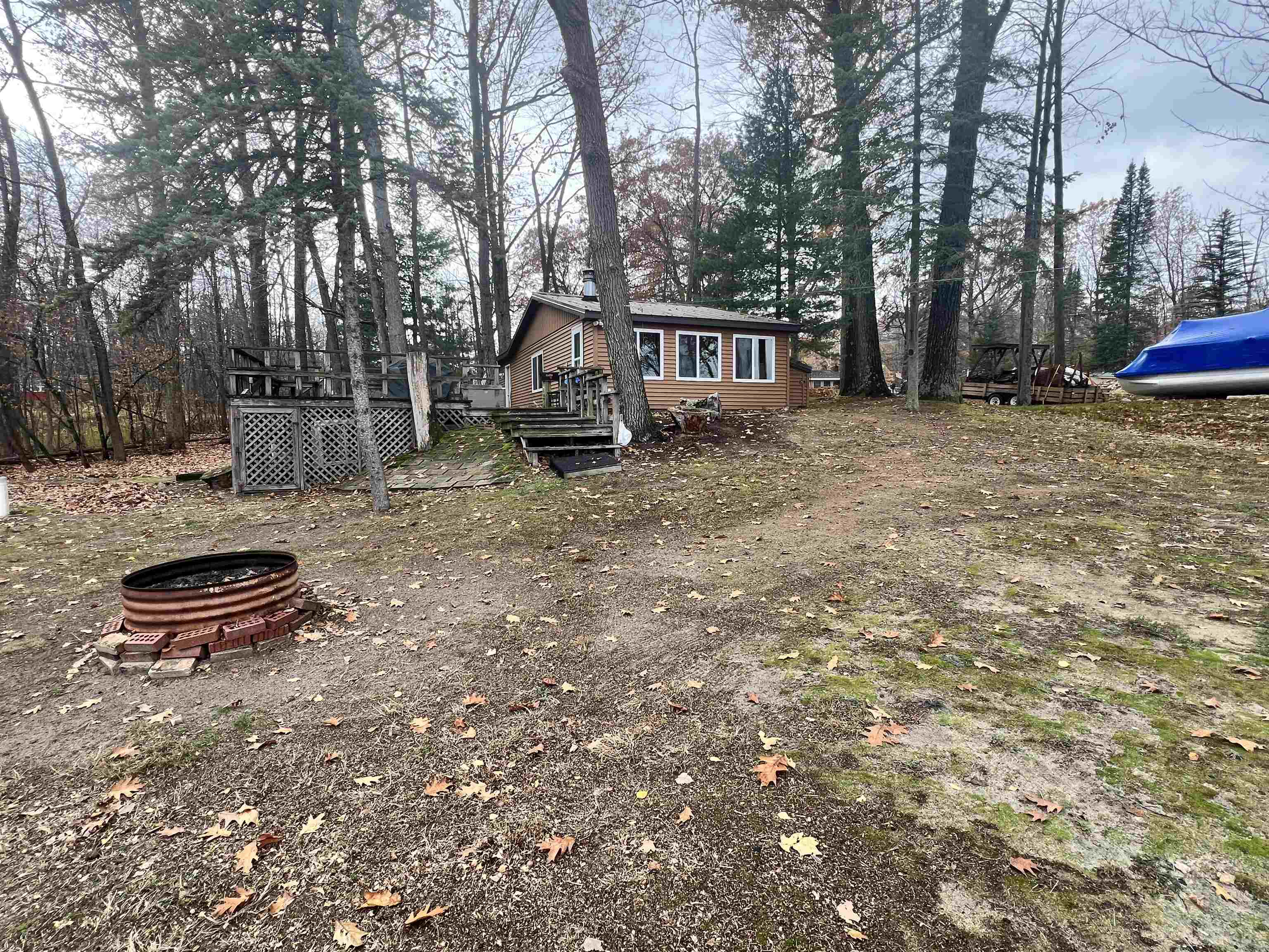 Cranberry Lake canal-front serenity awaits at this comfortable one-bedroom, one-bath Up North cottage suited for full-time living or weekend escapes. Features include a retro fireplace, LP forced-air wall furnace, refrigerator, gas stove, and an inviting eat-in kitchen. Recent updates include a new metal roof and new vinyl siding for low-maintenance living. Set on one of the largest lots on the canal, offering 144 feet of frontage, this property delivers generous outdoor space. A shaded deck overlooks the lake, and the firepit shares the same peaceful view. Park your pontoon at the front dock and enjoy summers spent fishing, relaxing, and perfecting your tan on the water.
