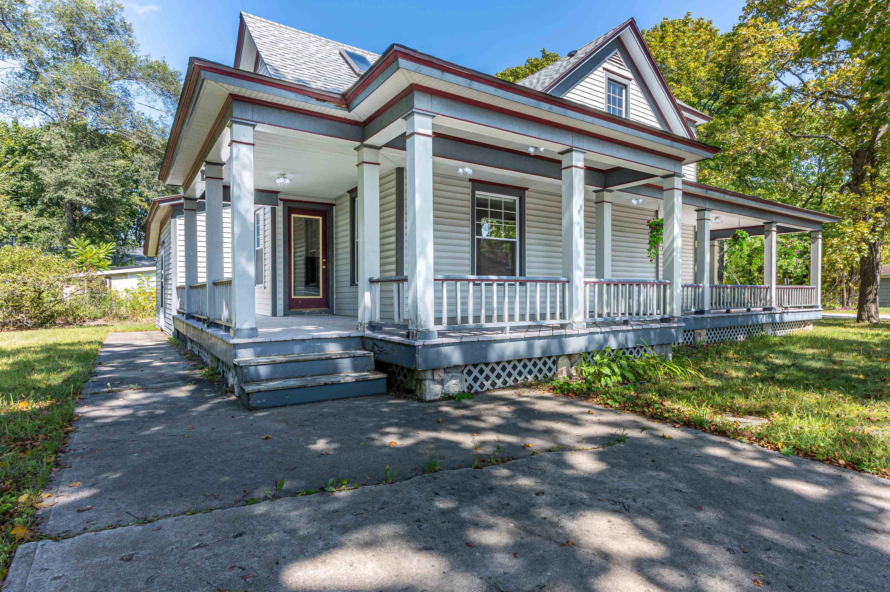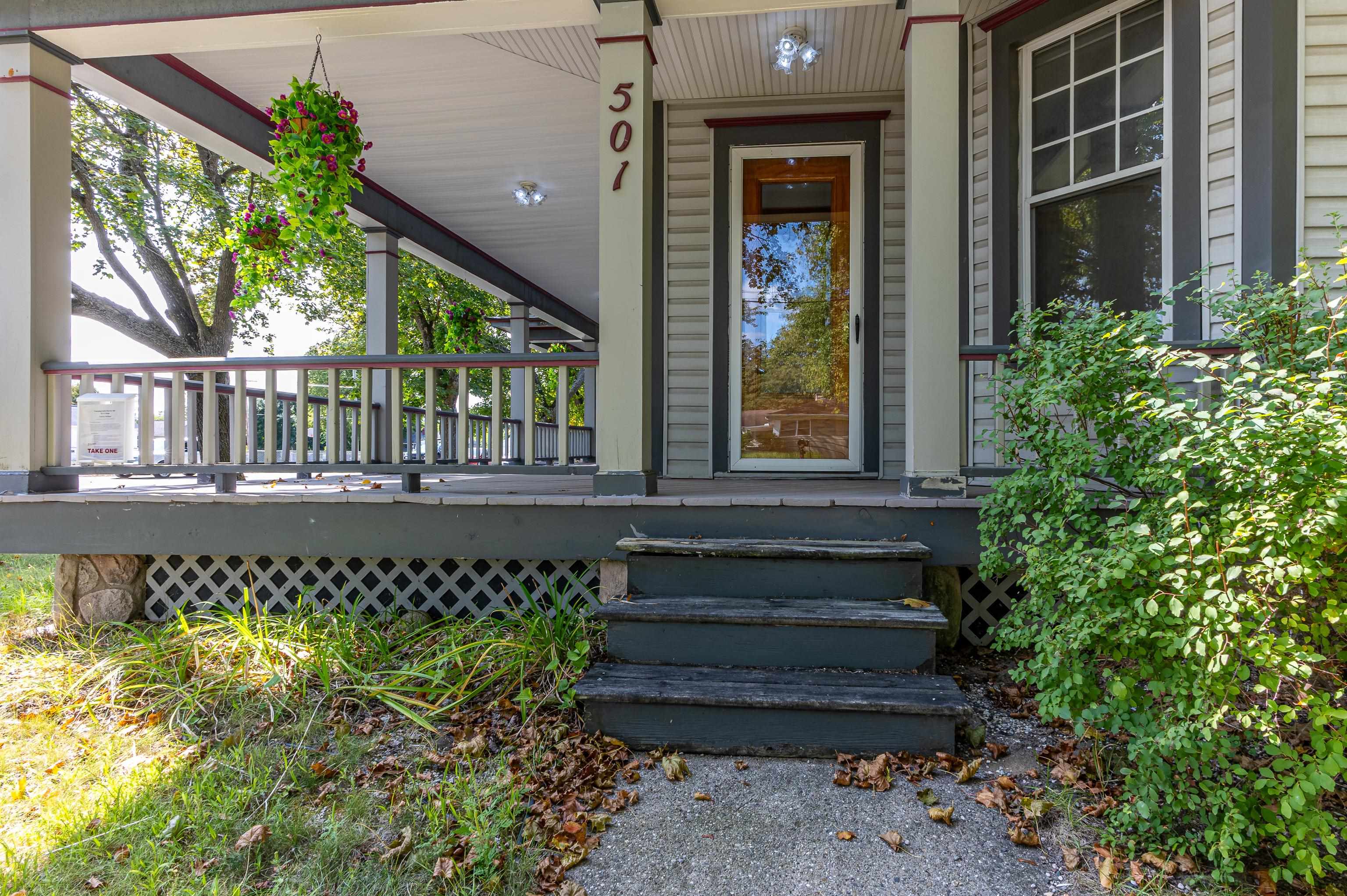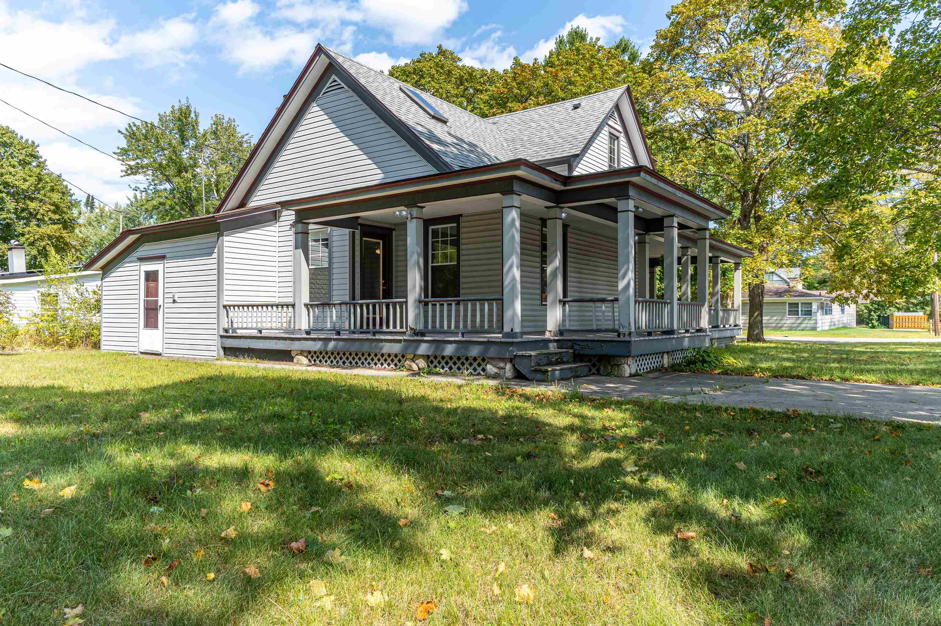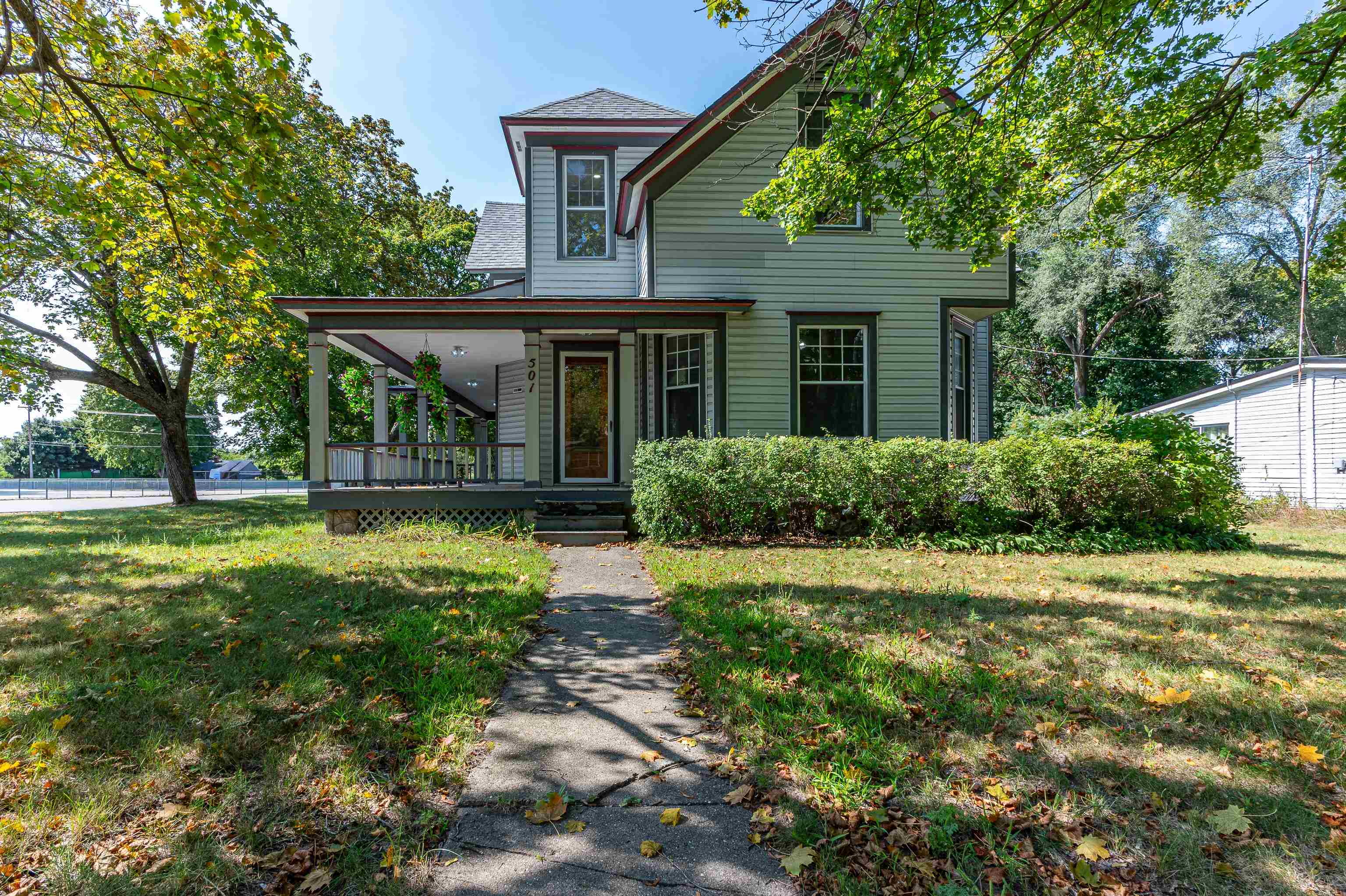 GLADWIN CITY – Immaculate 3BR/2BA Victorian home with nearly 2,000 sq ft of living space on a corner lot! Gorgeous interior includes gas-log corner fireplace w/Brazilian granite, beautiful hardwood floors, spacious rooms thru-out, skylights, and nice kitchen w/wall oven, appliances, & high-top bar with barstool seating. Recent updates include newer roof/furnace/water heater, main floor bathroom w/walk-in shower, tiled kitchen & dining room floor, and new carpet upstairs. This charming home sits on a large corner lot that has mature trees and a beautiful wrap-around porch to enjoy the view. Perfect location on a paved road in town close to schools, restaurants & shopping. Must see to appreciate the charm & character of this stately historic home! $275,000