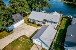 Welcome to your waterfront paradise! Custom-built in 2010, this 3-bed, 4-bath marvel spans 4210 sq ft of pure luxury. The attention to detail is evident from the moment you step inside. Indulge in the open-concept living space, boasting vaulted ceilings & an abundance of natural light pouring in from southeast-facing windows & skylights — thoughtfully oriented to capture sunlight throughout the entire day, with the rare ability to enjoy both stunning sunrises & sunsets right from your living space, a true favorite feature of the owners. Cedar plank ceilings & a handcrafted staircase add warmth & character. The primary en suite is a haven of comfort, featuring an attached sunroom with breathtaking panoramic lake views. Upstairs, a bonus room awaits, complete with its own fireplace, full bath, & wet bar – perfect for entertaining. The gourmet kitchen is a chef’s dream, offering hickory cabinets, granite countertops, a wine cooler, & a large pantry for ample storage. Recent upgrades, including brand new hickory floors, fresh paint, 2 new furnaces, & central air units. Solar panels have been installed and insulation has been added in the attic and the concrete floor crawl space has been completly sealed and conditioned. Additional features such as a reverse osmosis system, sprinkler system, Bose speaker system with 3 separate zones, ADT security system, new hot tub & an aluminum boat dock with additional sections, elevate the lifestyle. Nestled in a serene waterfront community, this home offers the perfect blend of luxury & convenience. Don’t miss your chance to experience waterfront living at its finest – schedule your private tour today! *Separate .45 acre lot and a new, 32′ x 48′ pole barn with 14′ doors, available for an additional price*