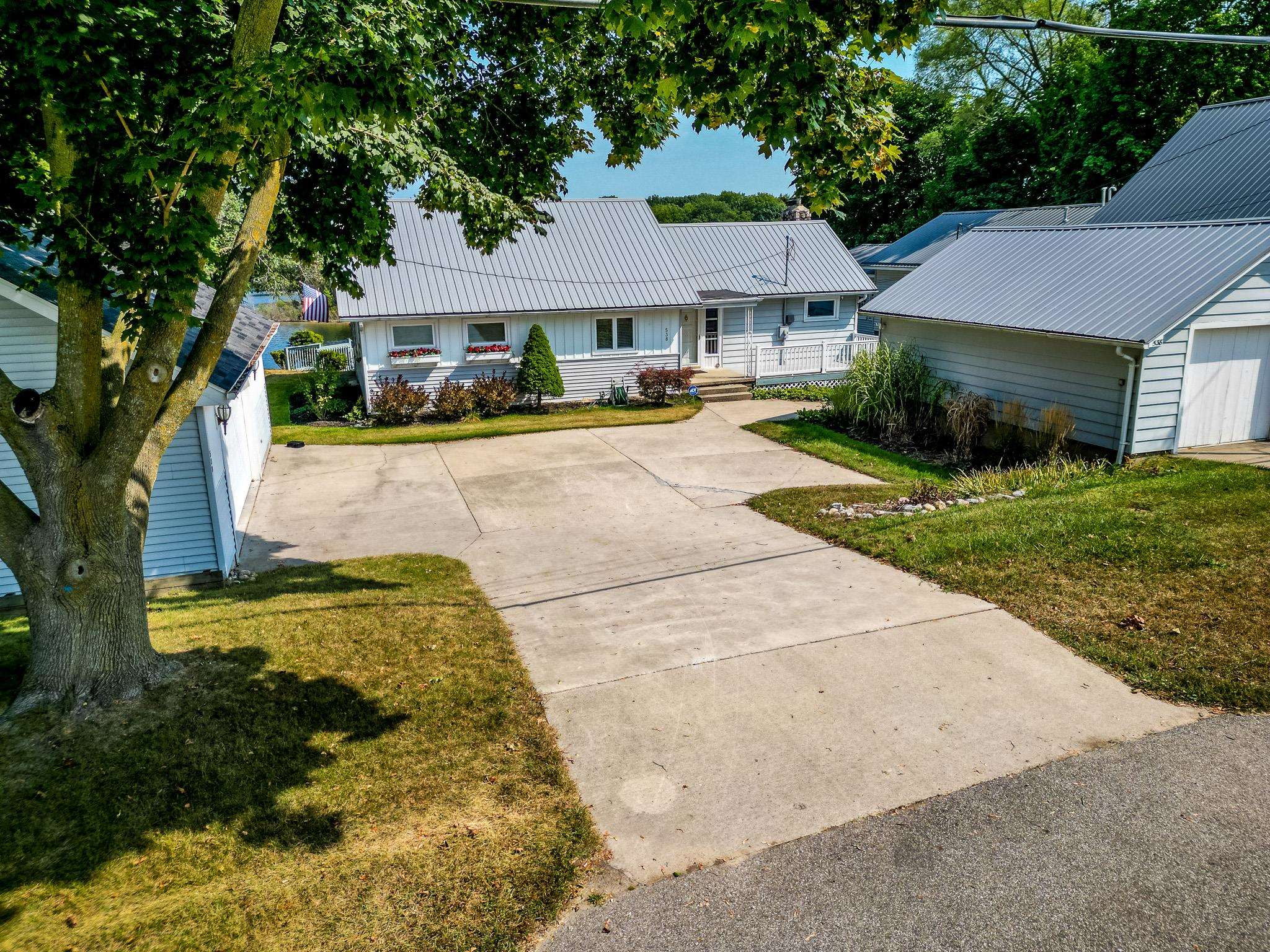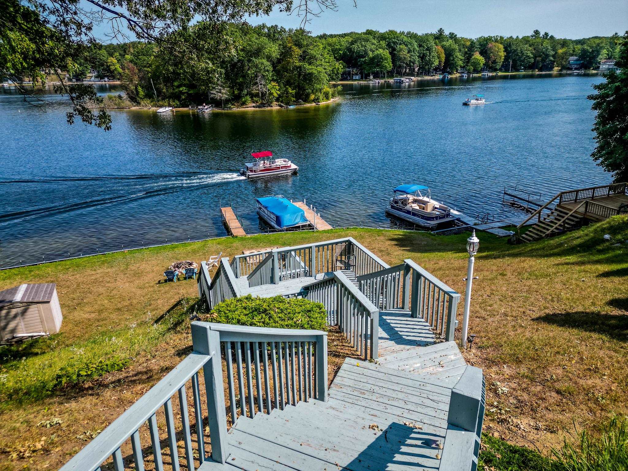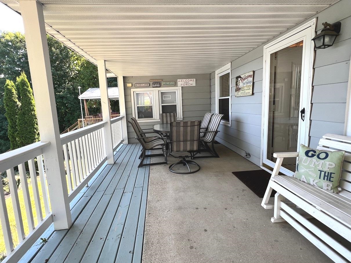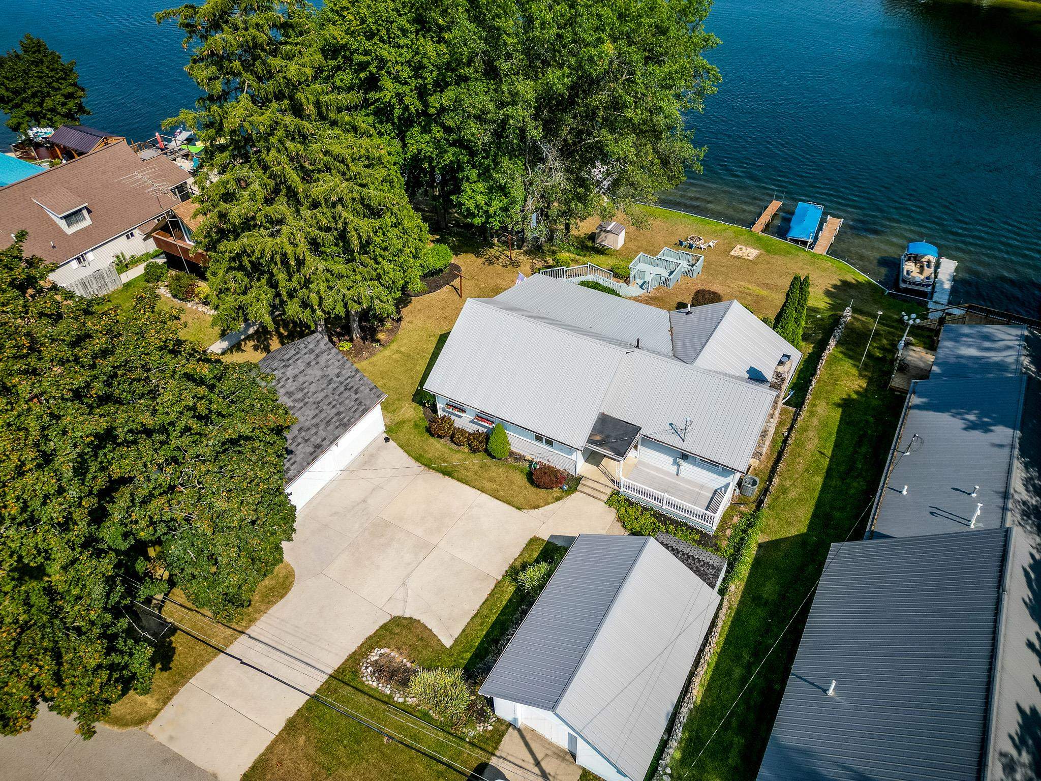 Enjoy 105 feet of prime frontage on all-sports Budd Lake and the lake lifestyle that comes with it. This well-maintained home offers approximately 2,200 sq ft of finished living space designed to take advantage of beautiful lake views and comfortable everyday living. The upper level features a spacious primary bedroom suite along with two guest bedrooms and a full bath. An open-concept kitchen, dining, and living area creates an inviting space for gathering, while the covered porch provides the perfect spot to relax and enjoy the scenery across the water. The lower level expands the living space with a comfortable family room, kitchenette, 3/4 bath, and a dedicated laundry and utility room, making it ideal for guests, extended family, or additional entertaining space. A paved driveway leads to two garages, including a 16 x 20 garage and an additional 24 x 32 garage with second-floor storage, offering excellent space for vehicles, lake toys, and equipment. The home and 16 x 20 garage both received metal roofs in 2015 for added durability and peace of mind. Whether you are boating, fishing, entertaining friends, or simply relaxing by the water, this Budd Lake property offers the perfect place to enjoy lakefront living.