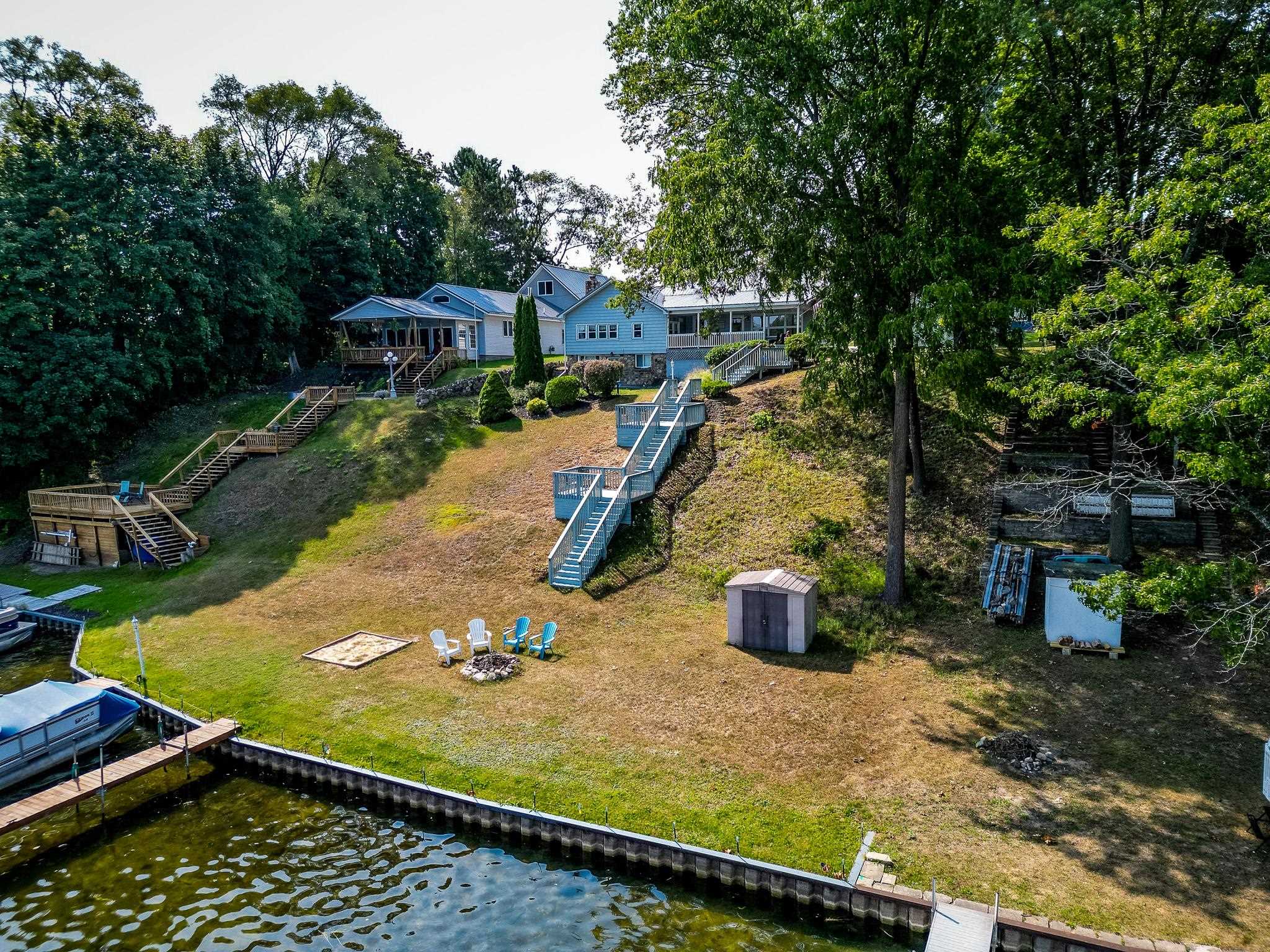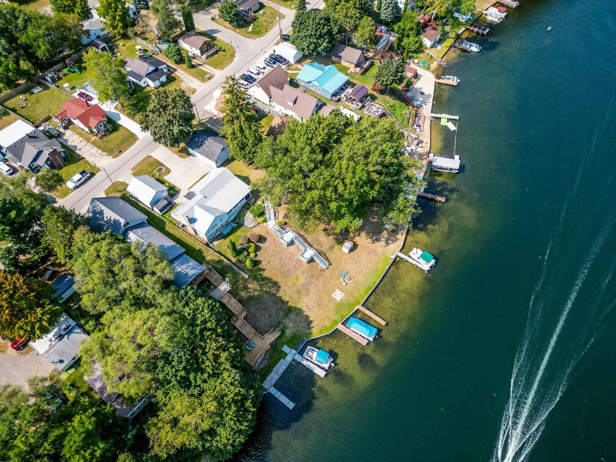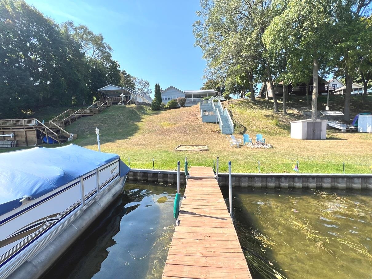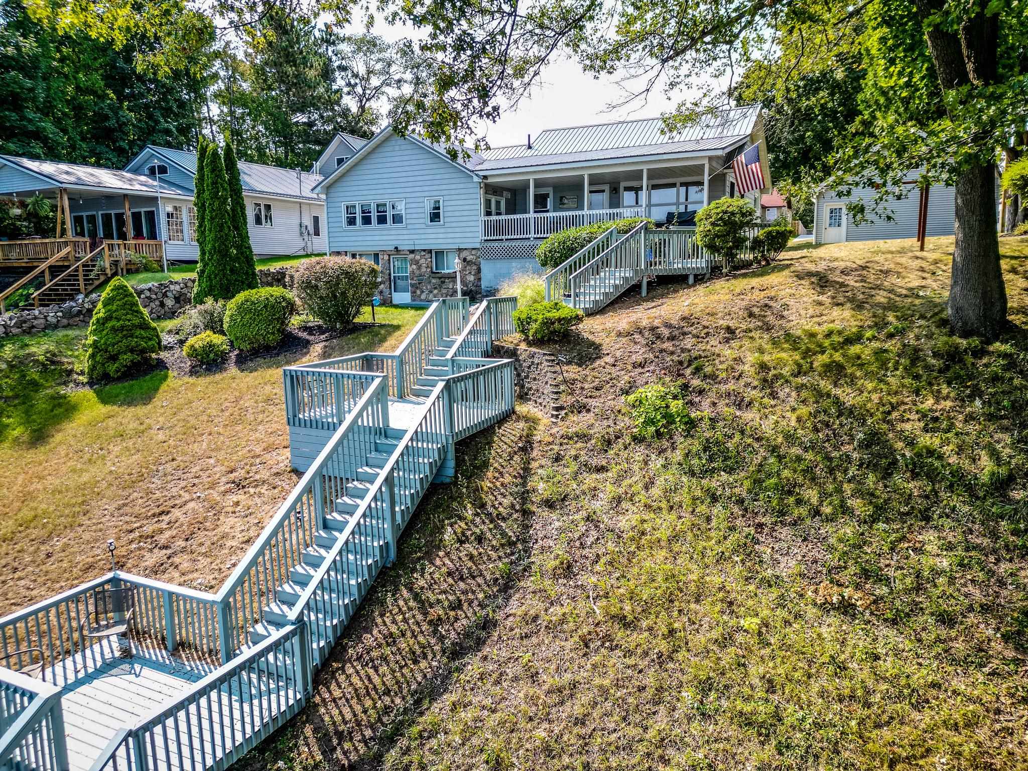 Enjoy 105 feet of prime frontage on all-sports Budd Lake and the lake lifestyle that comes with it. This well-maintained home offers approximately 2,200 sq ft of finished living space designed to take advantage of beautiful lake views and comfortable everyday living. The upper level features a spacious primary bedroom suite along with two guest bedrooms and a full bath. An open-concept kitchen, dining, and living area creates an inviting space for gathering, while the covered porch provides the perfect spot to relax and enjoy the scenery across the water. The lower level expands the living space with a comfortable family room, kitchenette, 3/4 bath, and a dedicated laundry and utility room, making it ideal for guests, extended family, or additional entertaining space. A paved driveway leads to two garages, including a 16 x 20 garage and an additional 24 x 32 garage with second-floor storage, offering excellent space for vehicles, lake toys, and equipment. The home and 16 x 20 garage both received metal roofs in 2015 for added durability and peace of mind. Whether you are boating, fishing, entertaining friends, or simply relaxing by the water, this Budd Lake property offers the perfect place to enjoy lakefront living.