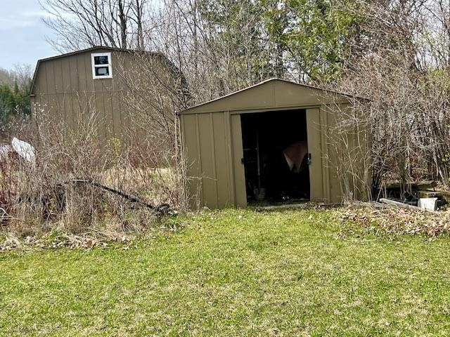 Two lots come with this semi private, cute 2 bedroom 1 bath cabin on peaceful McGilvery Lake. Needs some work but usable and comfy as it is. Located at the end of a dead end street and on a point on the lake. Enjoy watching the swans on the lake or the eagles dropping in for a fish from time to time. Enjoy some sunshine and wildlife while you kayak or paddle boat around the lake and the beautiful sunsets too. Seller may be willing to leave some furnishings and the paddle boat. New well in 2020 and has a few pear trees. Also includes a shed for storage and a bunkhouse for extra sleeping area. Includes two docks, one on each side. Enjoy great views of the lake from all directions and fireworks from many of the owners on the lake.