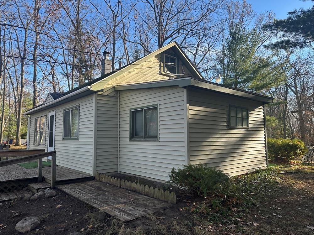 Cute cottage/home with a limited view of Little Long Lake. This one bedroom 1 full bath cottage/home sits on two lots between two paved streets in the City of Harrison. The home is set up to overlook the lake from the living room, dining area and front deck. There is a mud room for entry with plenty of storage space, pull down steps to access the attic from the hallway to sleep extra guests or for more storage, the attic has a floor and windows. There is also a large deck off the living area to enjoy the views. The extra lot gives you room to expand if needed or a space to put up a garage. This is a good property to own and use when you want and for short term rental when you’re not using it.
