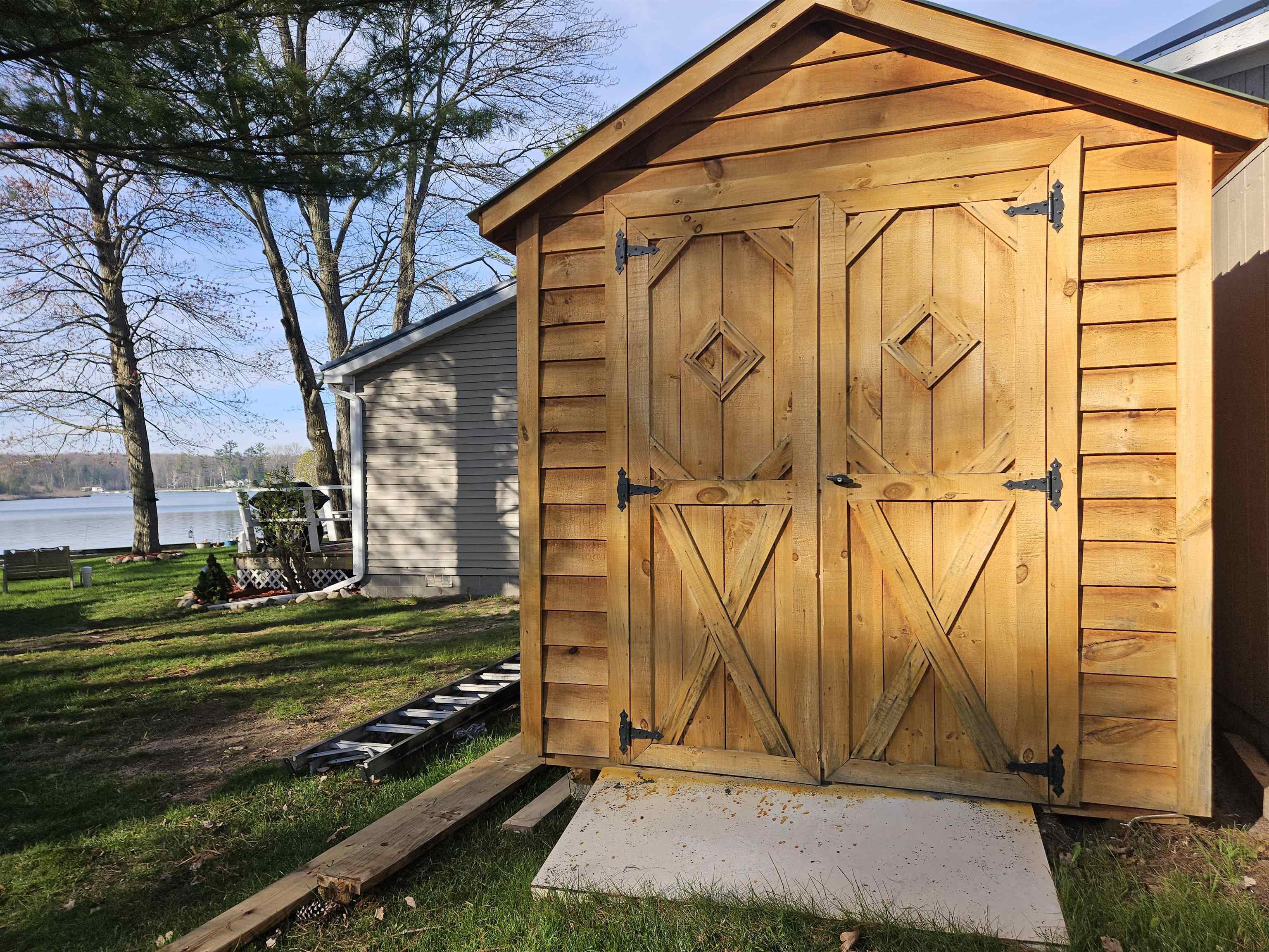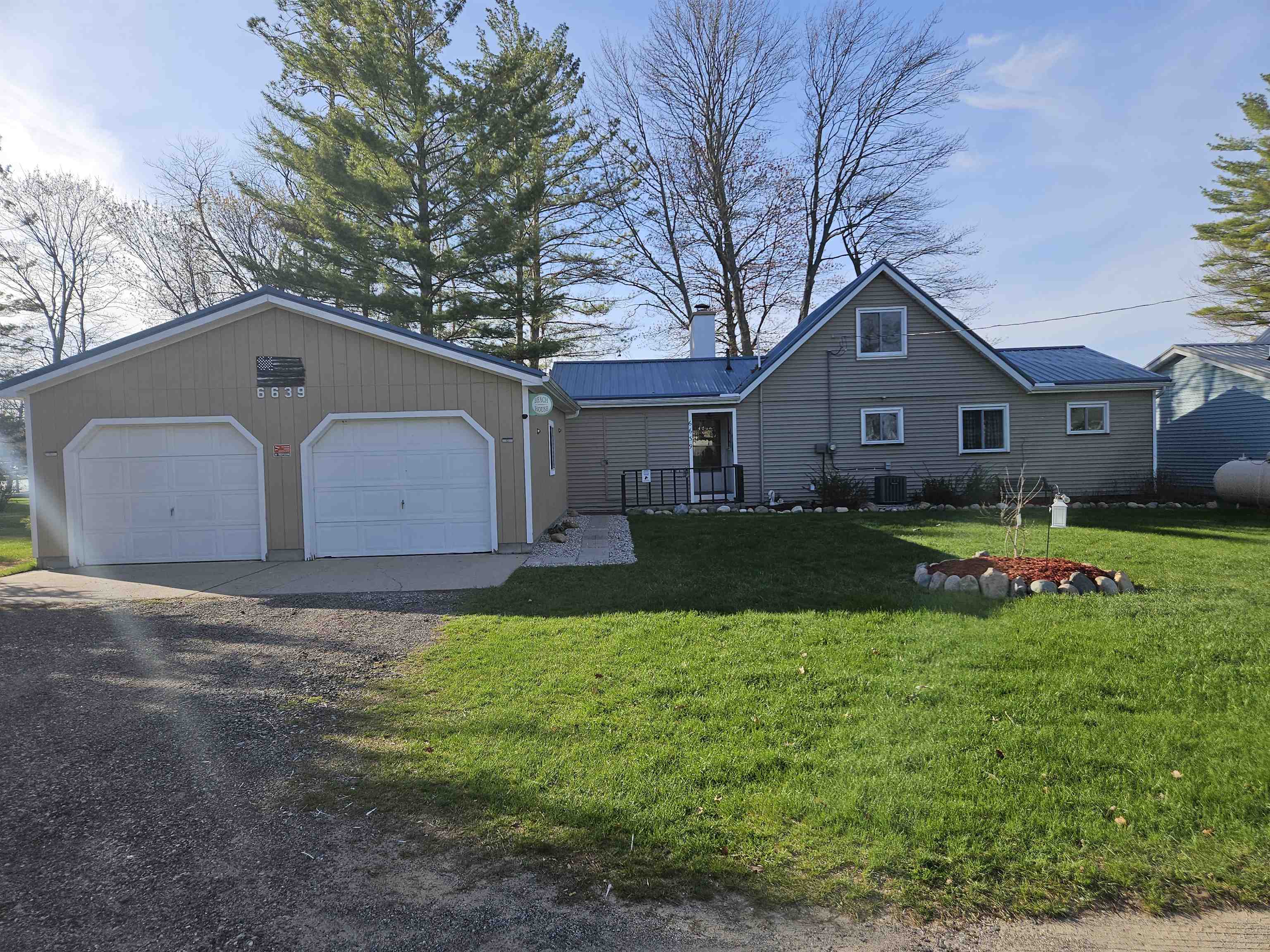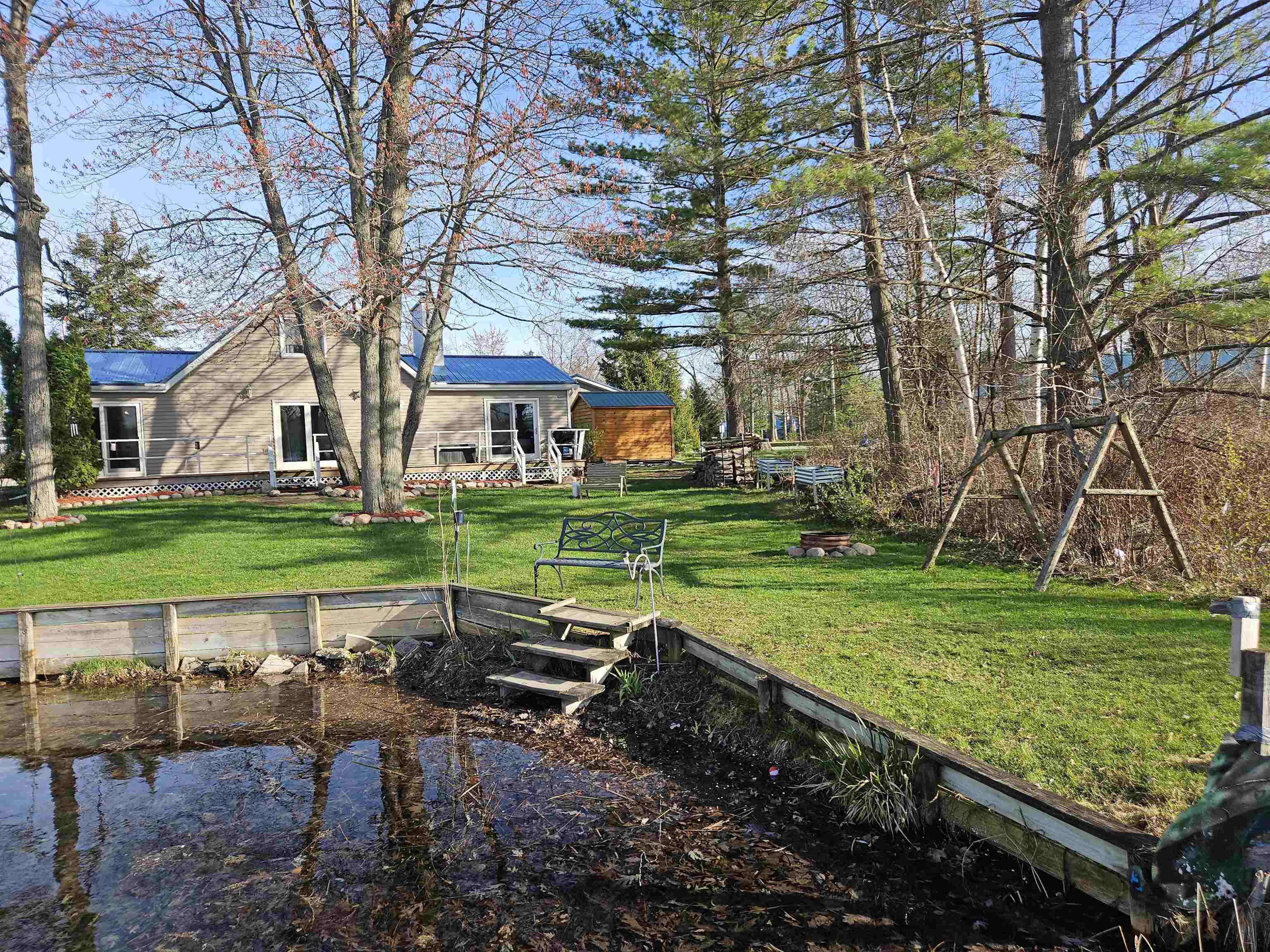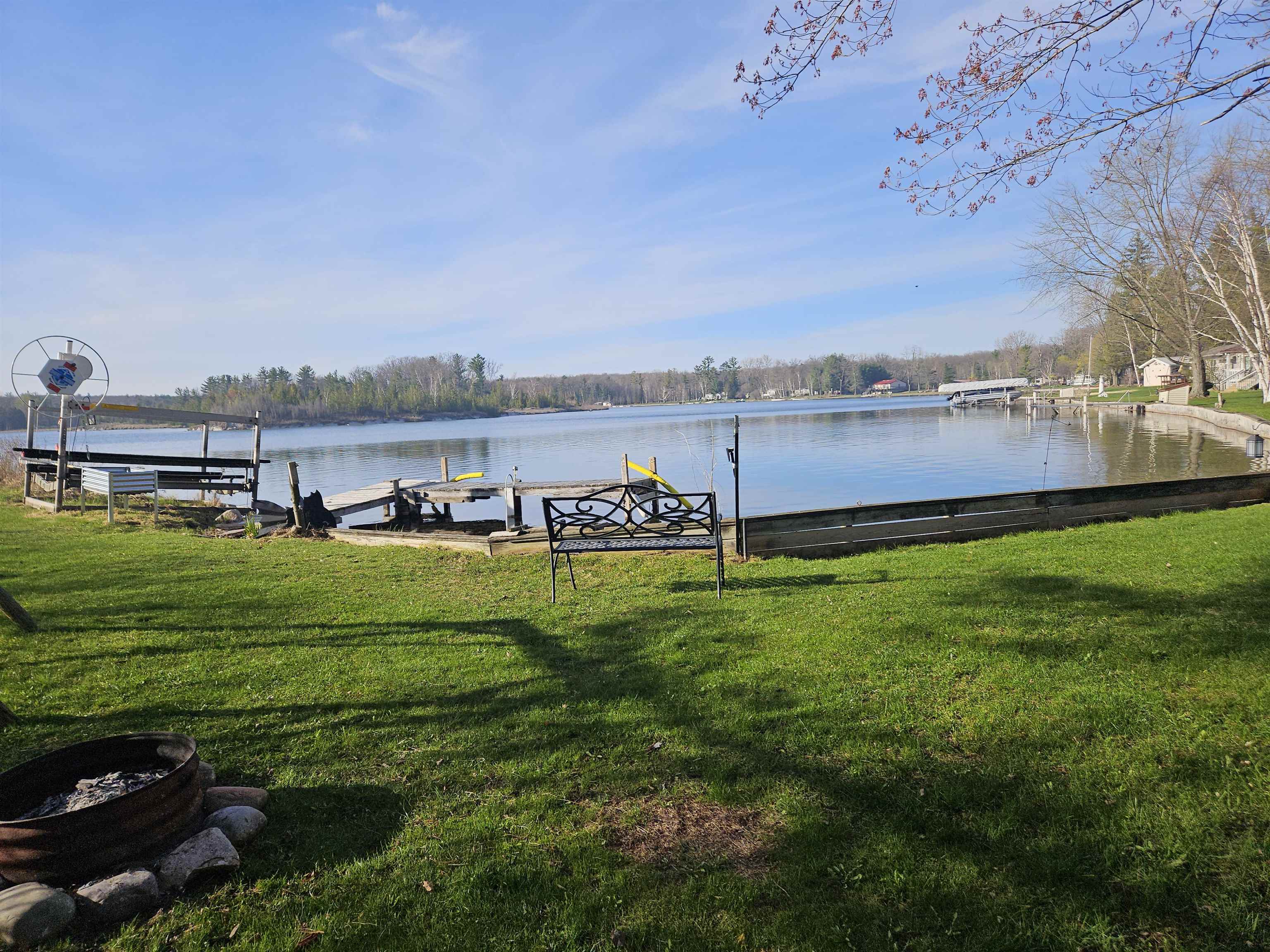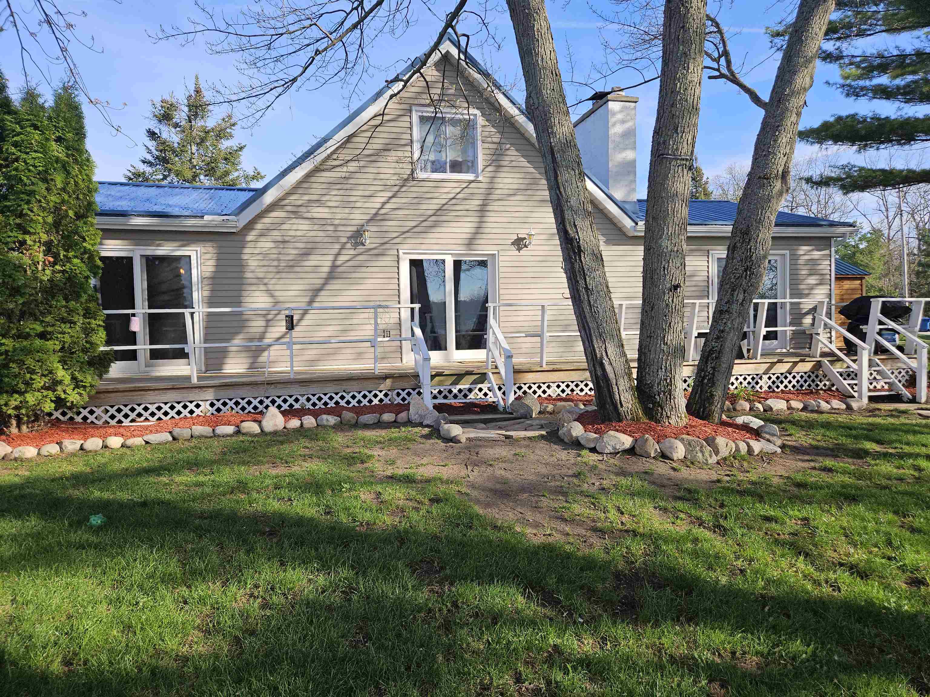 PARADISE ON THE POINT… Looking for a beautiful waterfront property in time for summer? This is it! Updated year round 3 bedroom, 2 bath 1500 square foot chalet.Home features main floor bedroom , spacious living room with fireplace, formal dining and kitchen with breakfast nook. Detached garage and shed for storage. Updated items in last 3 years include steel roof, gutters, siding, vinyl windows,98% high efficiency furnace, central air, water heater,hardwood in master bedroom, heatilator in fireplace , carpet upstairs and survey. New updates in 2026 include hard surface flooring in kitchen, dining and living room , kitchen remodel with handcrafted countertops, landscaping and fresh paint. Wonderful sandy swimming, fishing from the point or from dock. All the work is done, so you can enjoy many years of enjoyment!