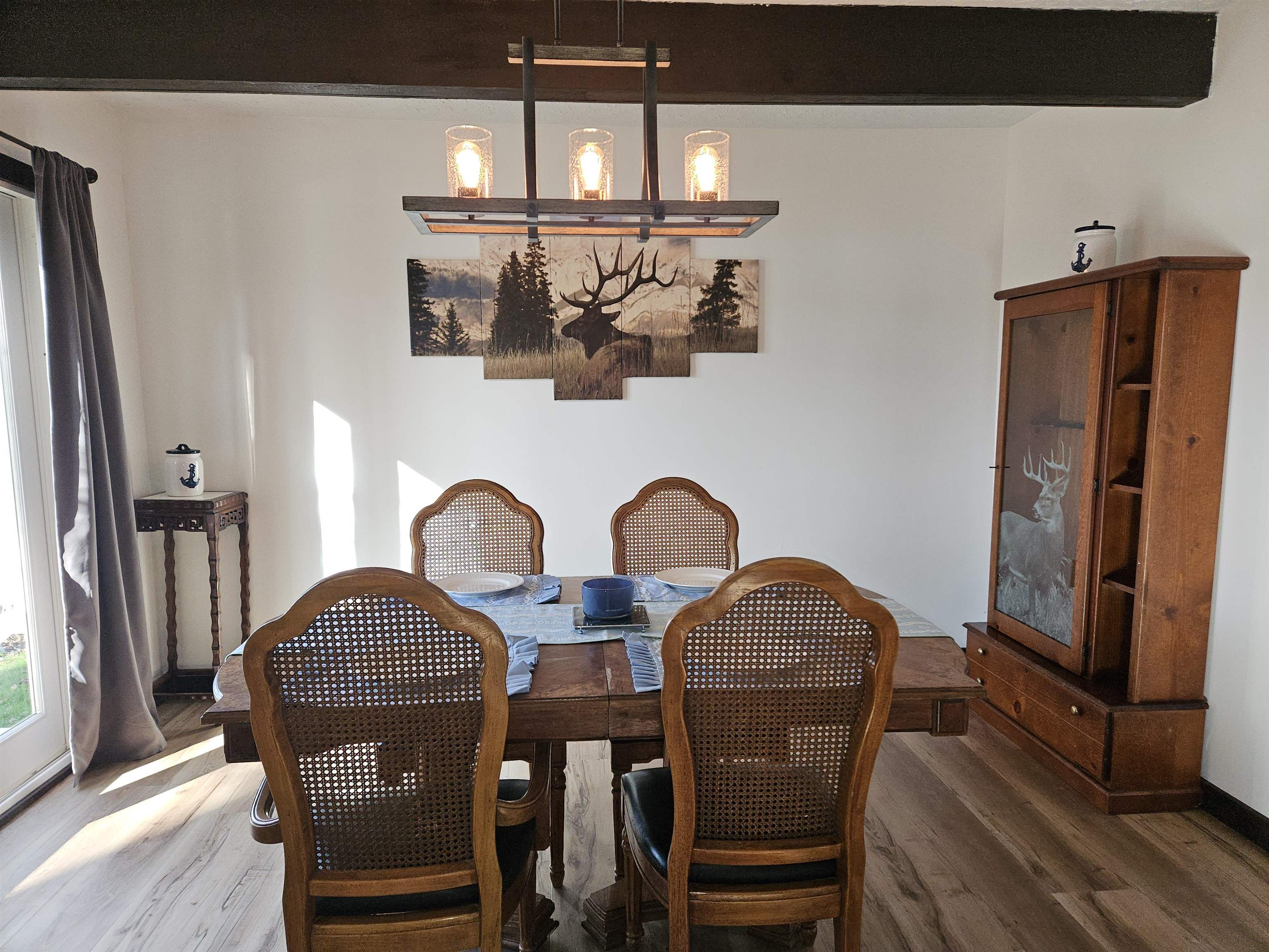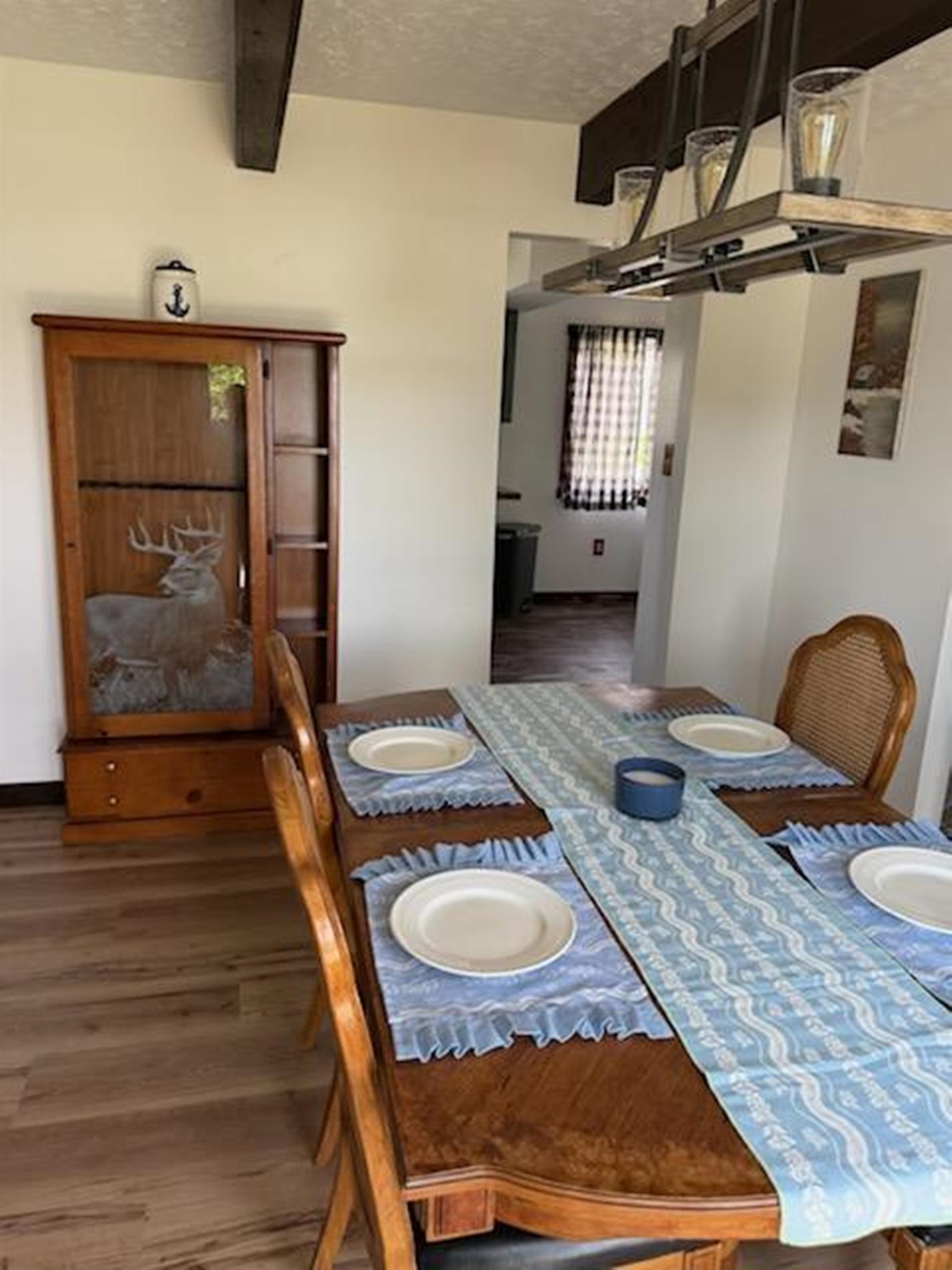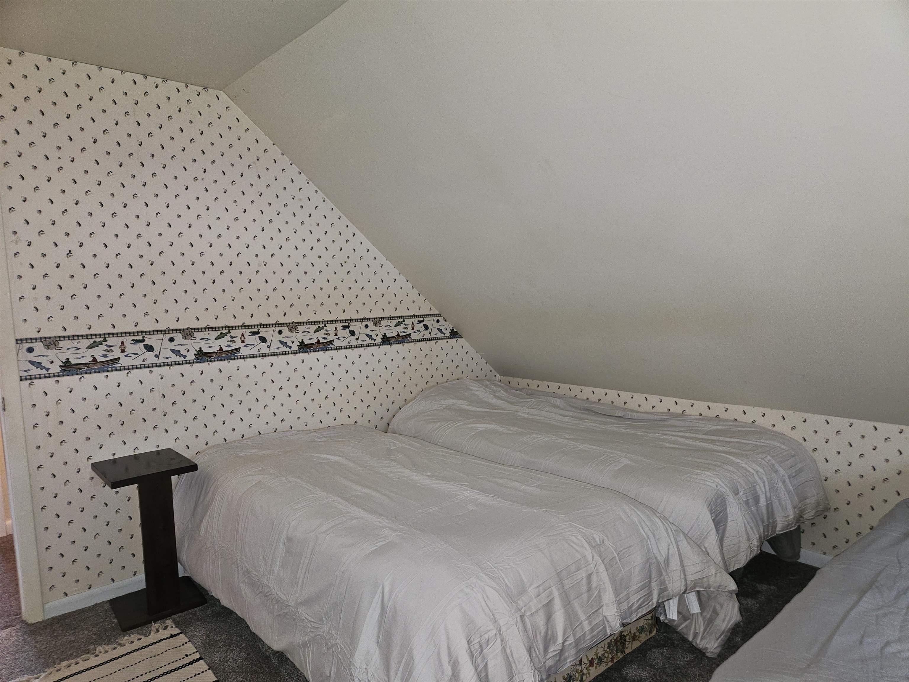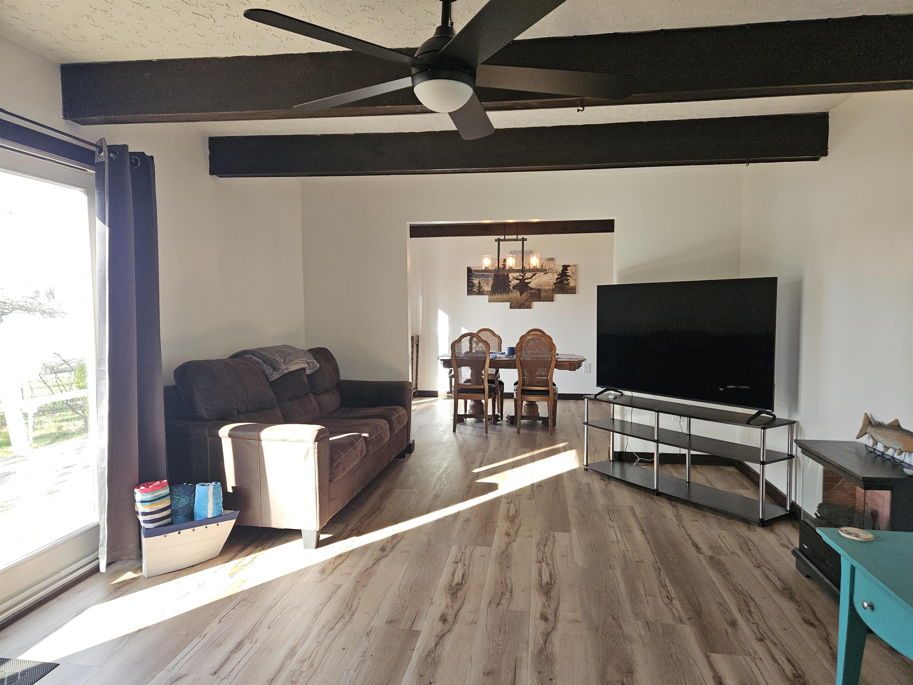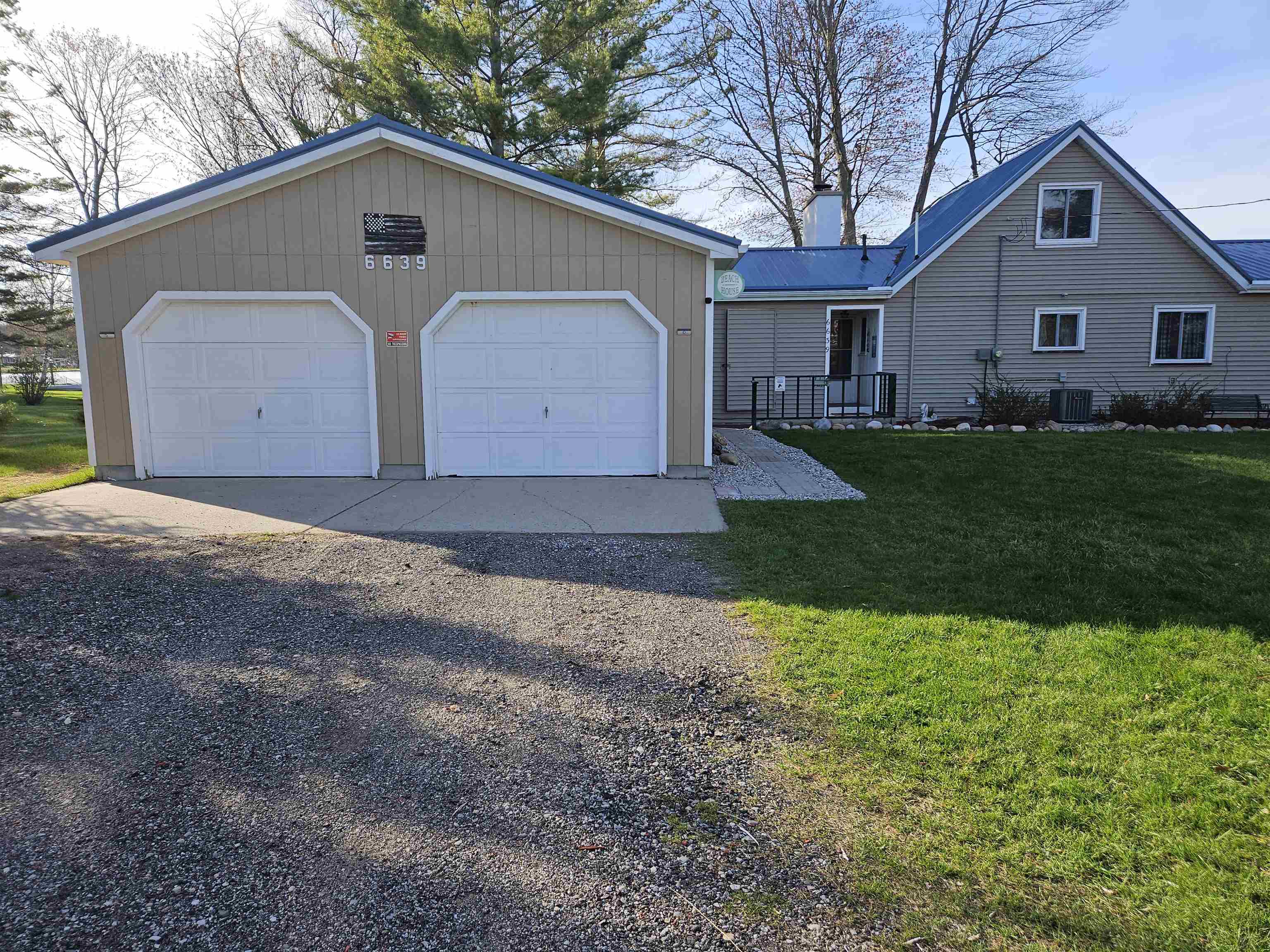 PARADISE ON THE POINT… Looking for a beautiful waterfront property in time for summer? This is it! Updated year round 3 bedroom, 2 bath 1500 square foot chalet.Home features main floor bedroom , spacious living room with fireplace, formal dining and kitchen with breakfast nook. Detached garage and shed for storage. Updated items in last 3 years include steel roof, gutters, siding, vinyl windows,98% high efficiency furnace, central air, water heater,hardwood in master bedroom, heatilator in fireplace , carpet upstairs and survey. New updates in 2026 include hard surface flooring in kitchen, dining and living room , kitchen remodel with handcrafted countertops, landscaping and fresh paint. Wonderful sandy swimming, fishing from the point or from dock. All the work is done, so you can enjoy many years of enjoyment!