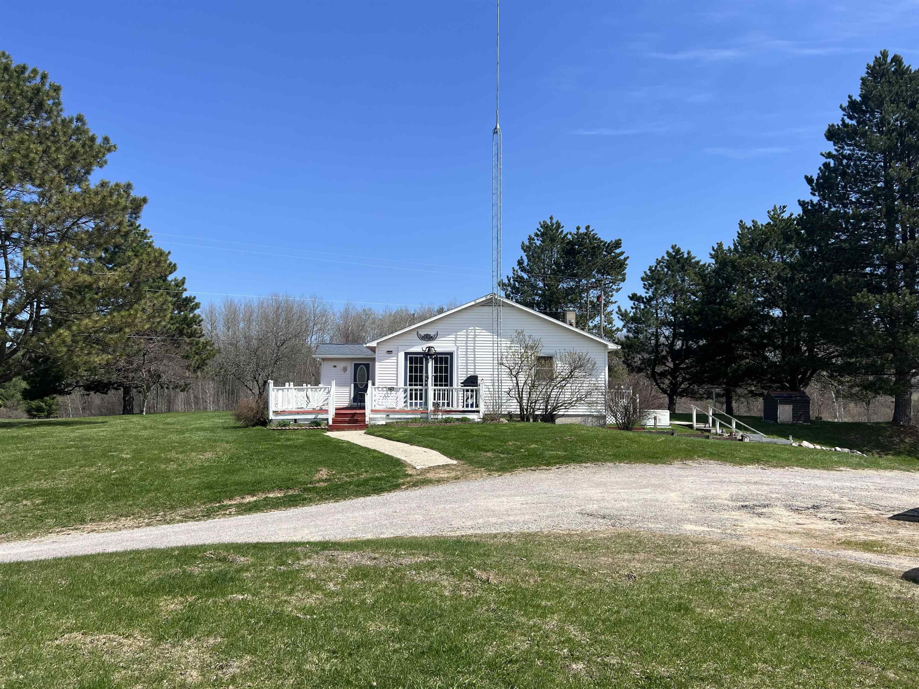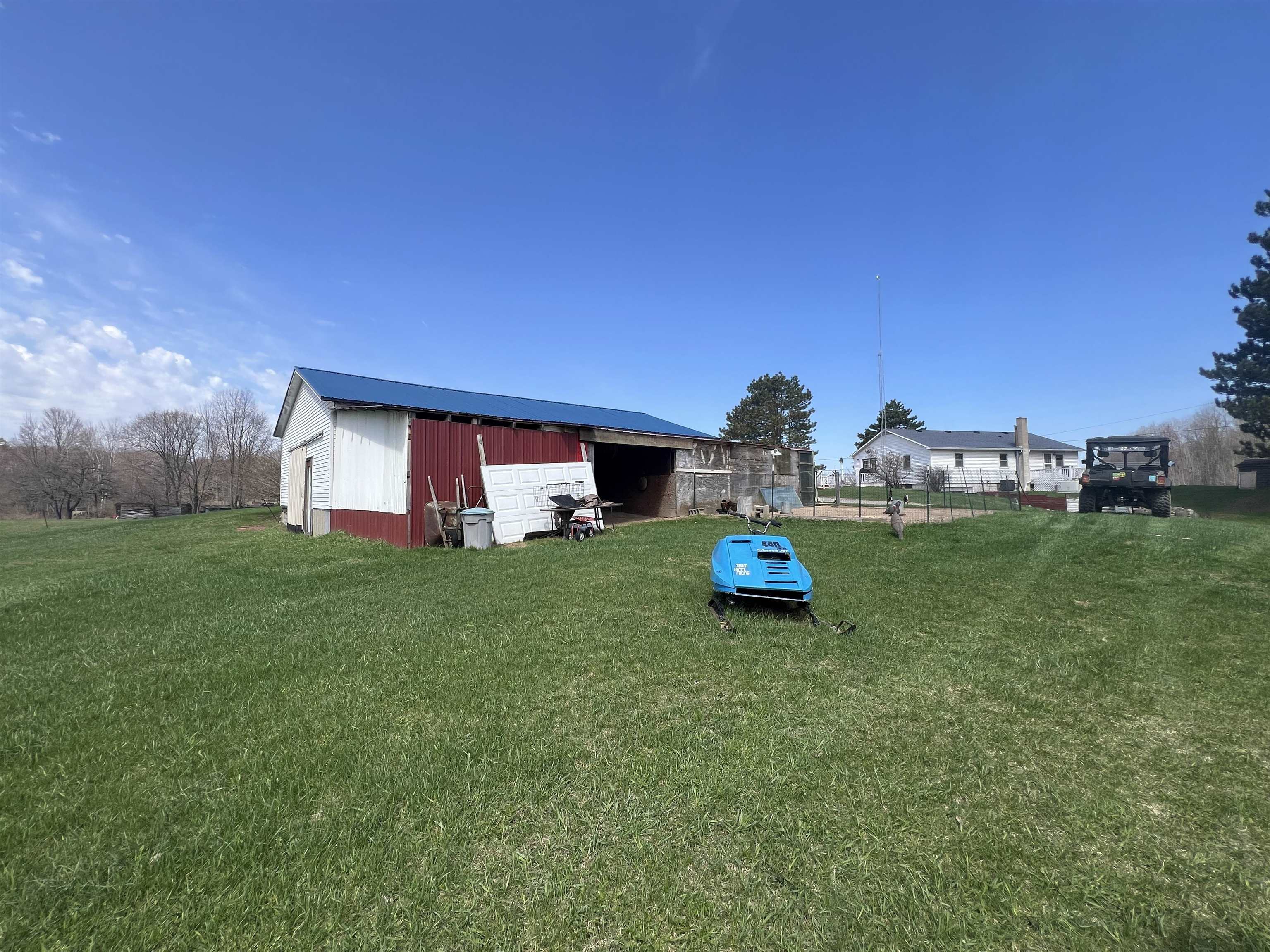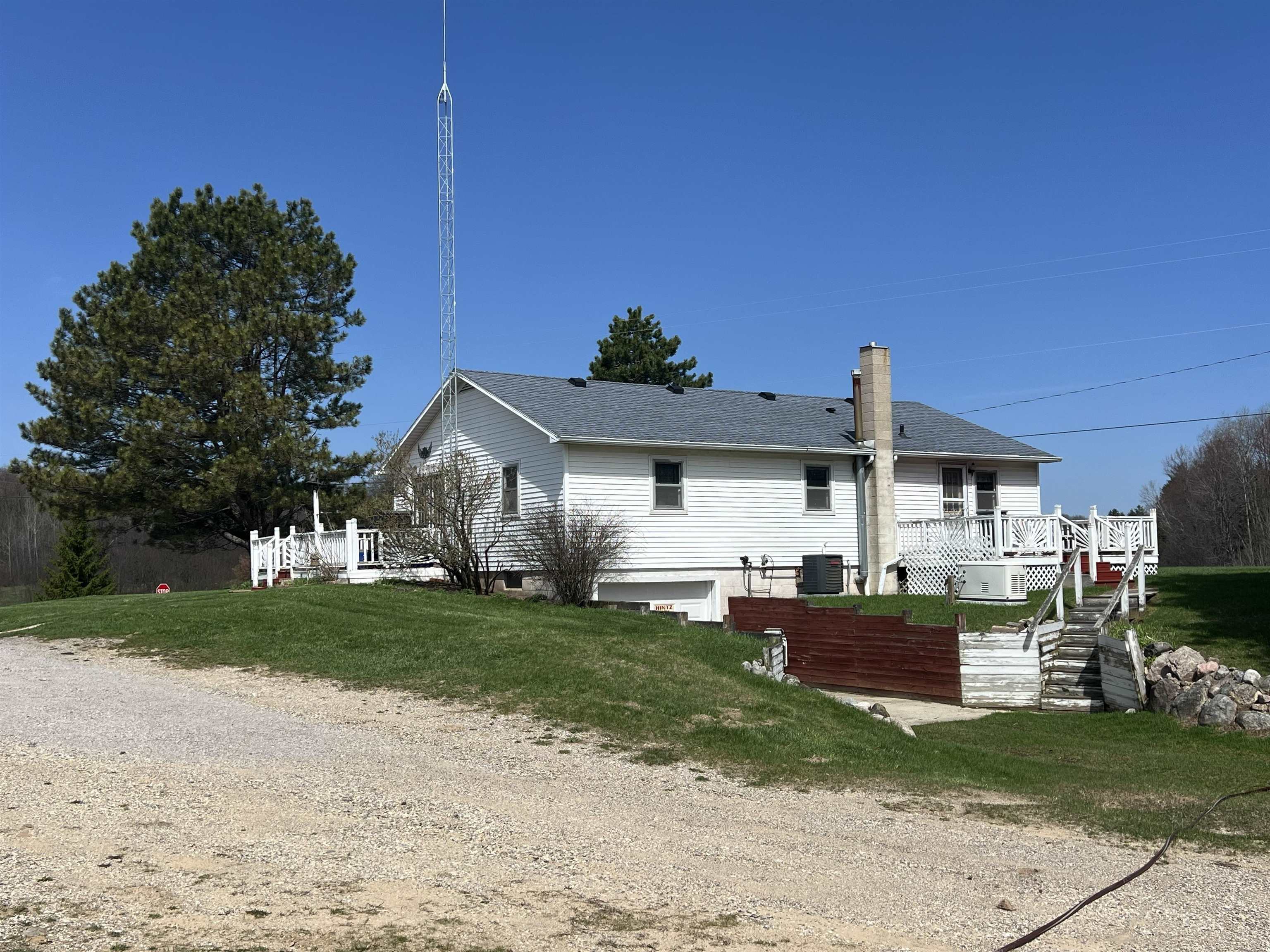 Set on 15 beautiful acres (taxed as 13.9 due to road right-of-way), this hilltop country retreat offers space, privacy, and endless possibility. The charming 2-bedroom home welcomes you with a spacious eat-in kitchen, a light-filled living room, and countryside views from the deck that make every season enjoyable. A full walkout basement includes 1-car garage providing excellent storage and functionality. Perfect for hobby farming, recreational use, or simply embracing wide-open space, the property also features an impressive 26×42 detached garage ideal for equipment, workshop space, or potential livestock shelter. Major improvements offer peace of mind, including 200-amp electric service with a 22KW Generac generator, new well pump motor and bladder, rebuilt well house, septic pumped in 2021, new furnace in 2022, and freshly painted living areas and decks. Situated on a paved corner for easy year-round access, this property is ready for your next chapter in country living.