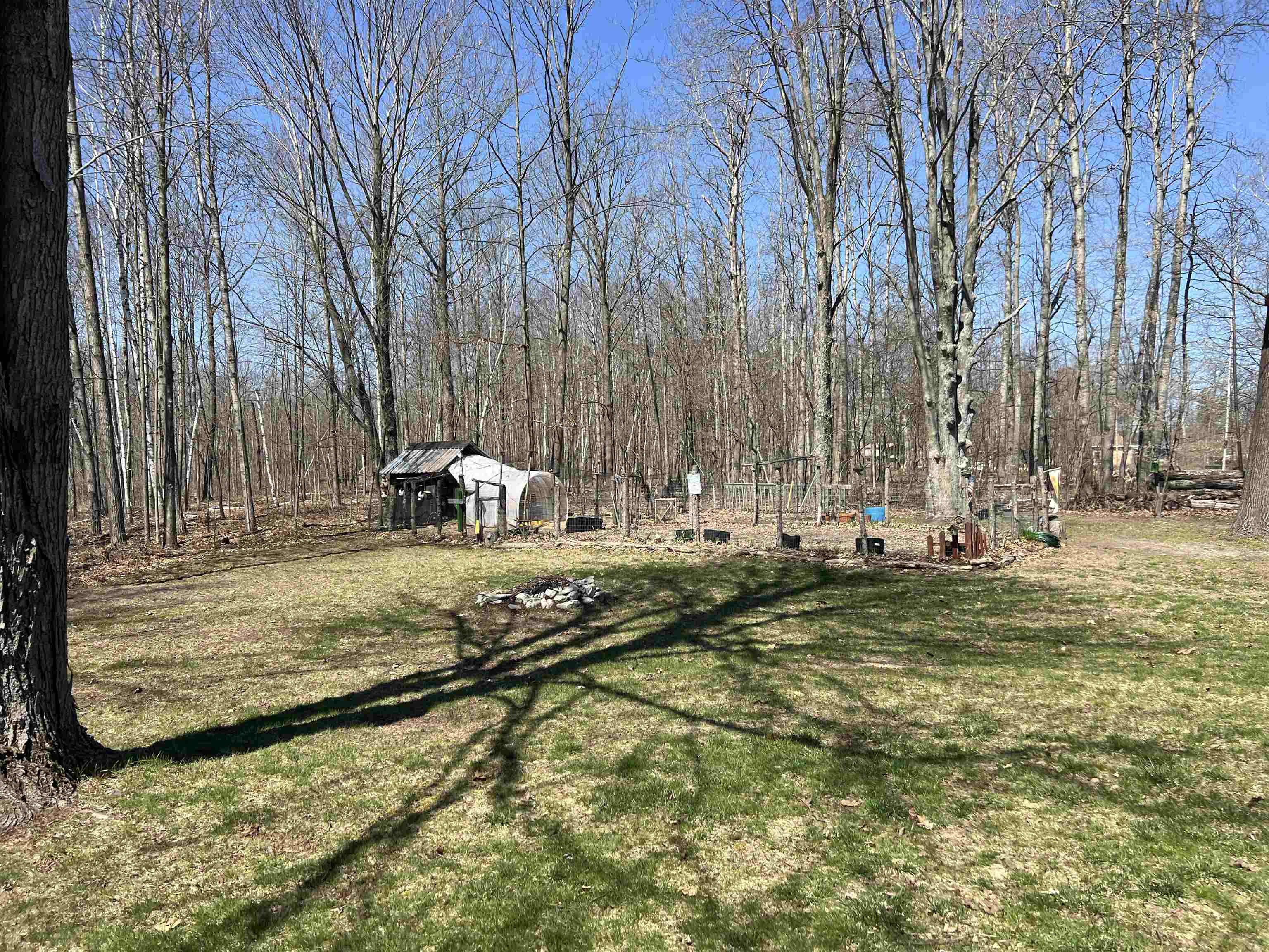 Beautiful Home with a oversized pond and over 24 acres with attached 2 car garage plus detached garage, also enclosed portable carport for the toys, hunting blind, fenced chicken coop area. Newer Asphalt Roof in approximately 2025 on home and garage. Newer Well, hot water tank. Plus water softener, 2 ventless propane heaters if electric goes out. Land is cleared around the home, pond and detached garages, majority of the acreage is still wooded. Great hunting ground or just enjoy the serenity. Home has large living area plus main bedroom has bath with full size walk-in shower. Large hallways, foyer and walk in shower make it easily accessible. Cedar closets. Enclosed porch does not have heat and is not included in finished square footage. Full basement has plenty area to grow! Basement has interior access. Appliances include new stove and refrigerator just purchased in 2025 plus washer, dryer, water softener, wood burning stove in detached garage. Great for the outdoorsman, hunter, fisherman and outdoor enthusiast. 4 Driveways to enter property. Sale to include 2 parcels. Wait no longer, make this home yours today! No Lake Assessment!