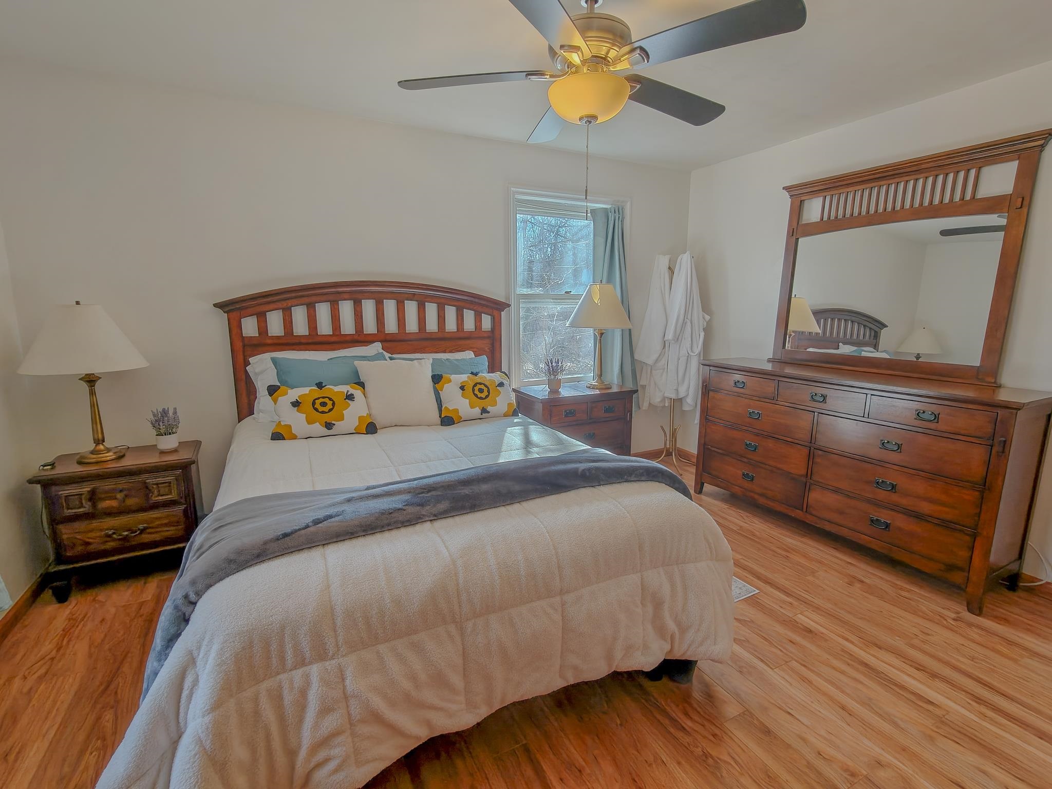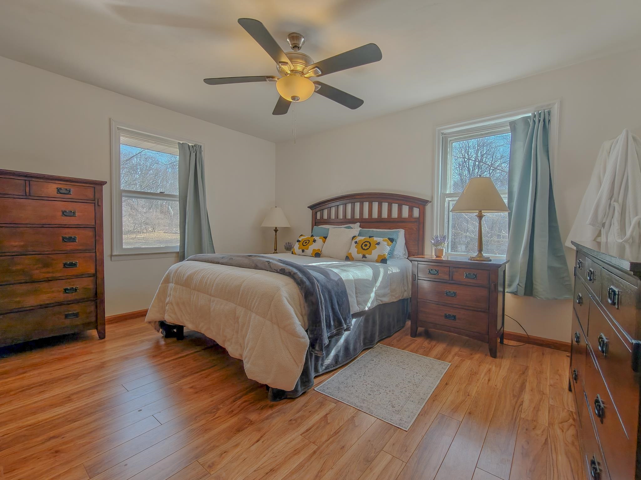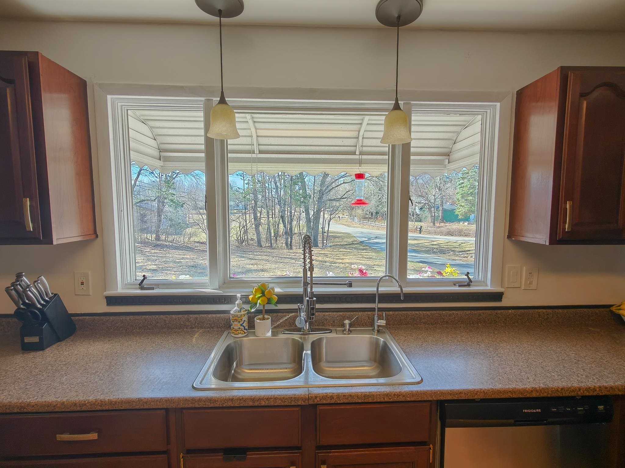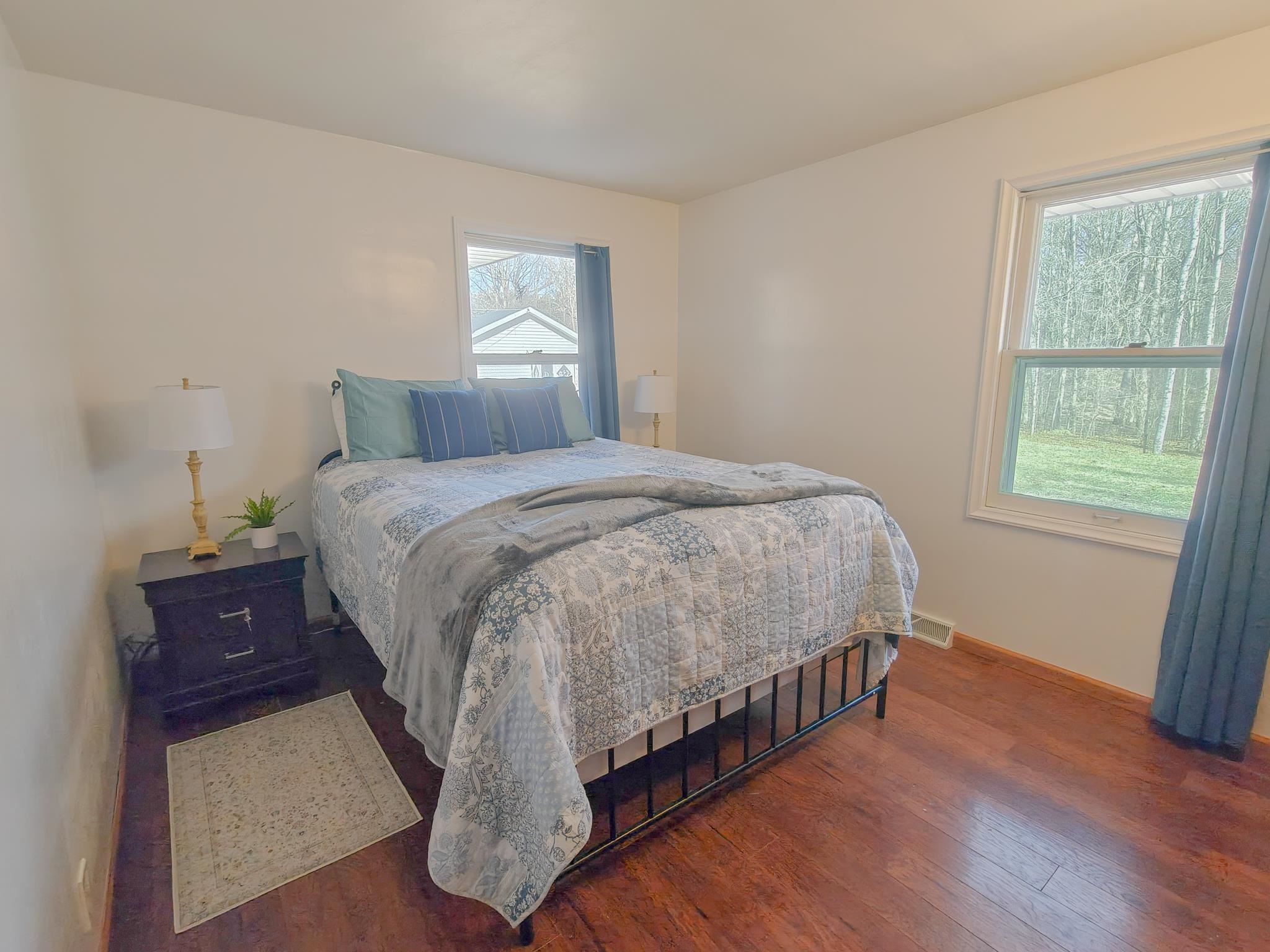 Just tucked outside the City of Harrison, this move-in ready 3-bedroom home offers a rare combination of privacy, acreage, and convenient access to town. Set on approximately 1.80 acres, the property features large front and back yards, with trees lining the boundaries to provide a peaceful setting. Well maintained and beautifully updated, the home offers a large kitchen with cherry cabinets, updated appliances that are included in the sale, and plenty of cabinet space. Architectural details such as arched doorways add timeless charm, while two wood-burning fireplaces, located in the entry and the main living room, create a warm and inviting atmosphere. Of the three bedrooms is a large 11 x 14 primary bedroom with its own private half bathroom. The unfinished walkout basement provides approximately 1,000 additional square feet, offering excellent potential for future living space, or space for storage. Located near Budd Lake, Wilson State Park, and the Harrison Sportsman Club, this property allows easy access to the outdoor recreation the area is known for. Harrison is widely recognized for its “20 Lakes in 20 Minutes” motto, making it a desirable destination for year-round enjoyment.