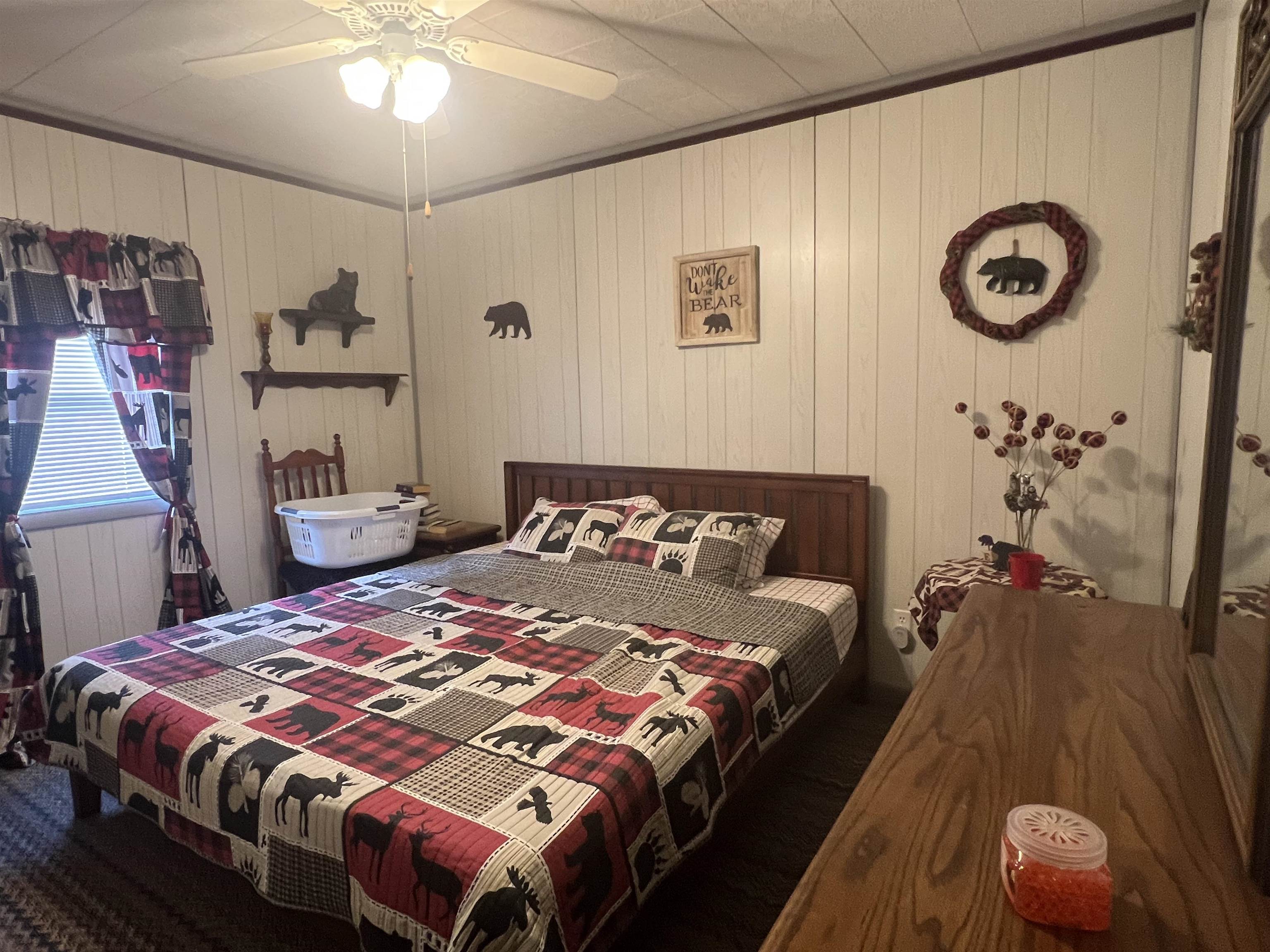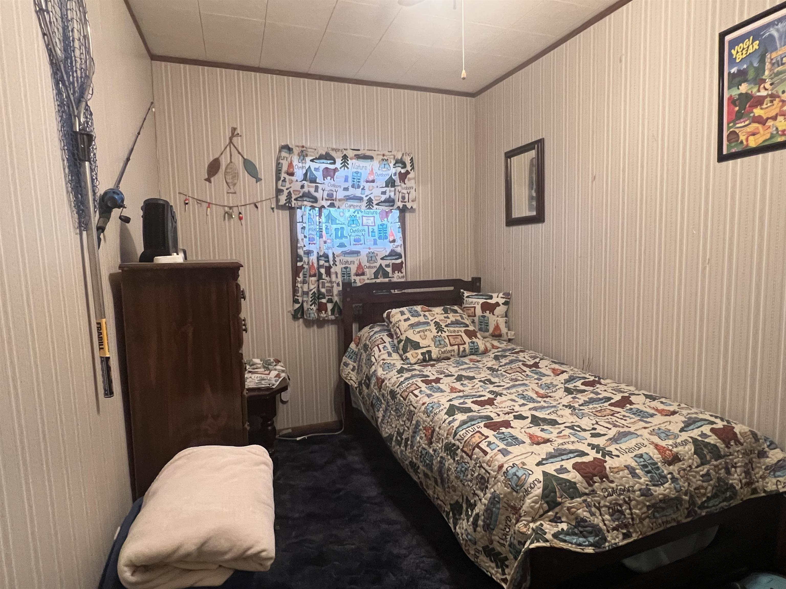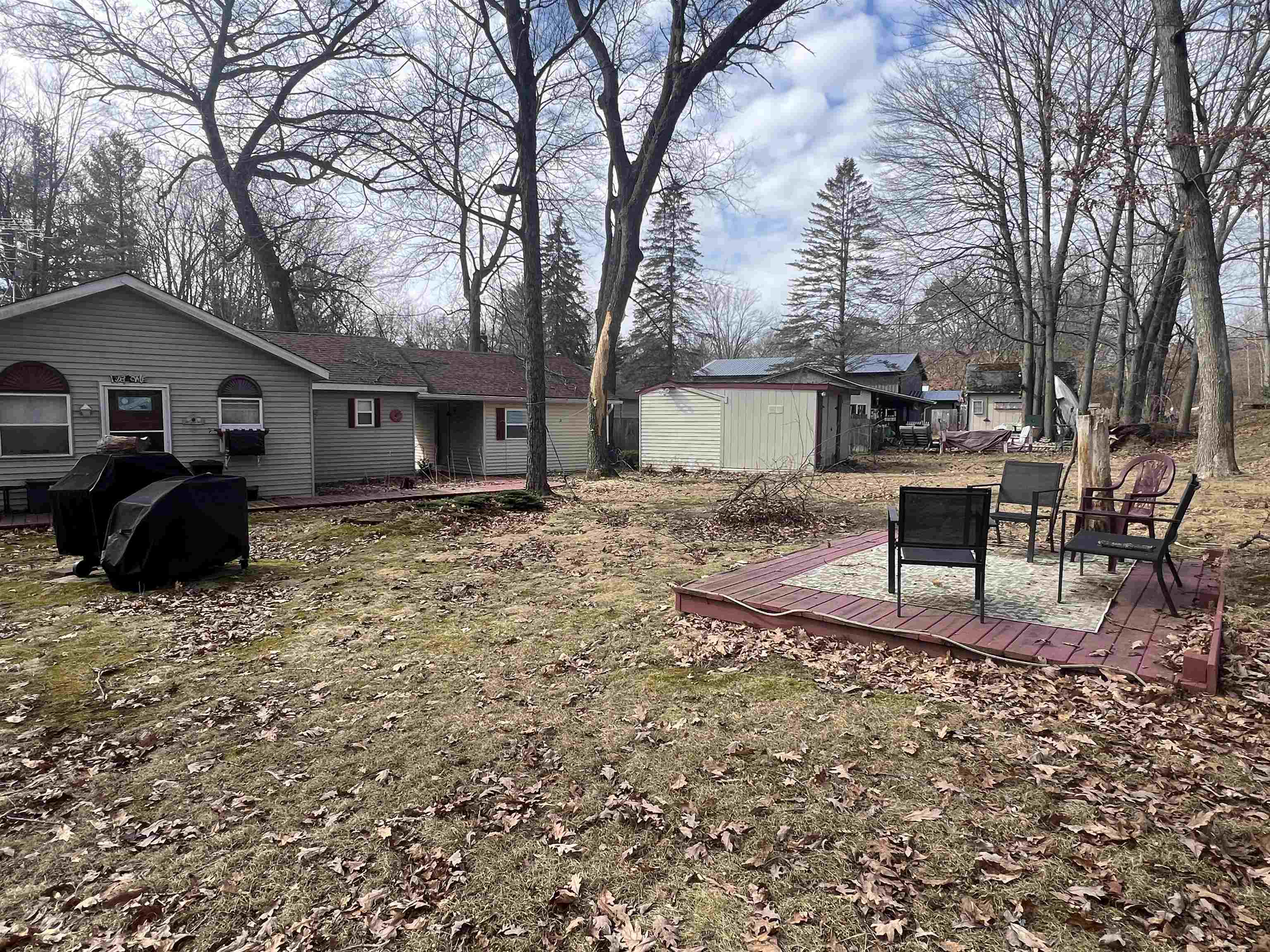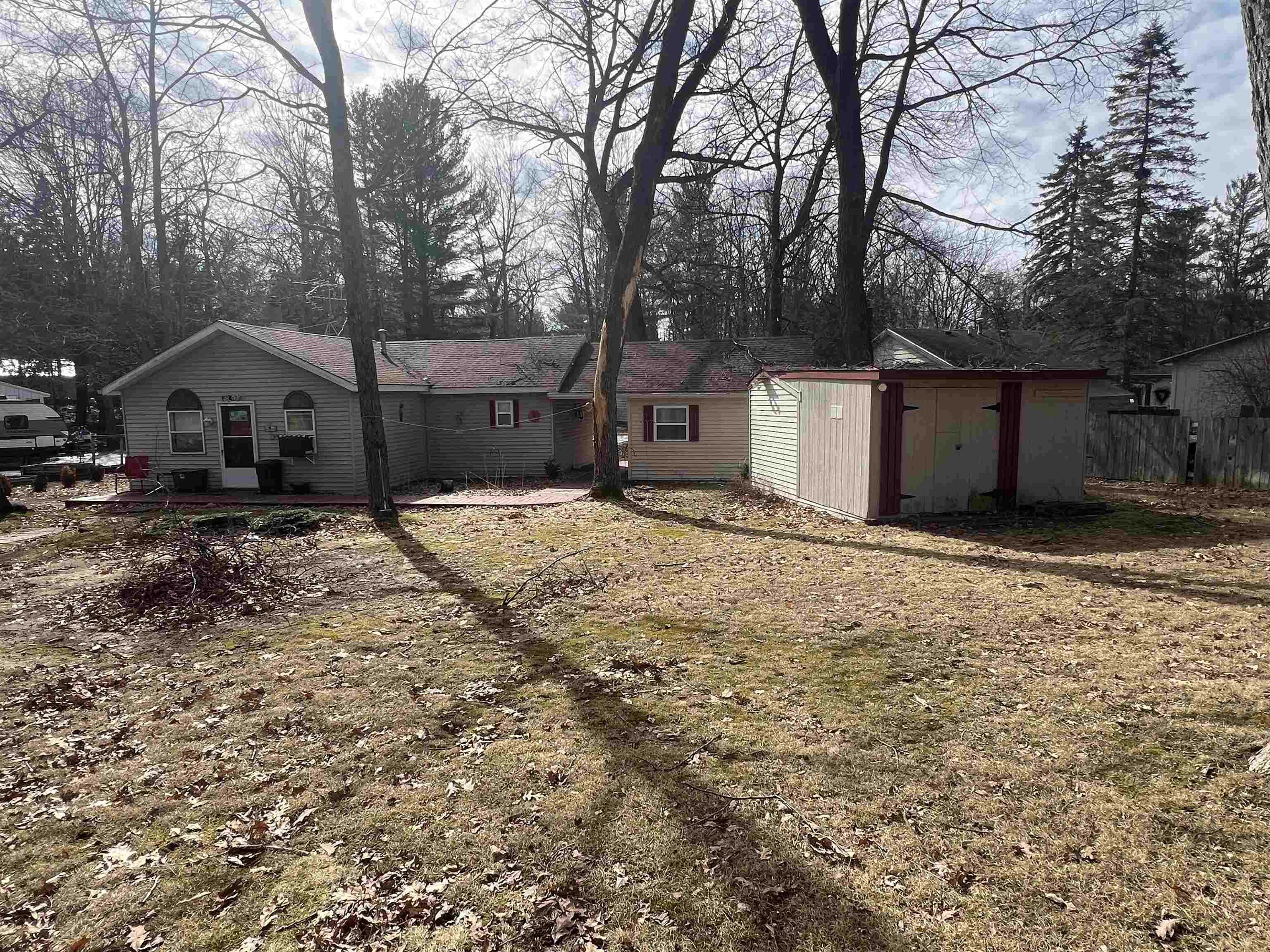 Cozy, comfortable, and close to the lake. This charming 3-bedroom, 1-bath home offers 832 sq ft of inviting living space in a quiet neighborhood just a short walk from the shores of all-sports Lake George. The eat-in kitchen features newer flooring, while the living room centers around a natural wood-burning fireplace that adds warmth and character. Ceiling fans, a window A/C unit, and natural gas forced air heat help keep the home comfortable year-round. A finished 270 sq ft bunk room provides great extra space for guests, hobbies, or a home office. Outside, relax or entertain on the 14 x 14 deck, with a 12 x 16 shed providing convenient storage. Recent updates include a new roof and hot water tank in 2020. With nearby park access to Lake George for boating, fishing, and lakeside enjoyment, this property offers the perfect Up North getaway or year-round home.