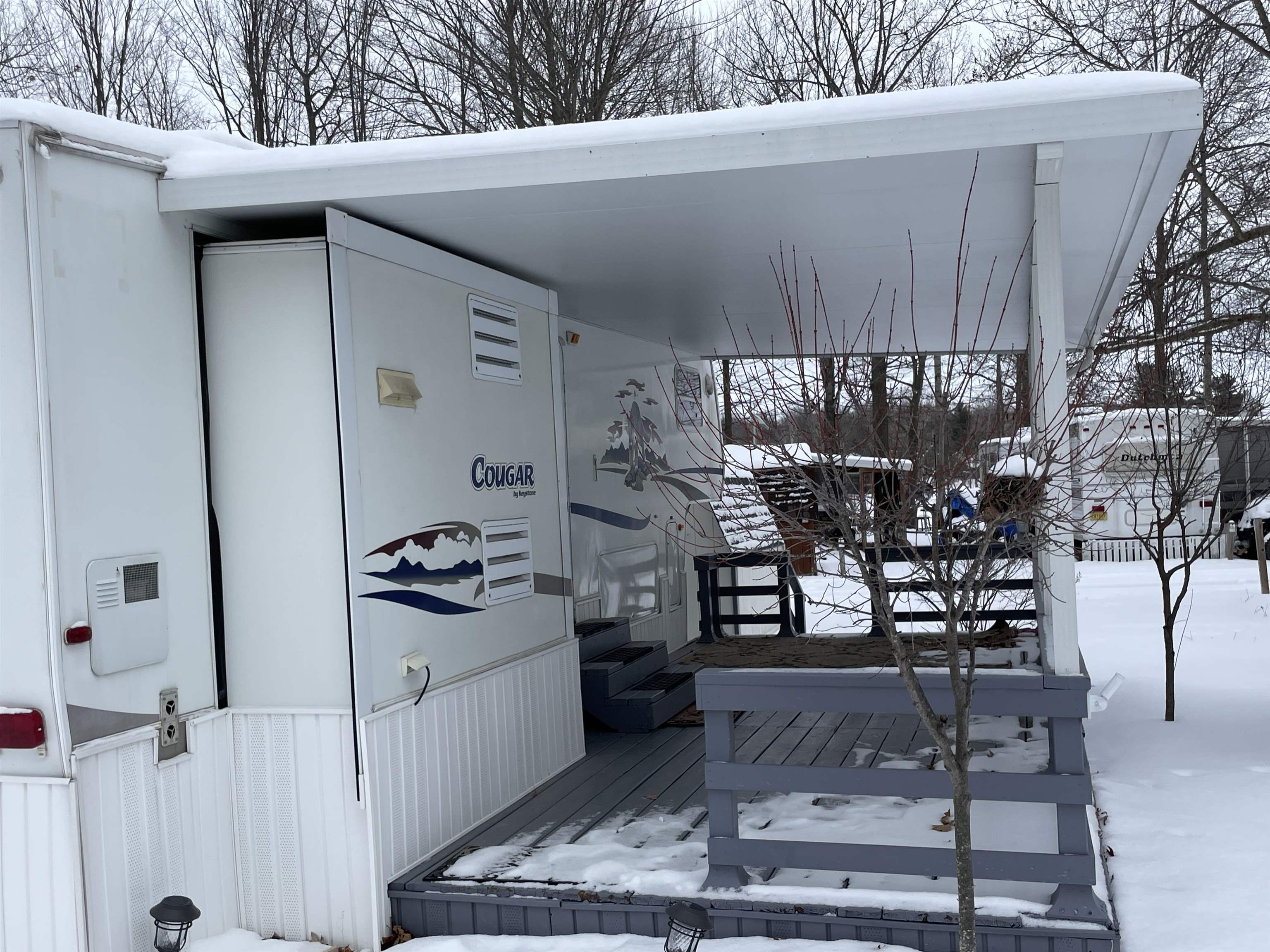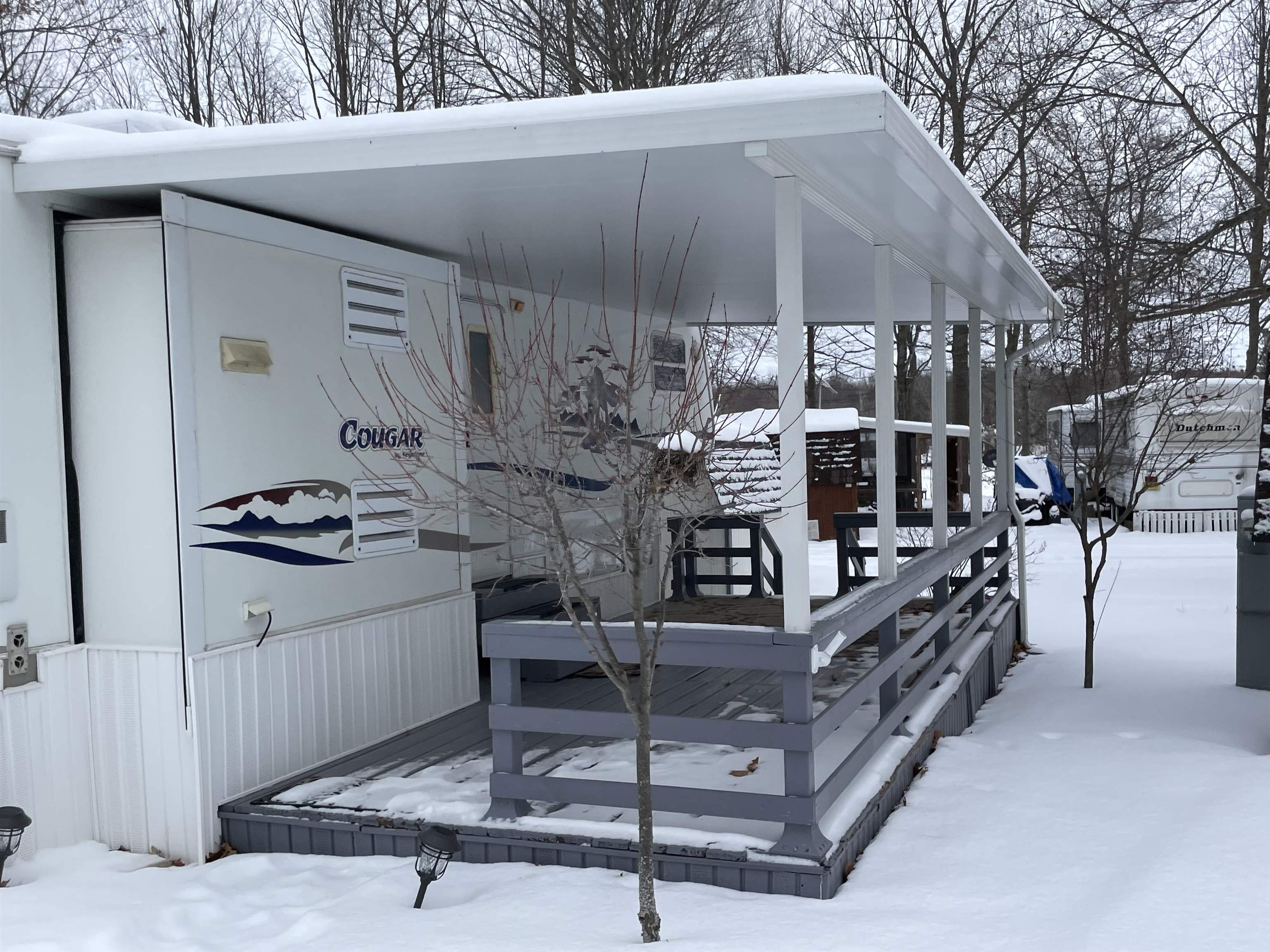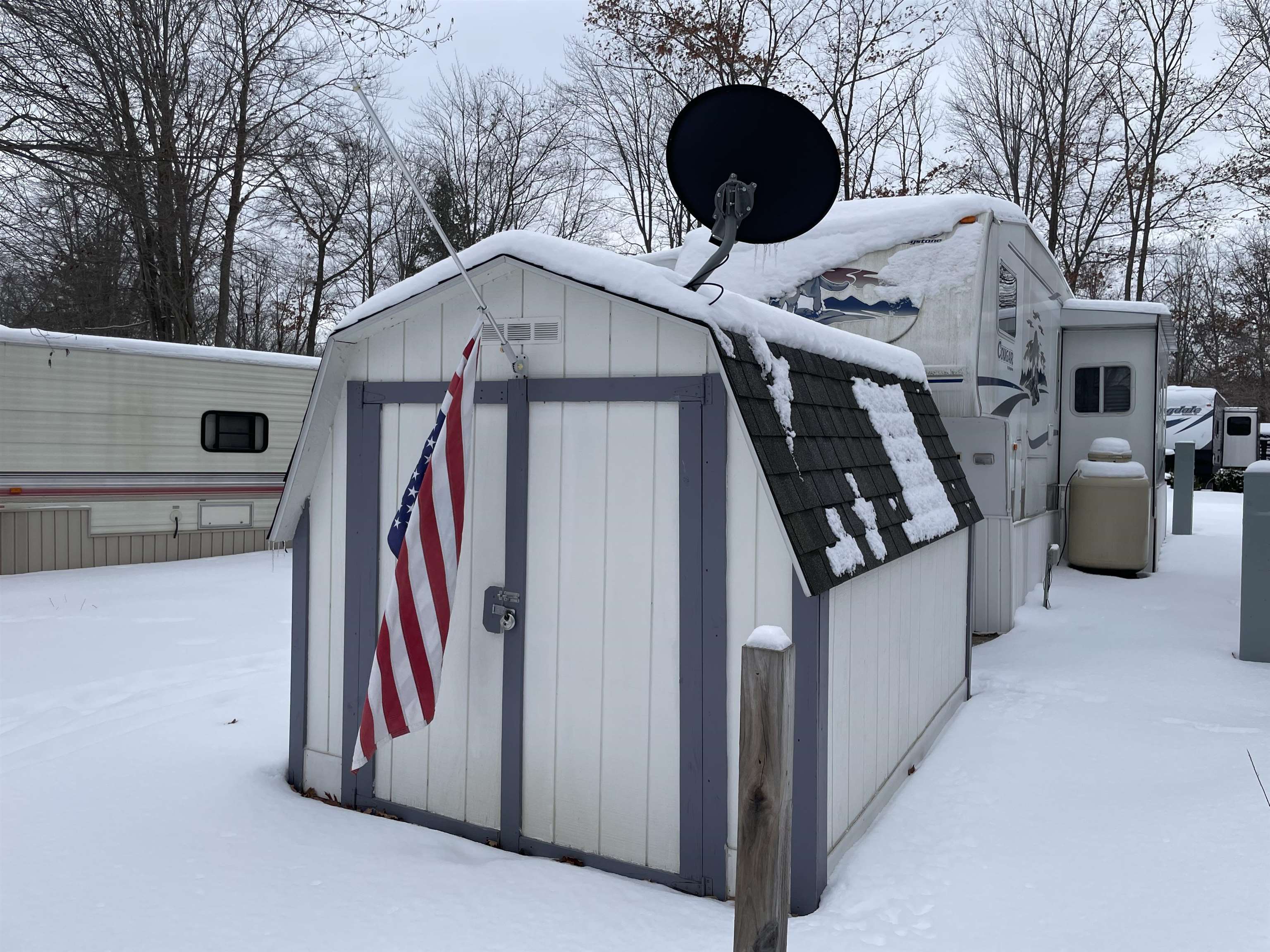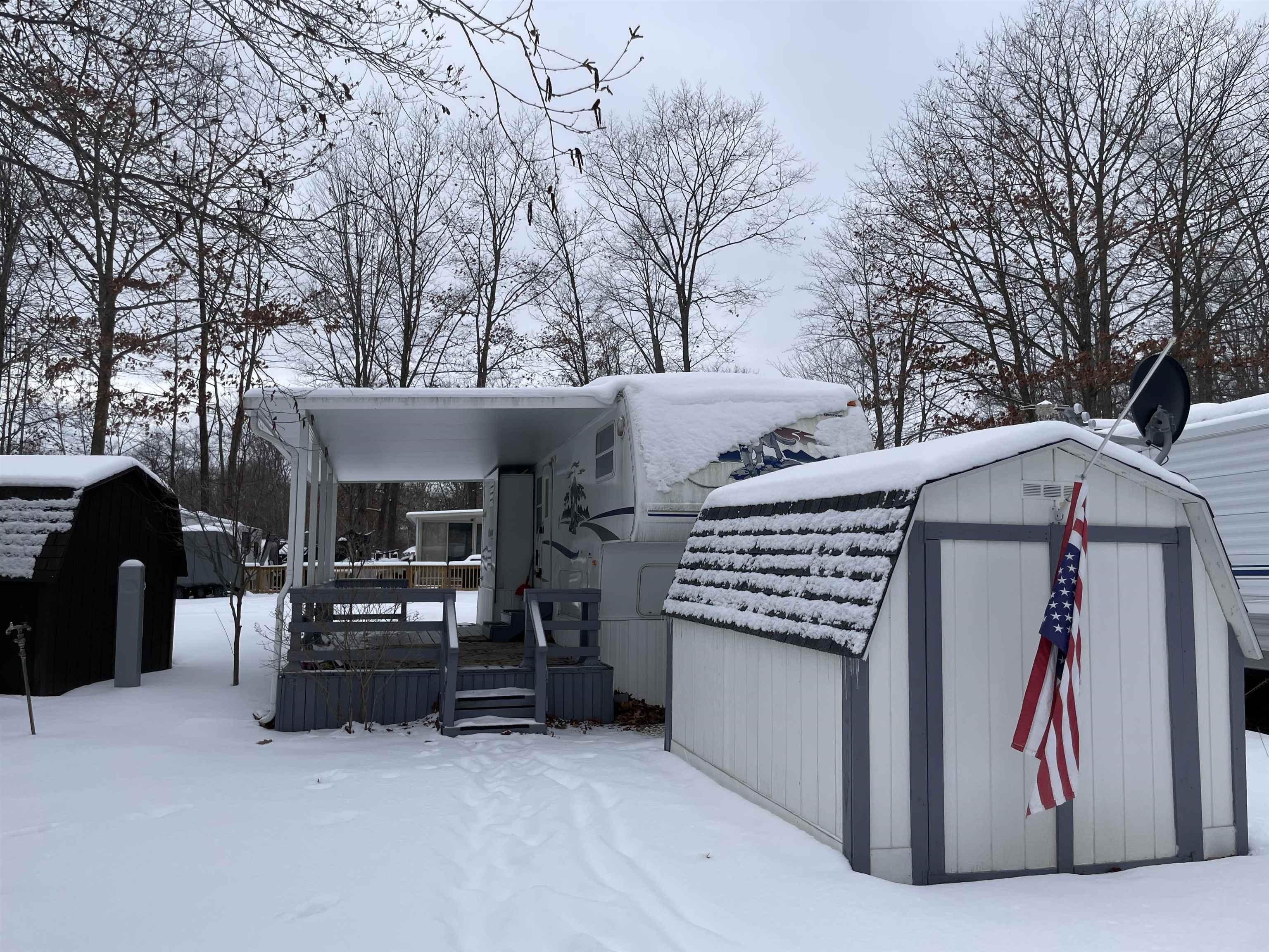 YEAR ROUND STORAGE BE A OWNER !!!!!LOT FOR SALE with large deck and shed, Located in a gated campground with long term owners and a friendly community. The Campground/condominium is open from mid-May through the end of September and offers excellent amenities including fishing. a playground, beach , boat dock and numerous family-friendly events throughout the season. There is 2 bathhouses and Muli public restrooms located throughout the campground and trail system. Enjoy hundreds of acres of state land across the road, perfect for outdoor recreation.There is a like new fifth wheel on this lot thats included